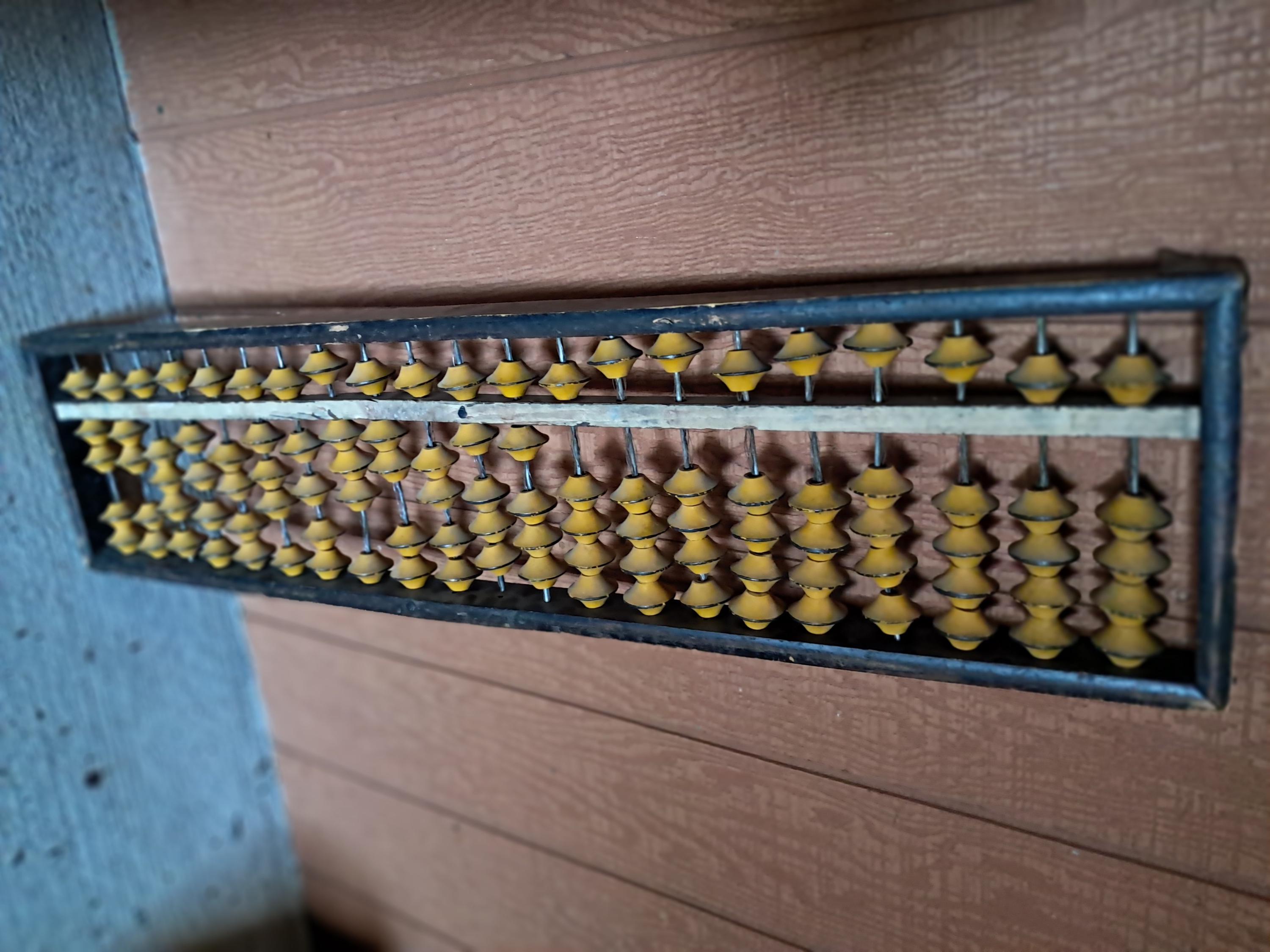 A monumental hand painted wooden Chinese abacus, circa late nineteenth century. In good condition with overall wear, scattered scratches, and scuffs; requires a gentle cleaning.Great for hanging or wall mounting. A giant oversized example, the frame is approximately 45 inches long, 11-inches high, and 2 inches deep.