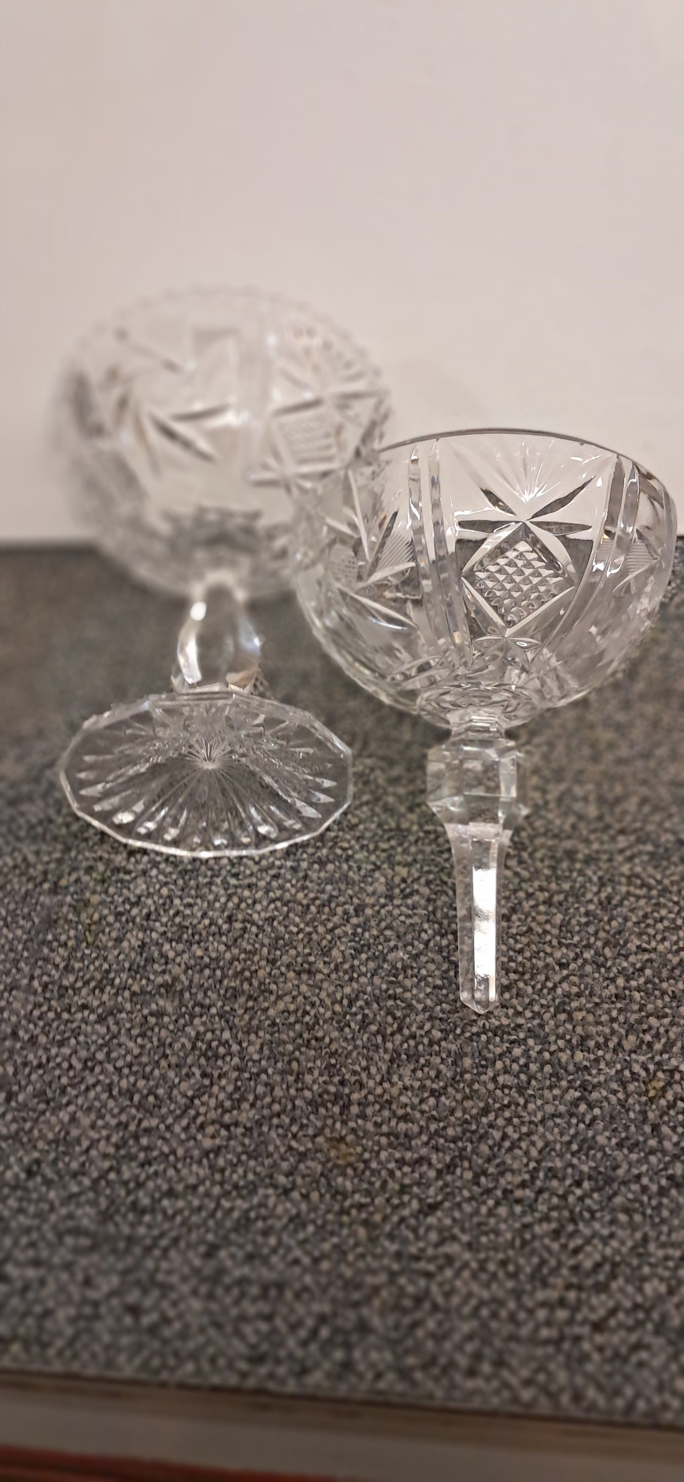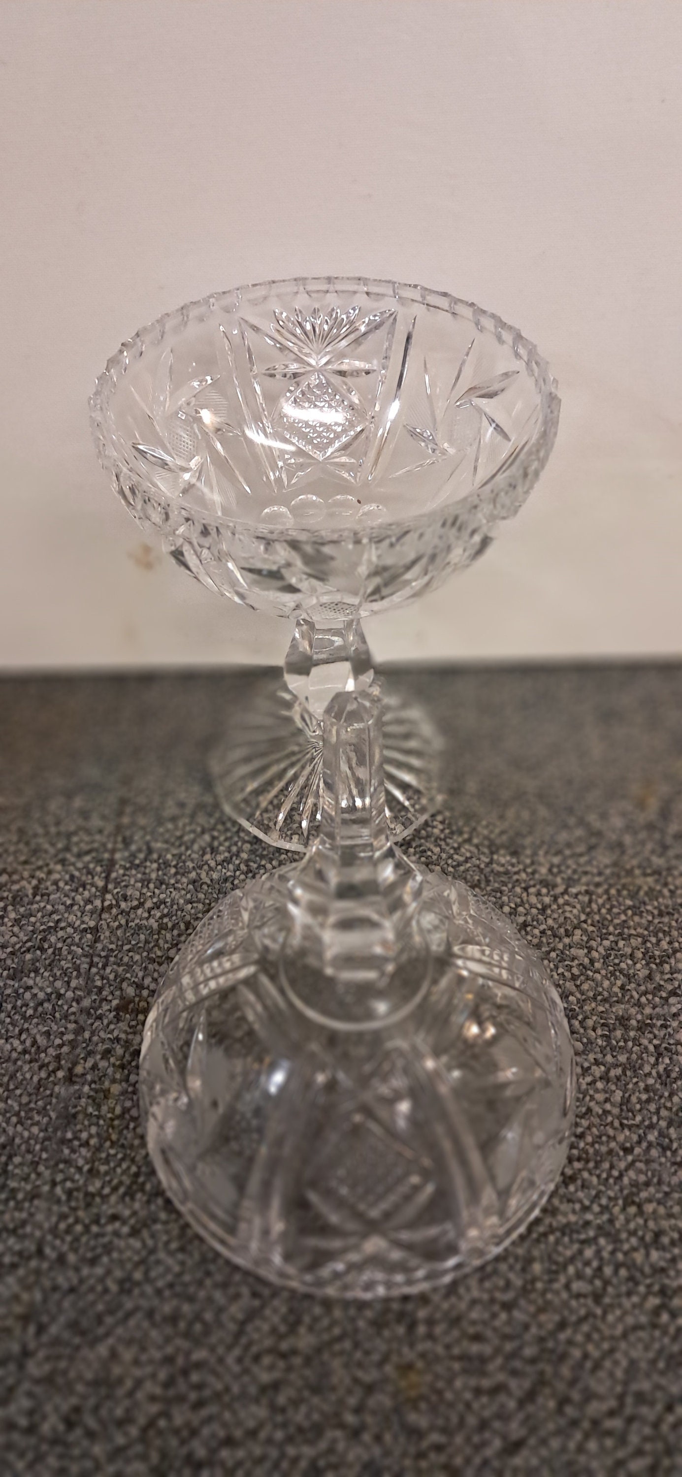 A very nice cut lead crystal apothecary-style pedestal candy dish or compote with lid.