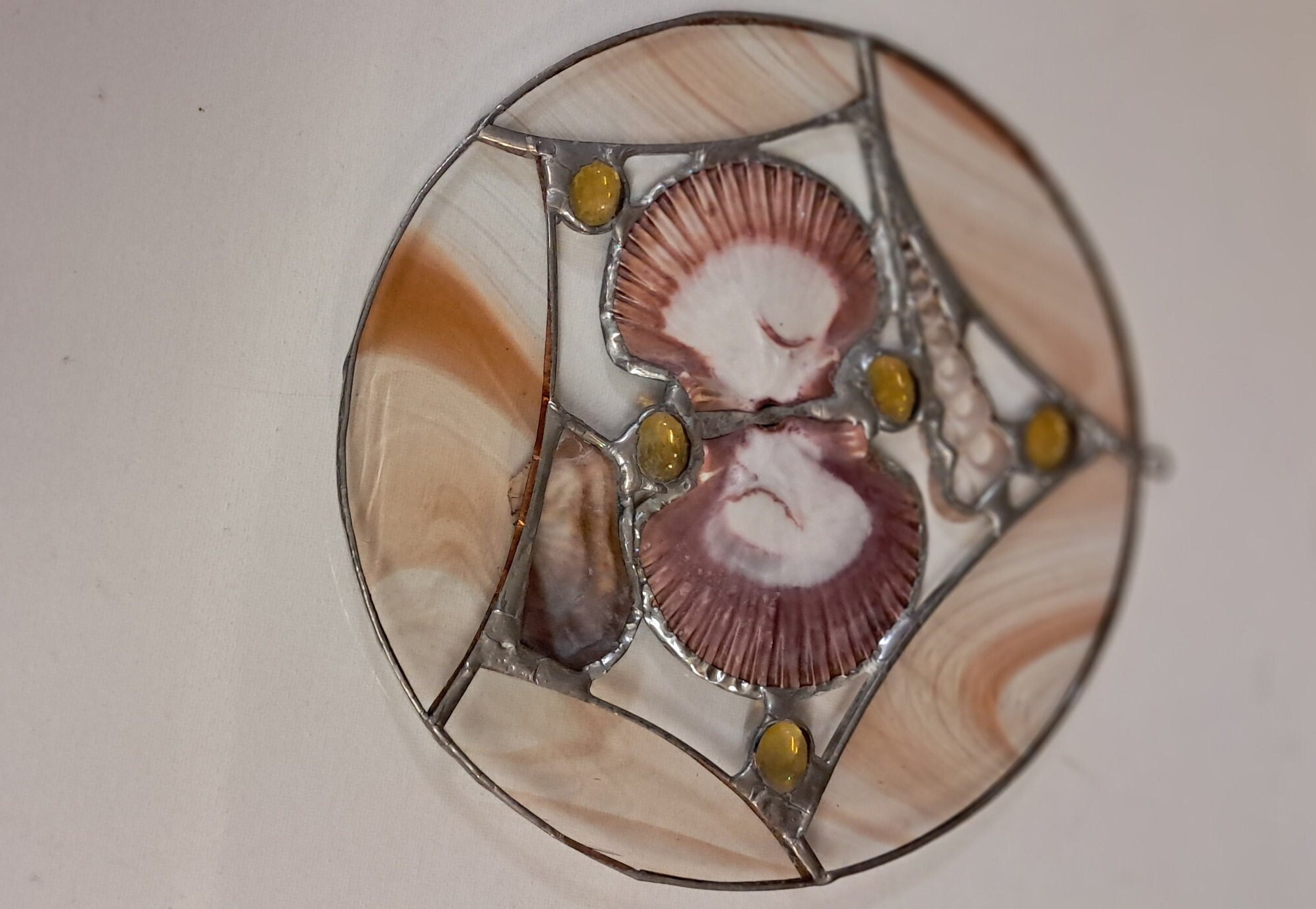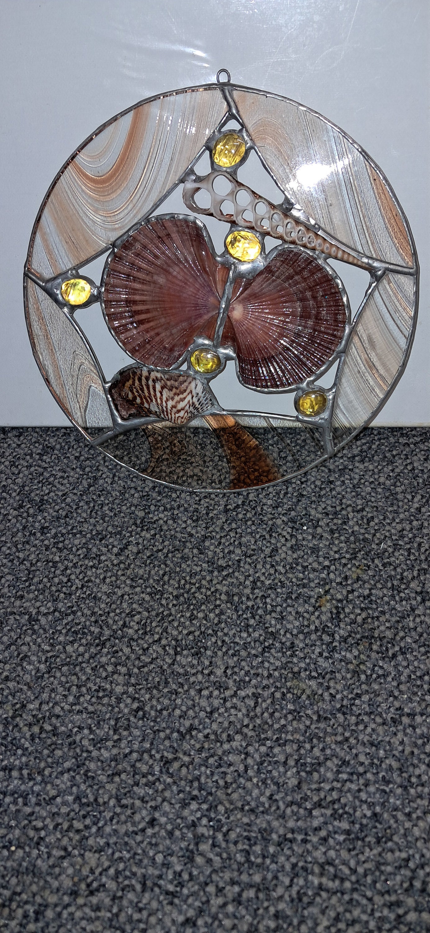 Unique Sea Shell & Glass Round Circle Wall Art in Frame Decor for Business, Office or Home
