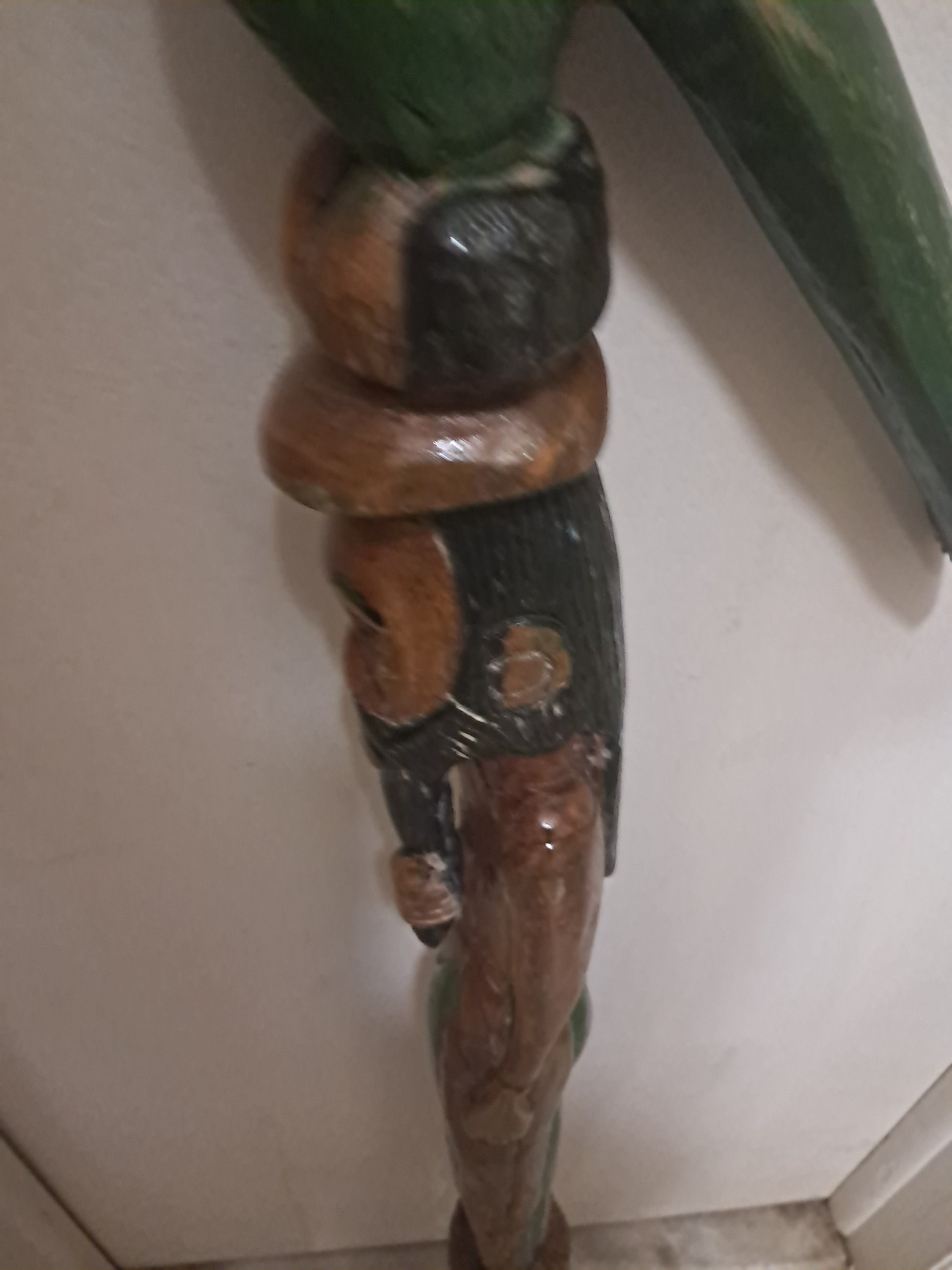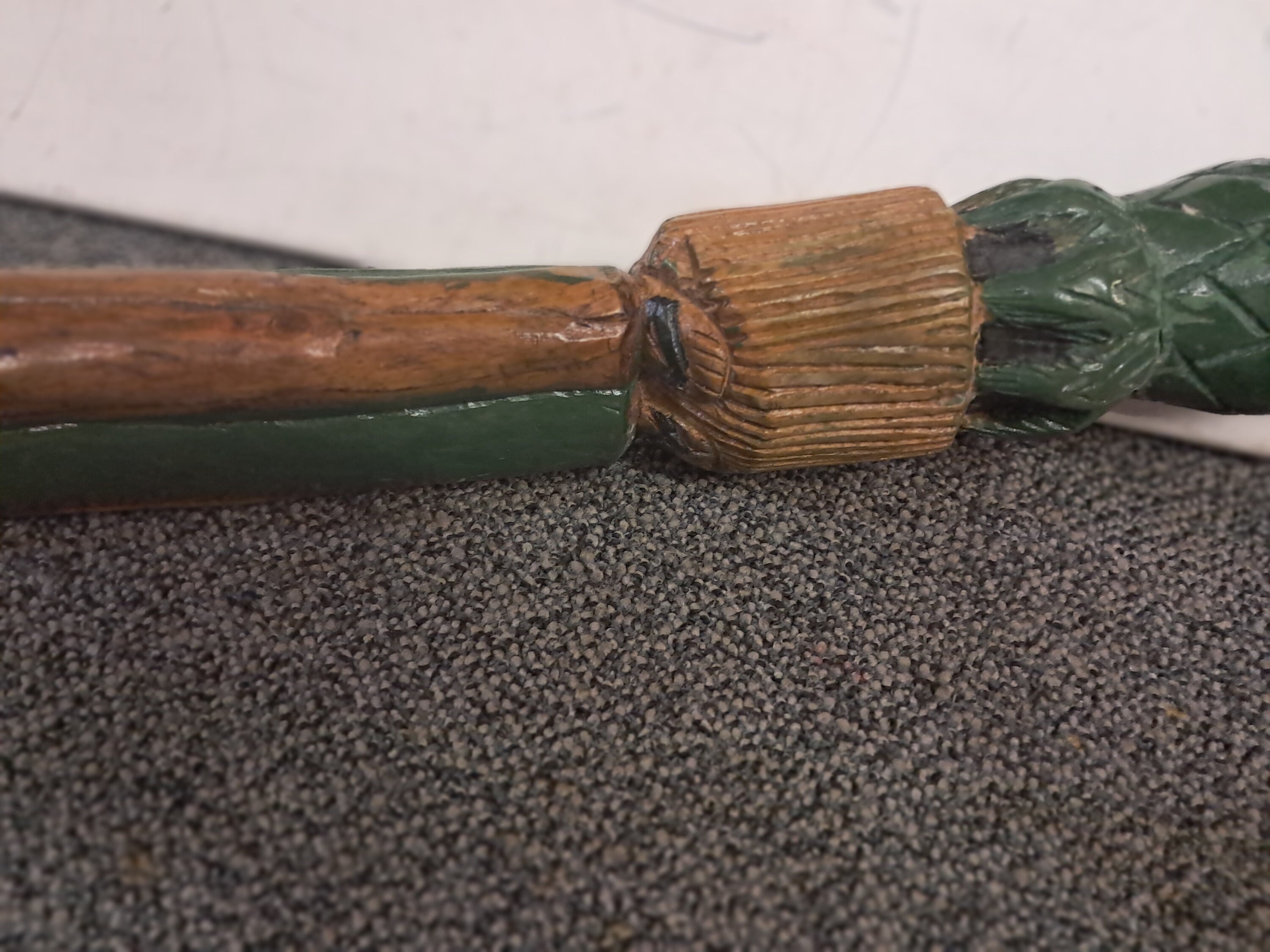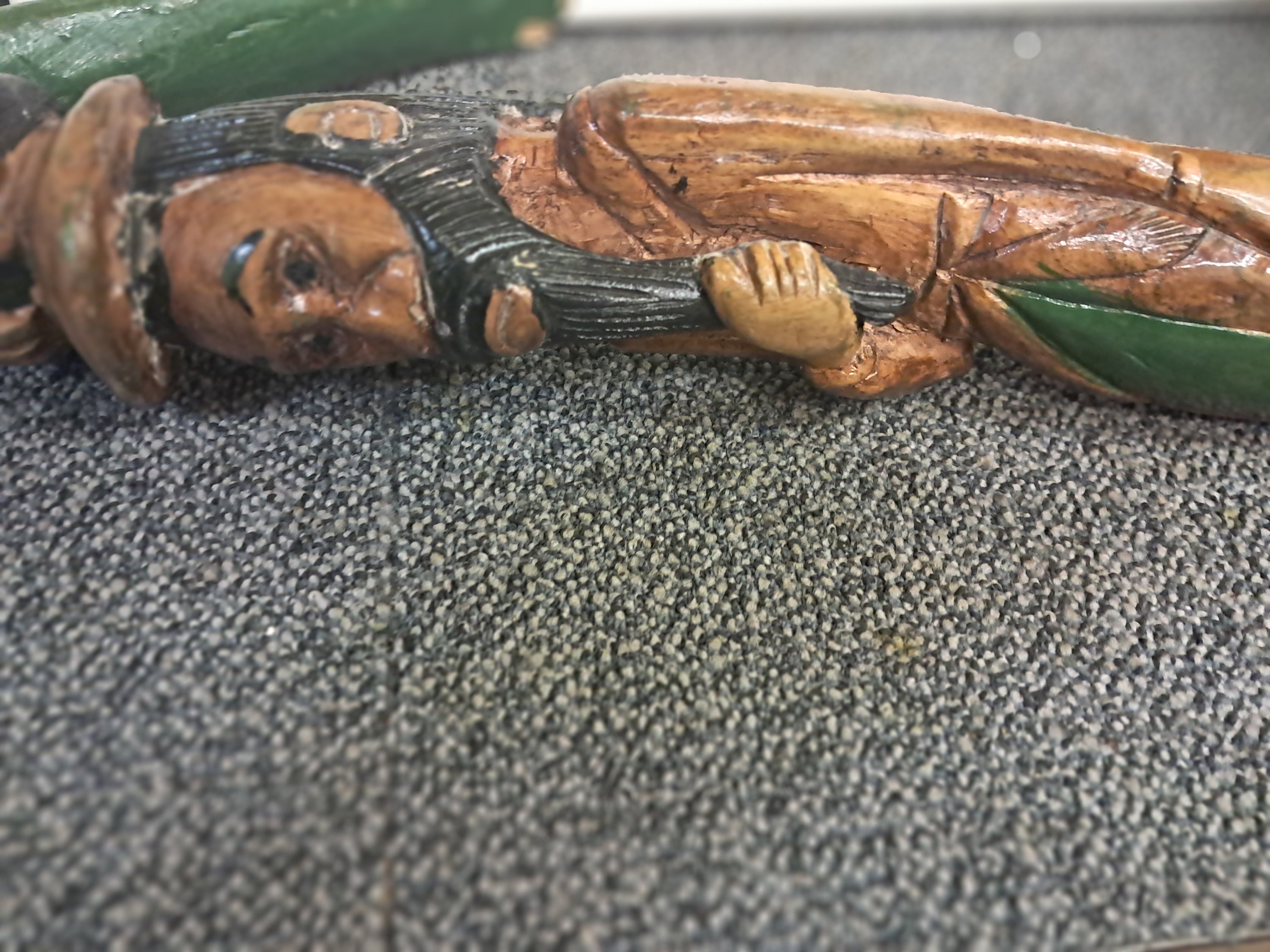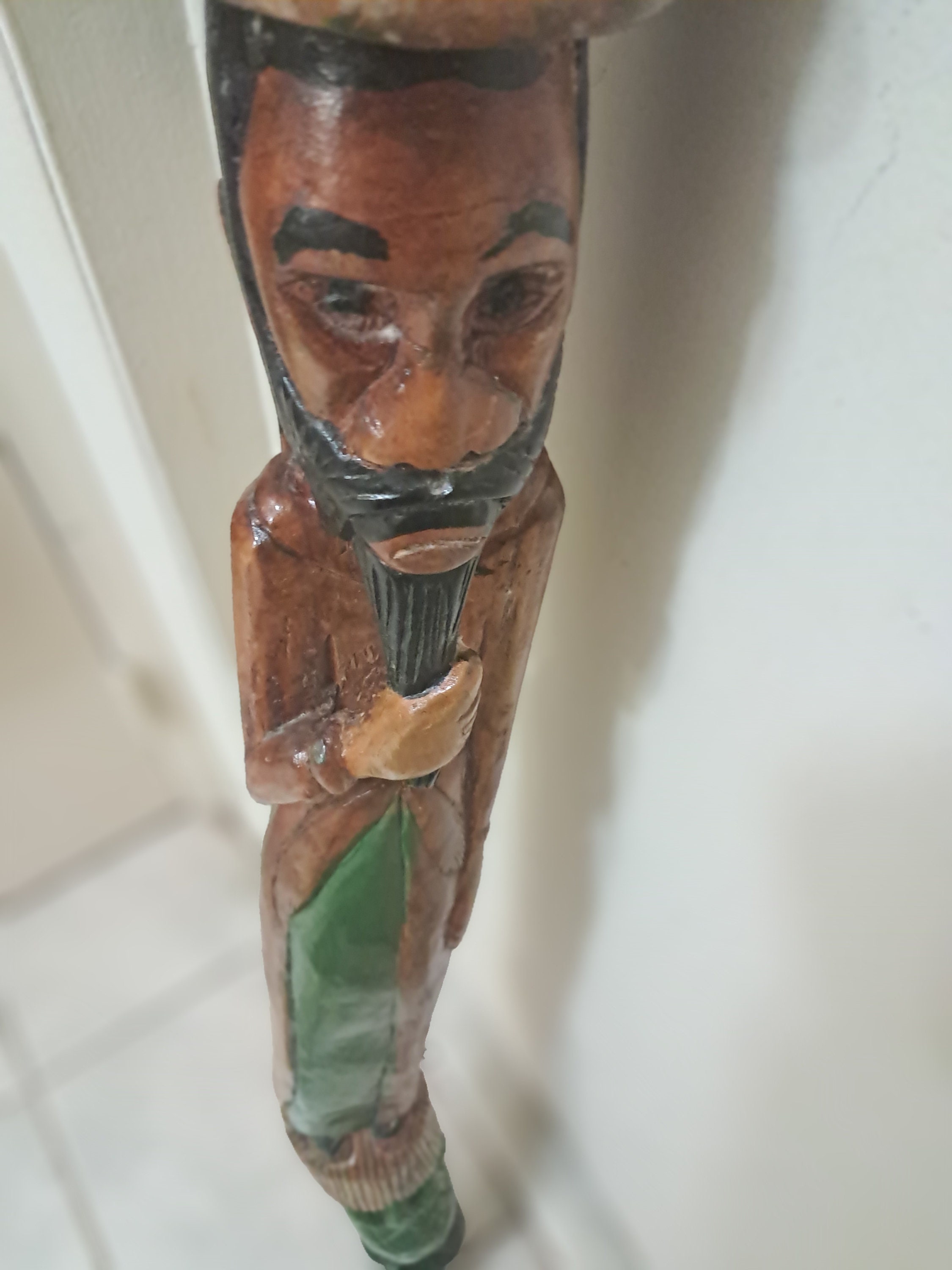 Wooden Walking Stick Staff Cane Hand Carved Painted 44" Parrot & Pirate Design