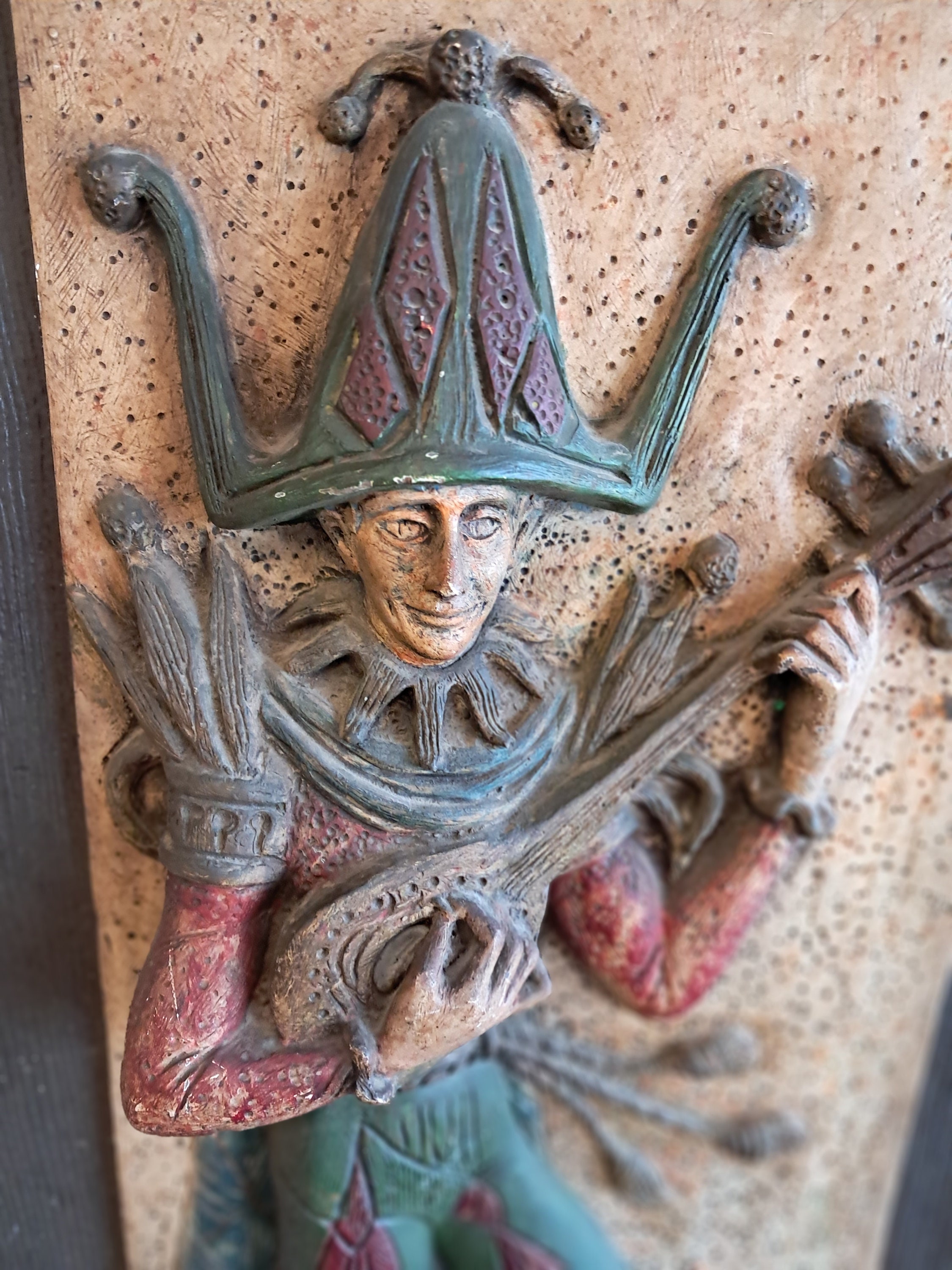 Vintage 3D Mid Century Jester & Mandolin Wall Hanging by Espada