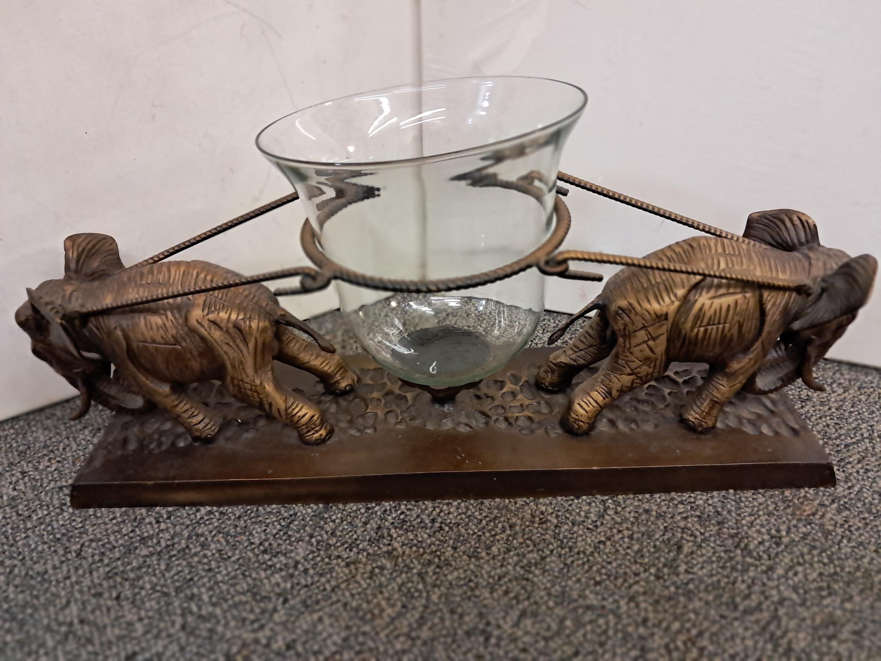 Quirky art deco Two elephants ,holding a galls bowl