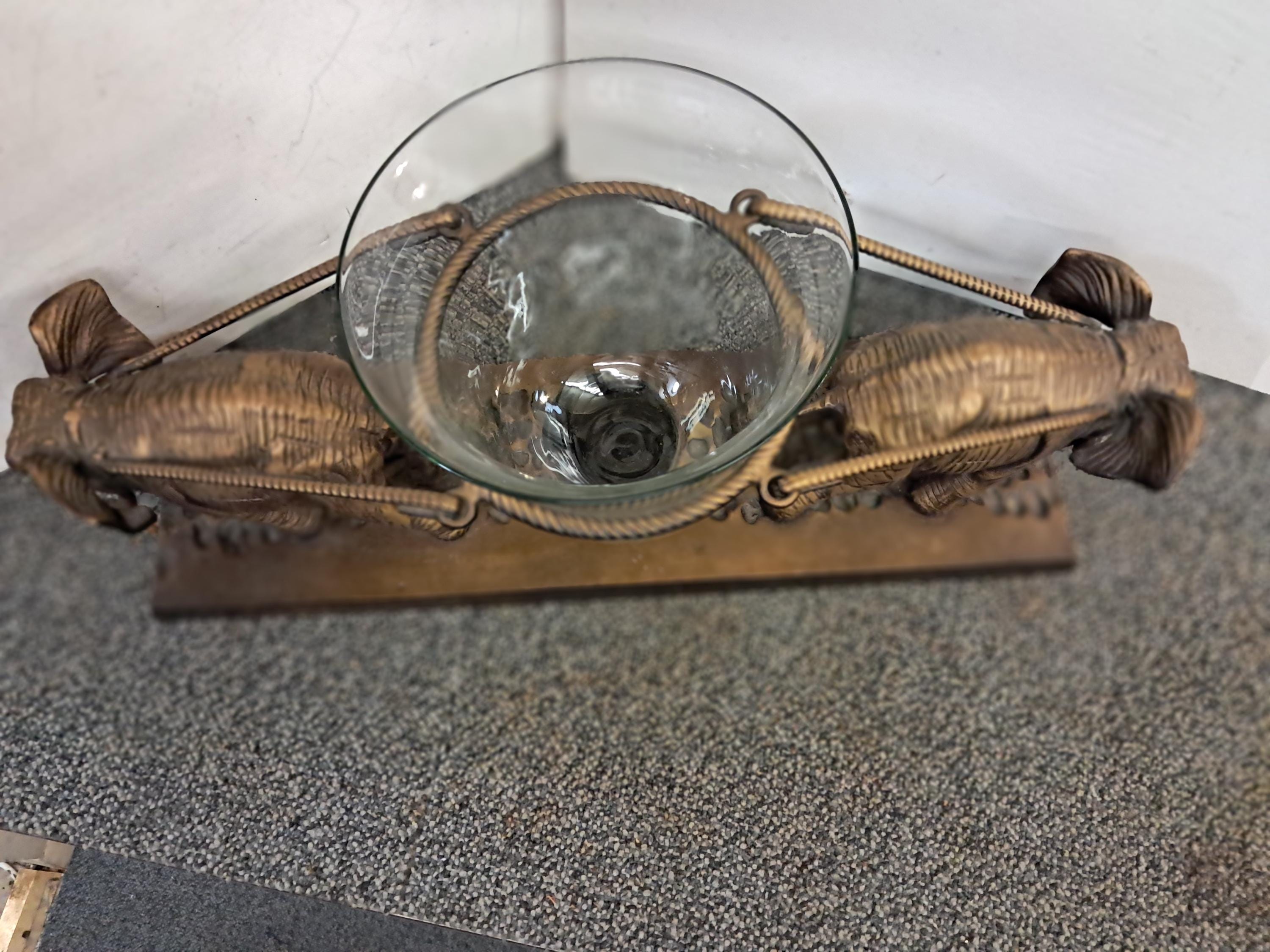 Bronze Two Tone Center Piece . Glass bowl on a short stand,held with Elephants, Bronze base