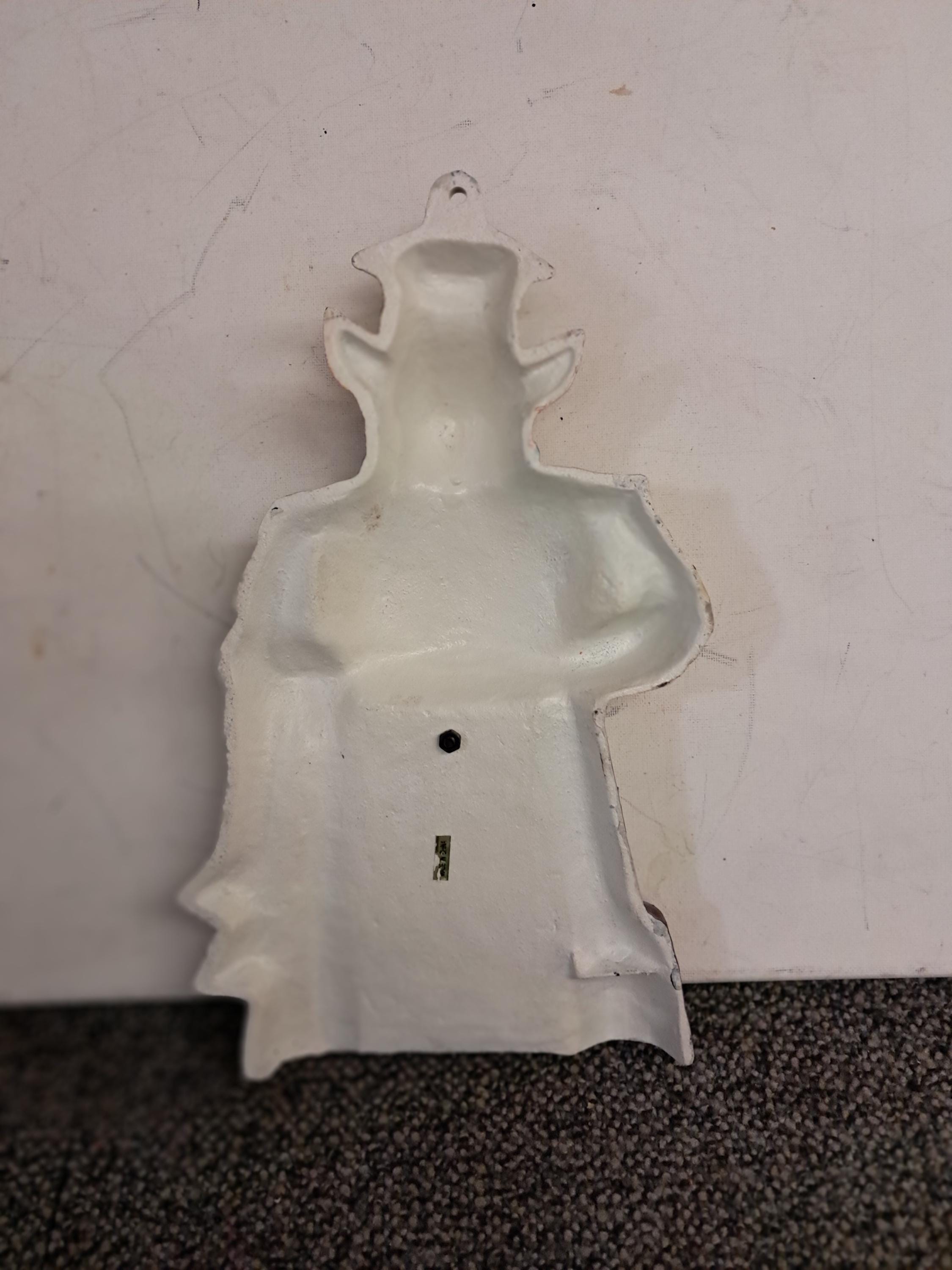 Vintage Painted Cast Iron Chef Pig and Cat Note Pad/Pencil Wall Hanger Menu Display. Measures about 11.25" tall.