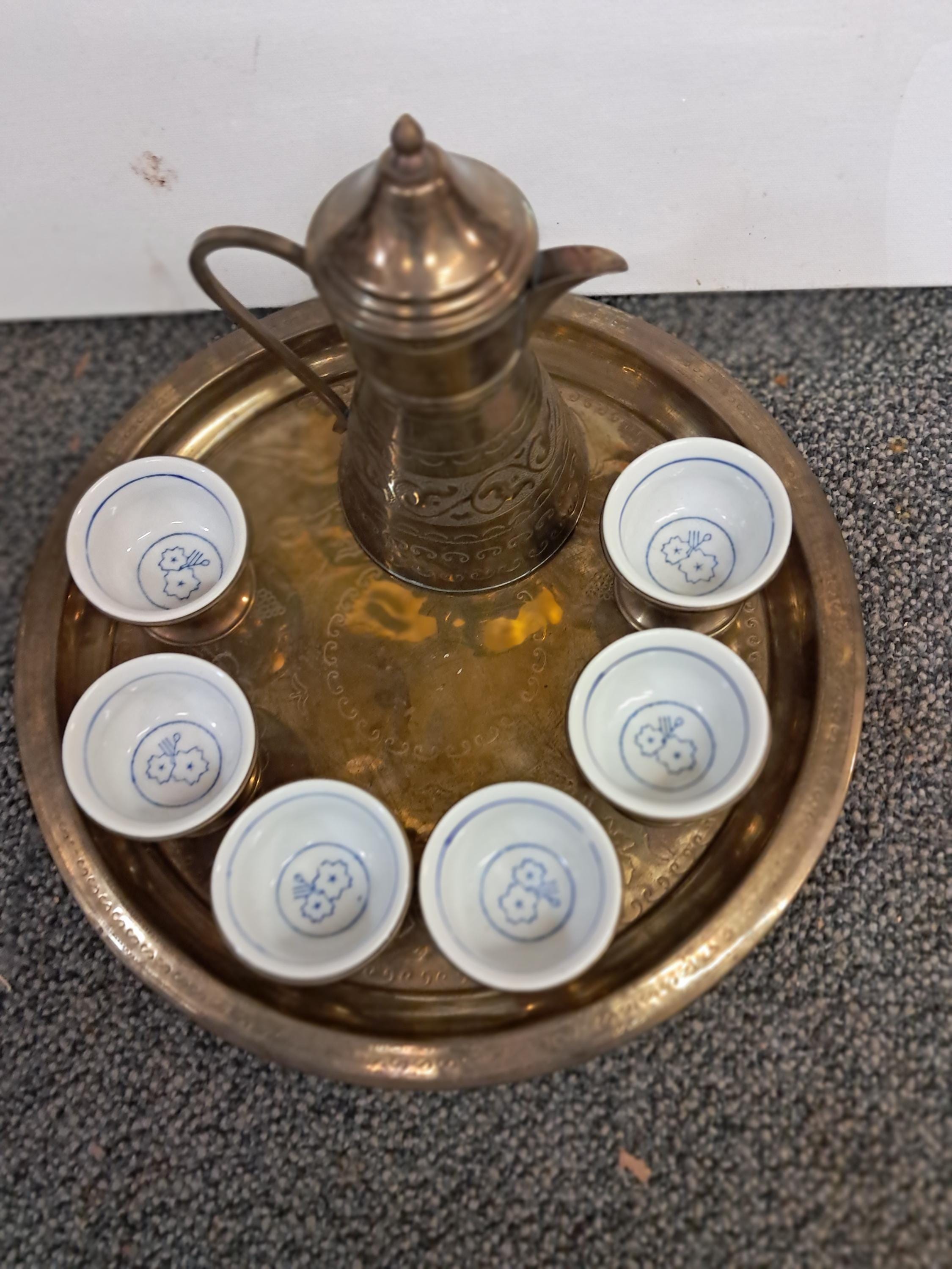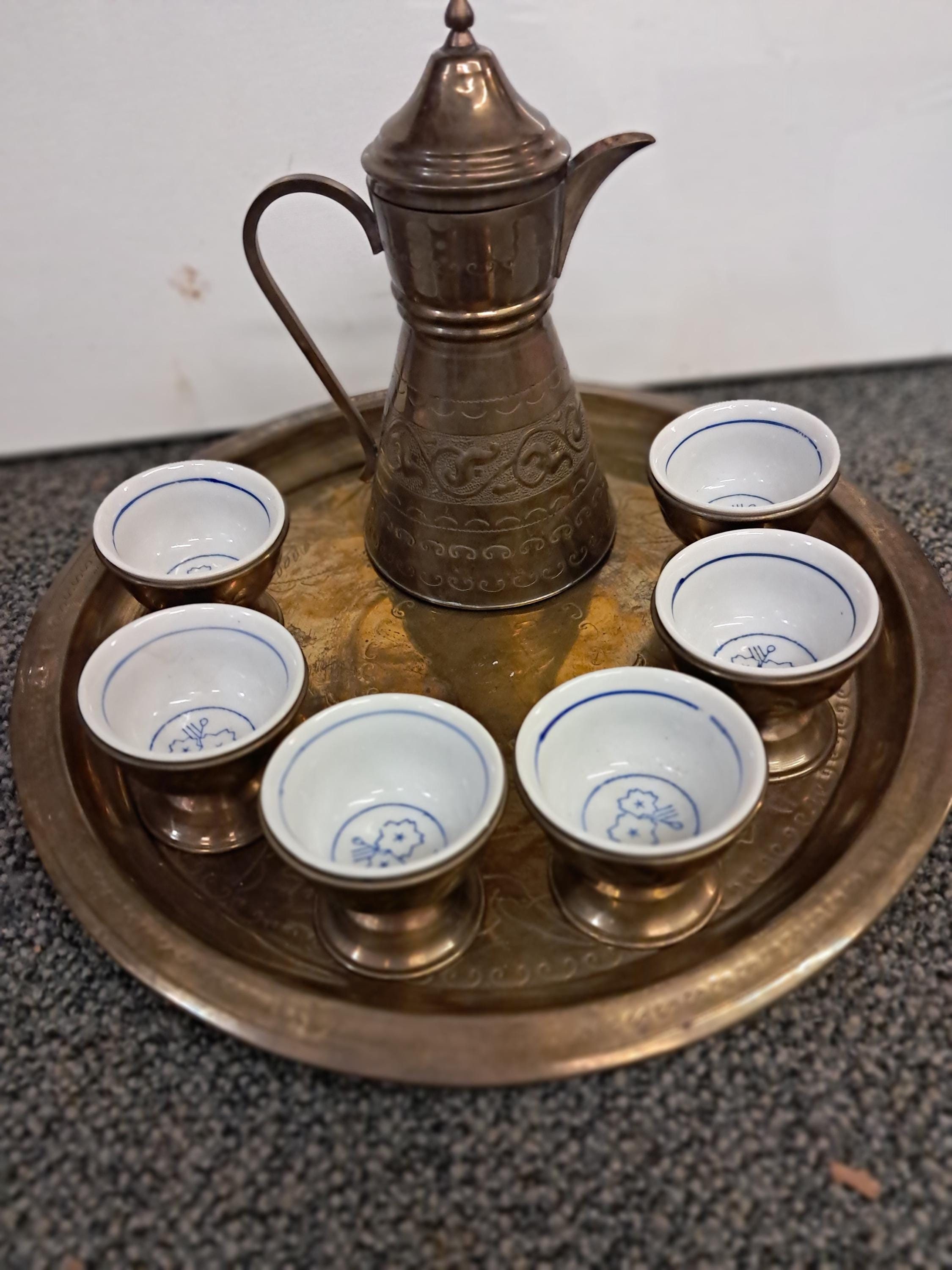 Jewish Israel Iskandar Matar and Sons Nazareth coffee Pot with 6 Kiddush Cups & Tray