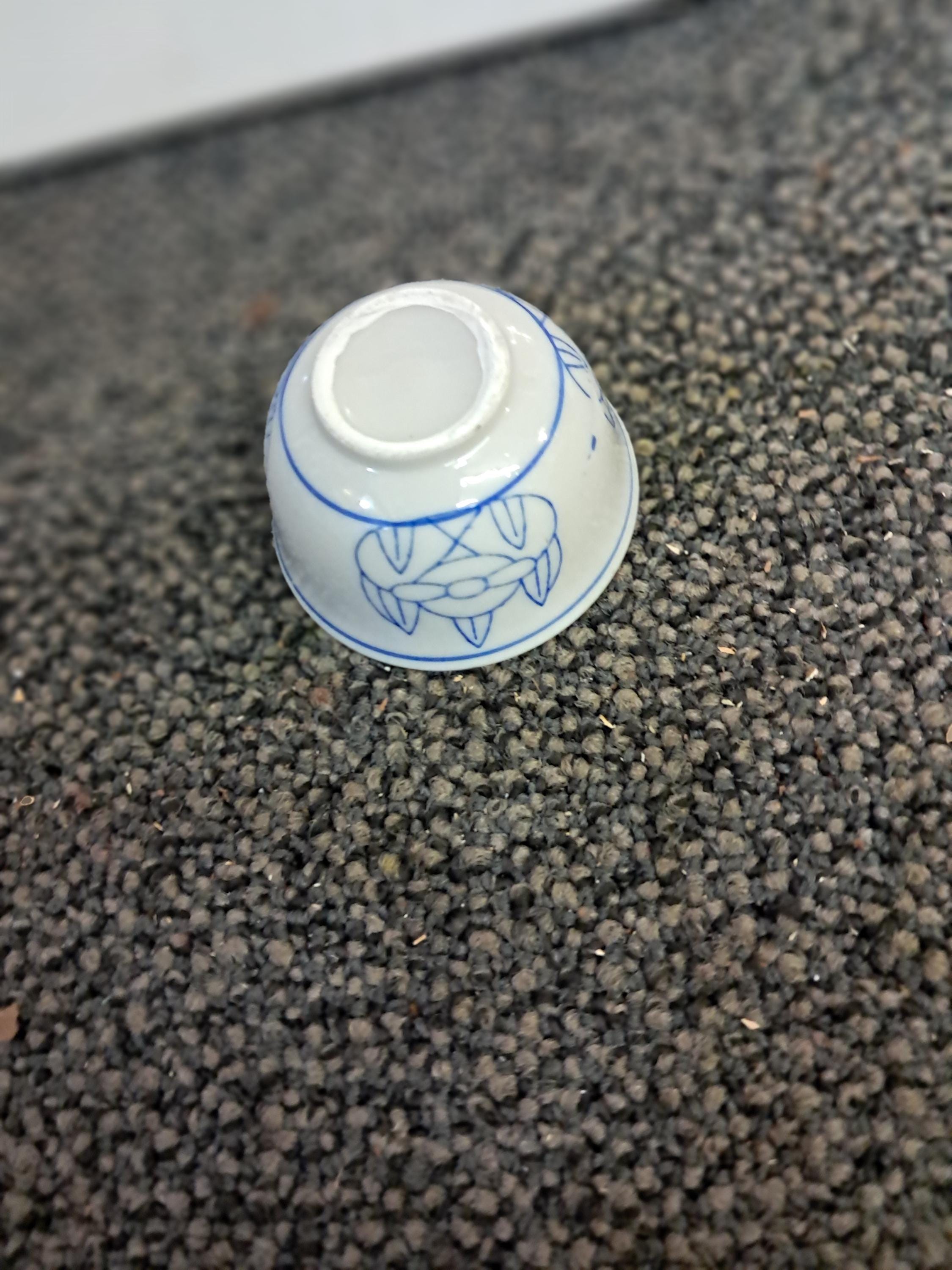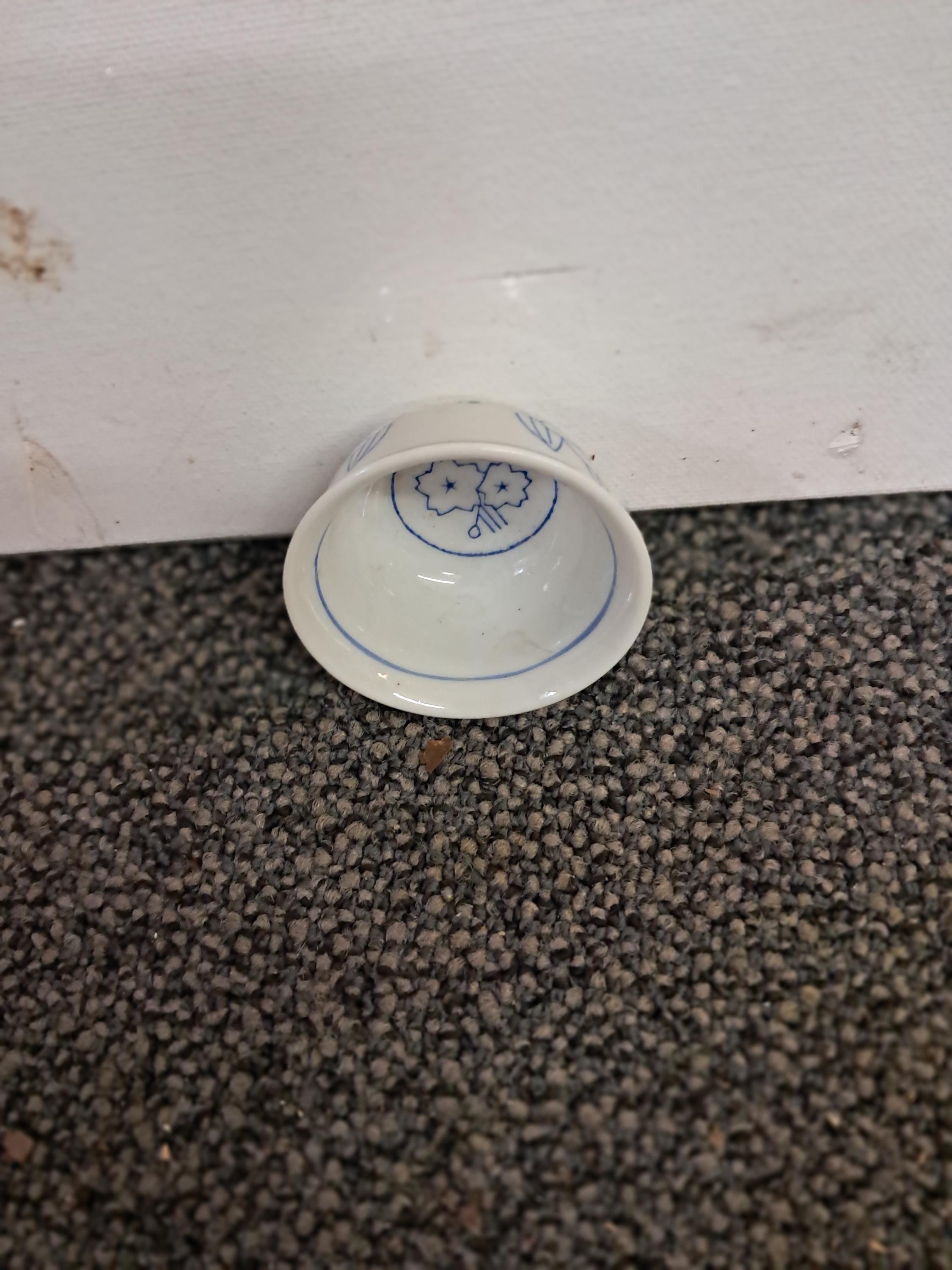 RARE! Antique Jewish Israel Iskandar Matar & Sons coffee teapot & 6 Kiddush Cups & Tray. Perfect Condition with normal sign of age. The set is all hand made, The Kiddush Brass cups are hammered brass. The porcelain interior cups are hand crafted, hand painted cobalt blue. The measurements are: tea/coffee pot height 6.5" T x 3.75" W .Tray 11 inches, Kiddush cups height 2.25" x 2"