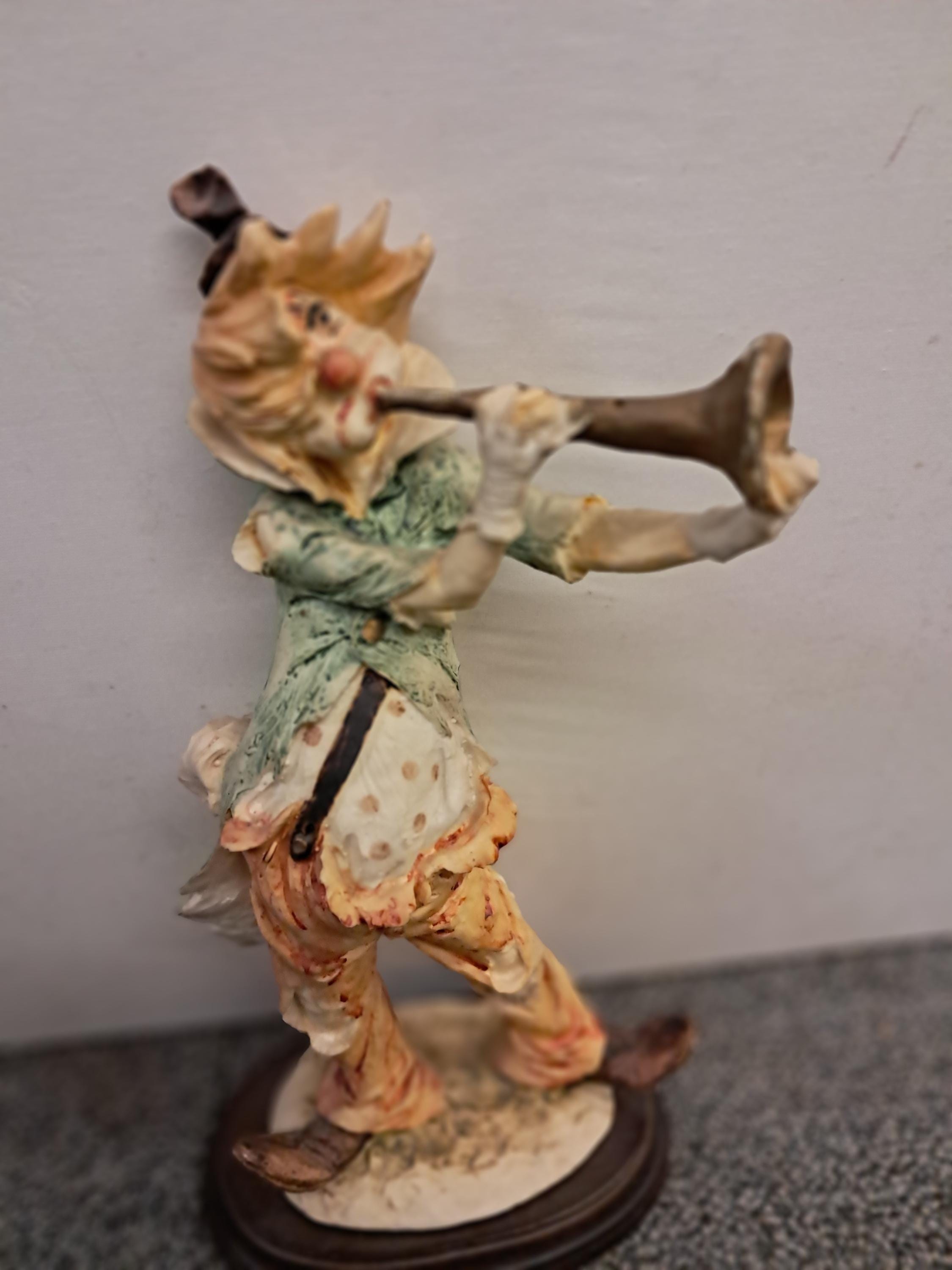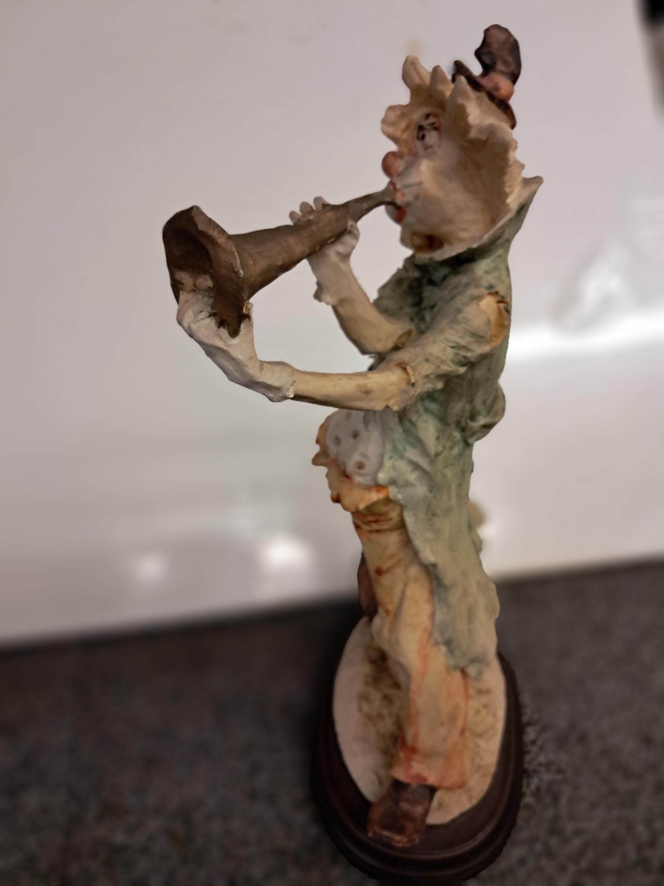 Vintage Hobo Clown Playing Horn Statuette Figurine