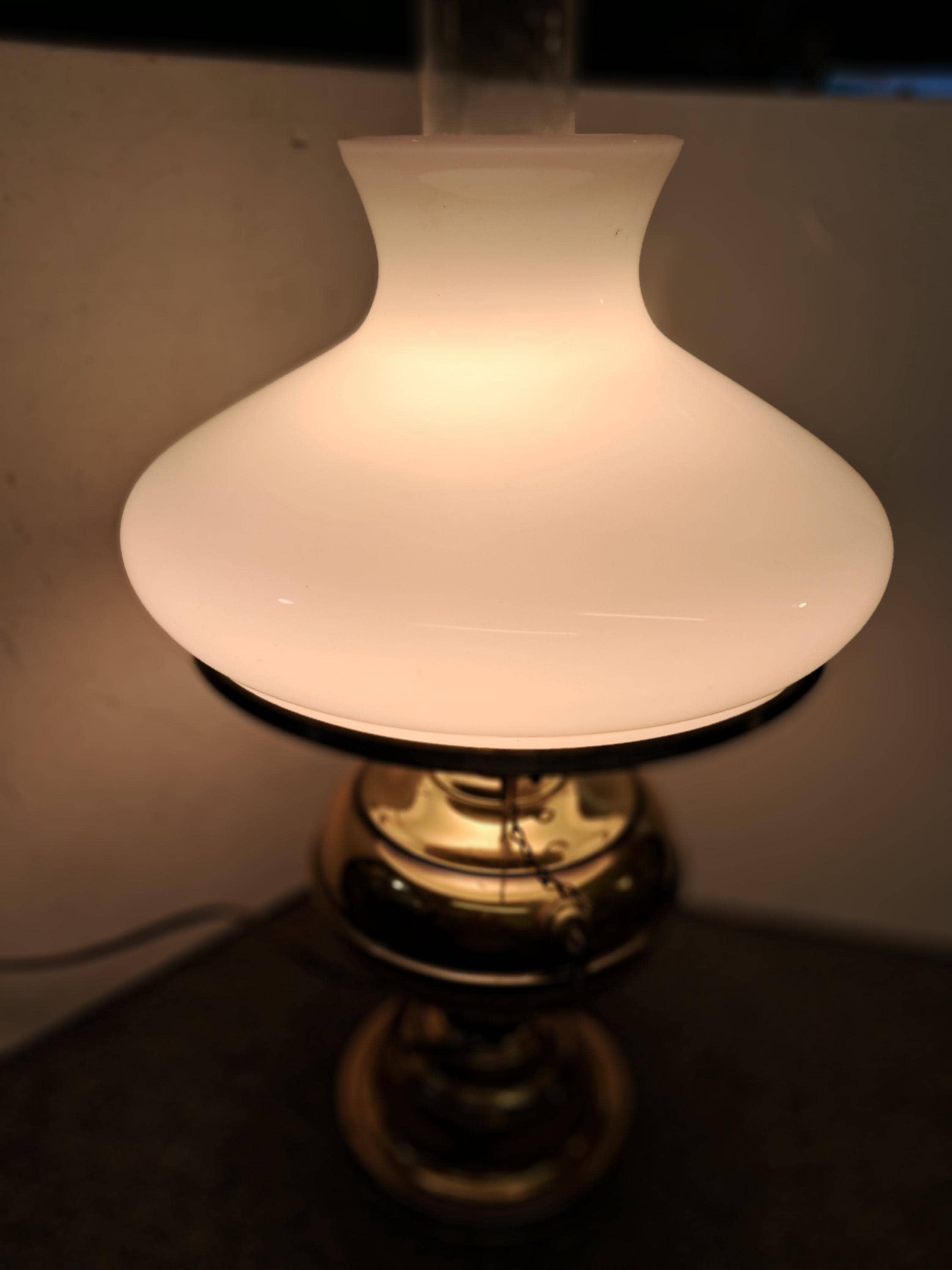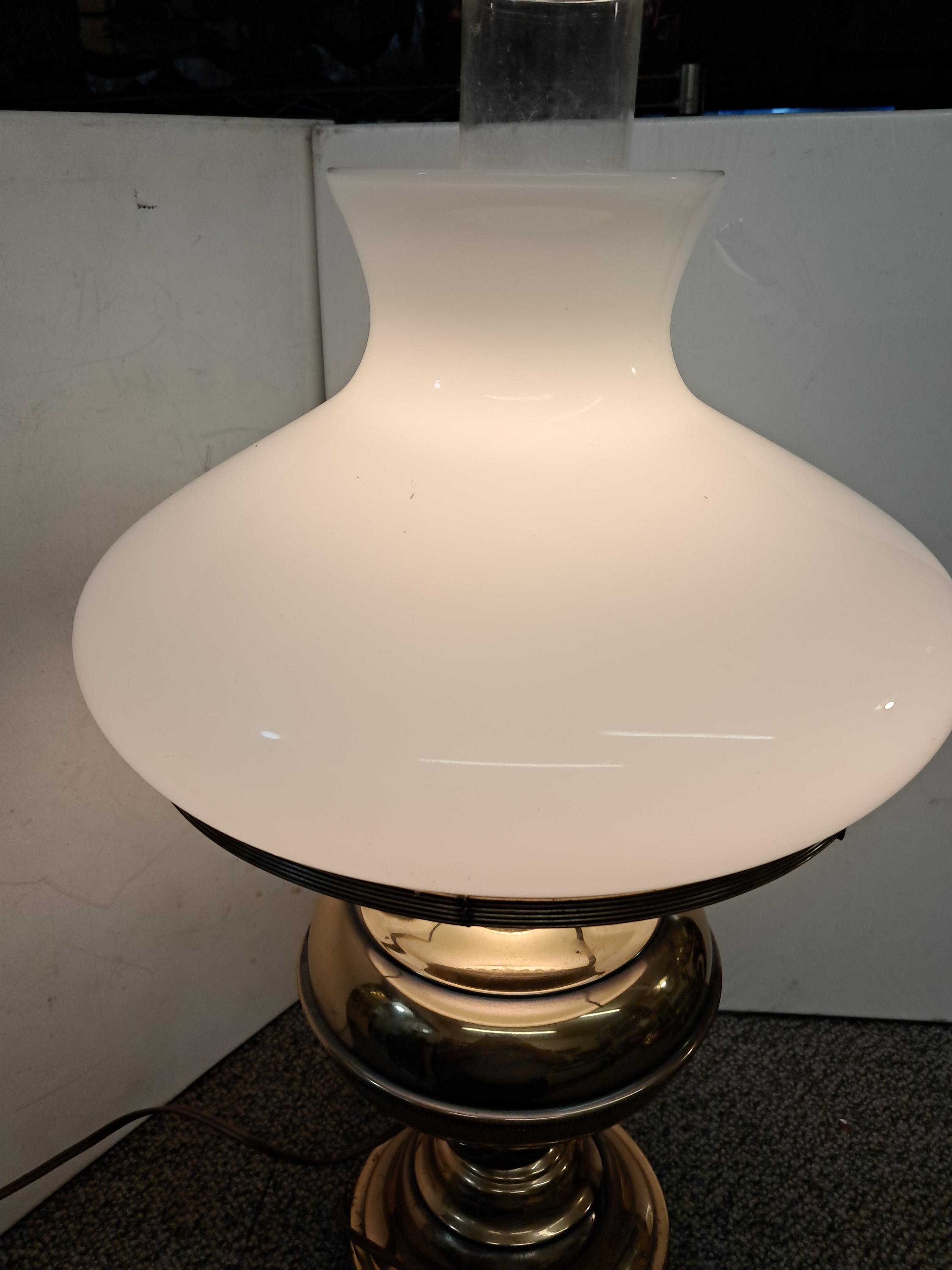 Vintage Brass Library Rayo Table Lamp w/ Glass Opaque White Shade & Chimney