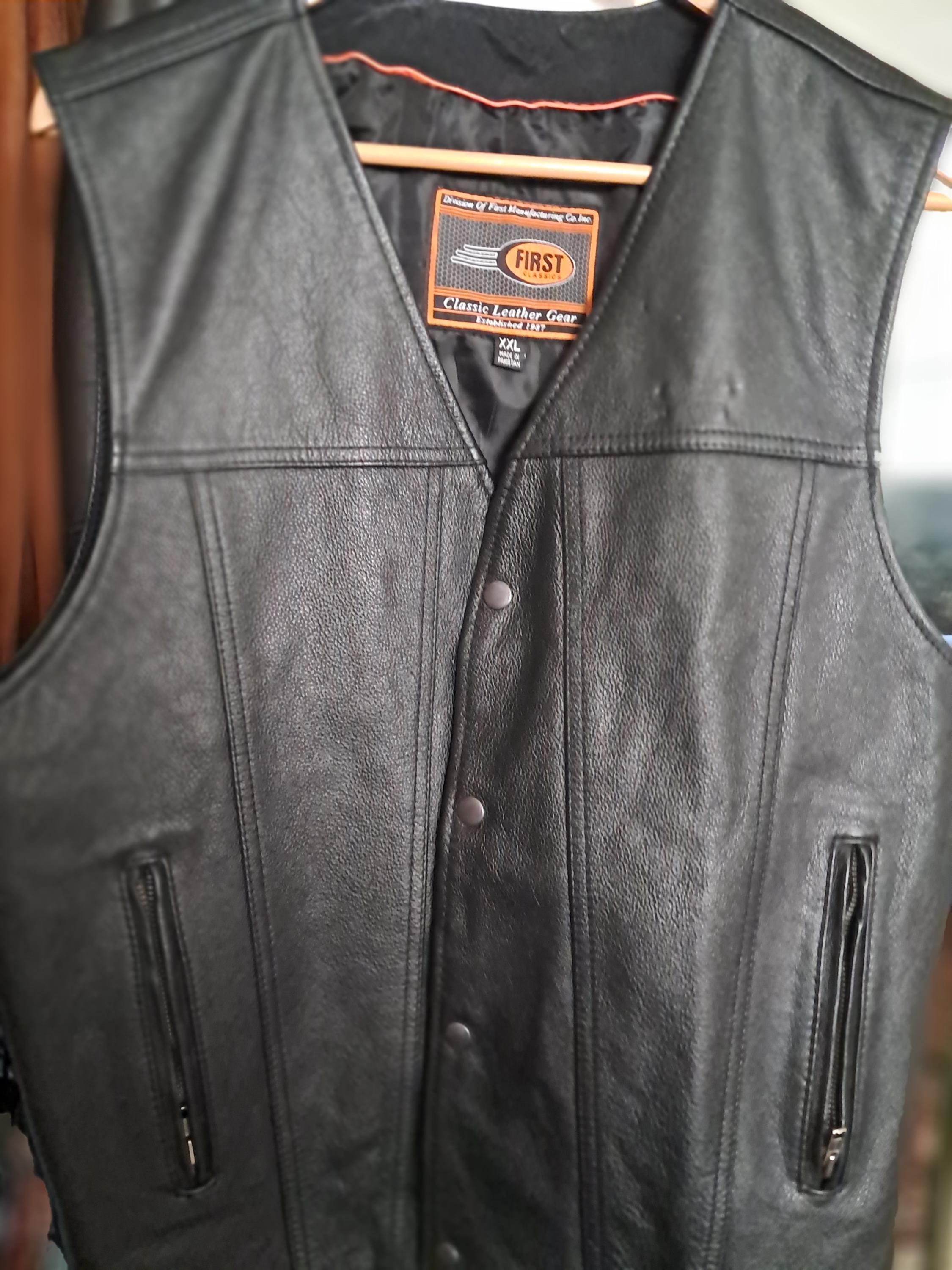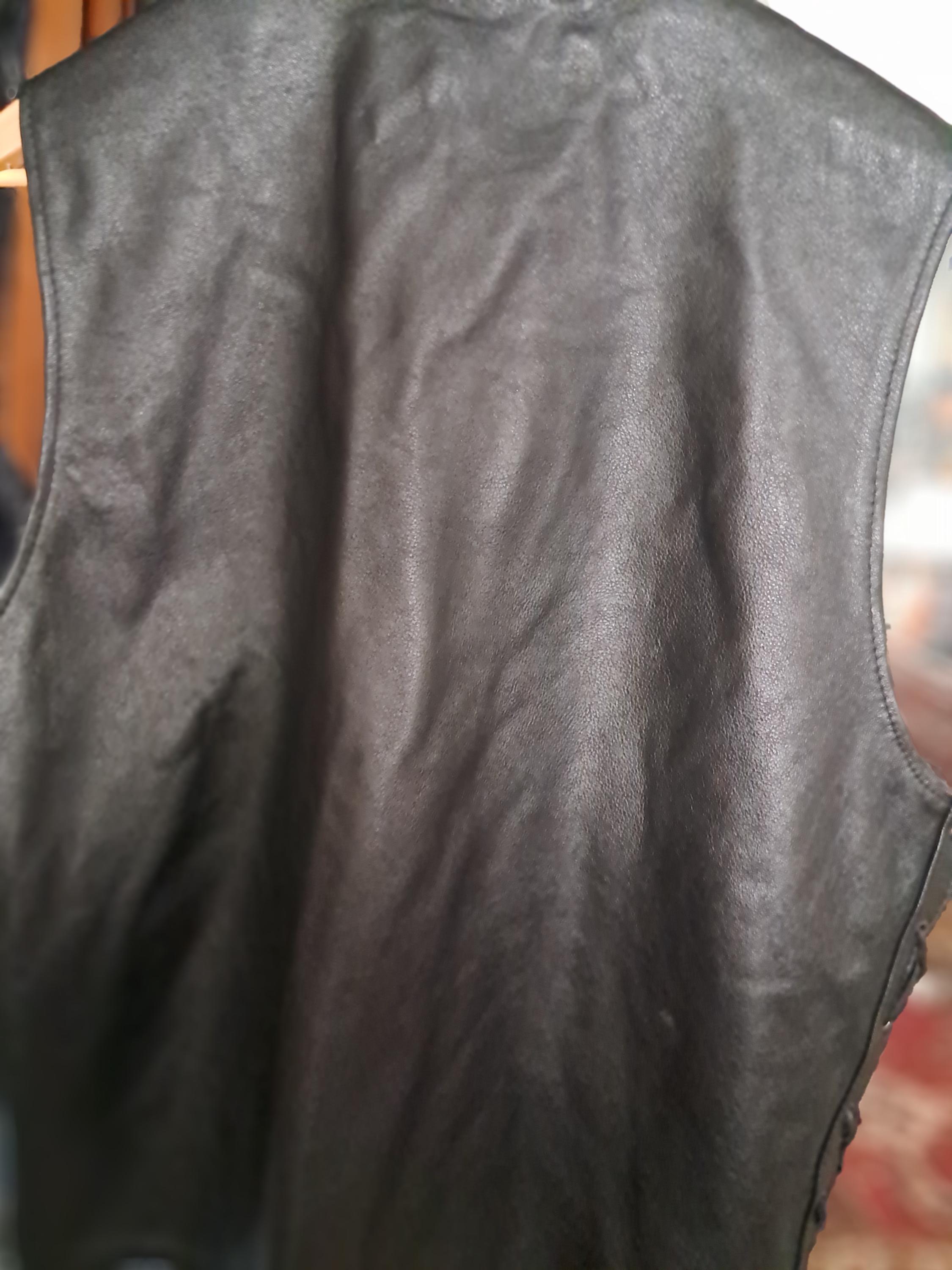 V-neck, 4 snaps vest with blacked out hardware for a clean look. Crafted from Naked Cowhide, this vest has snap down chest pockets and zippered slash pockets. Inside, it's got two conceal carry pockets, and Poly lining inside