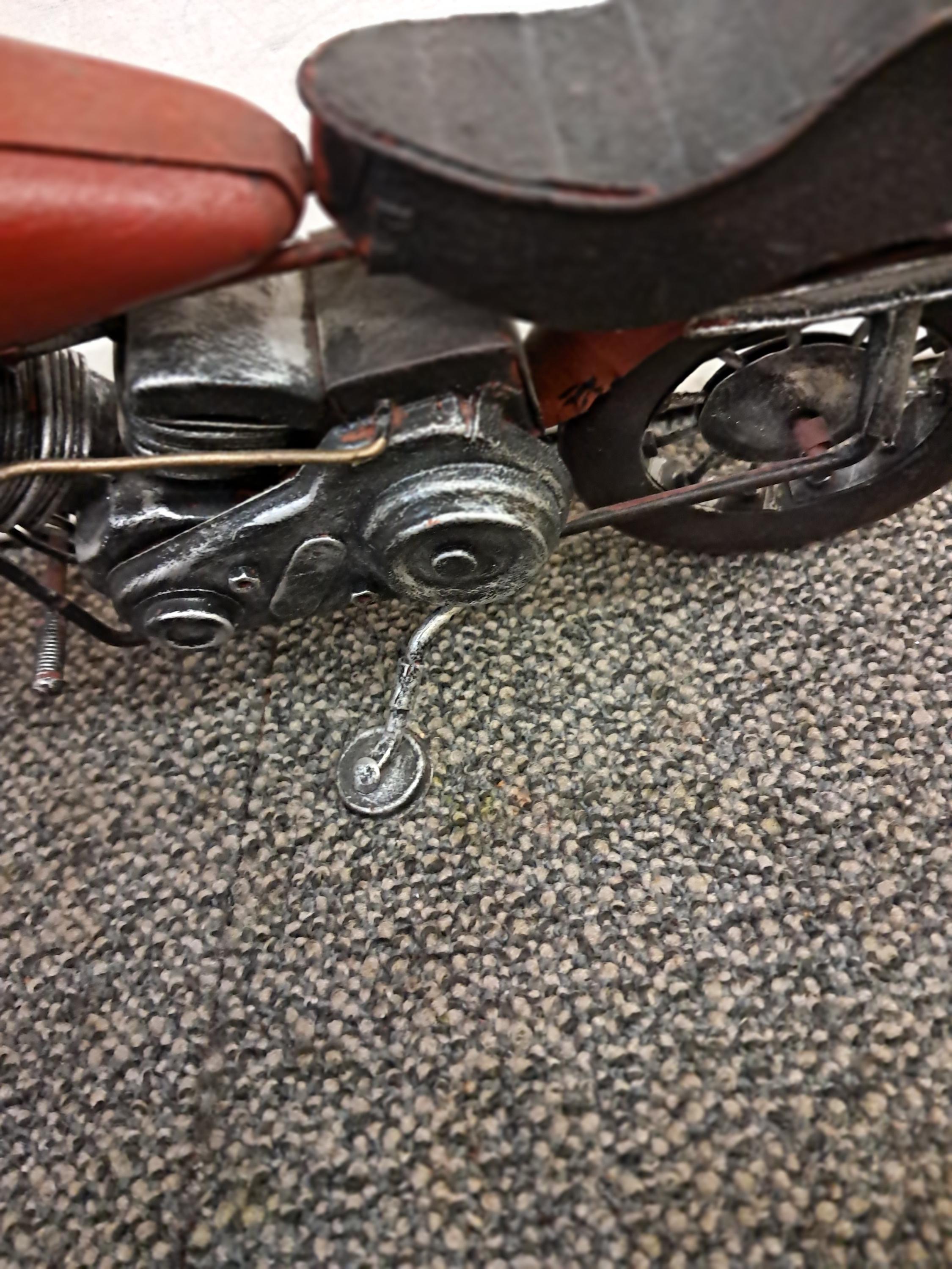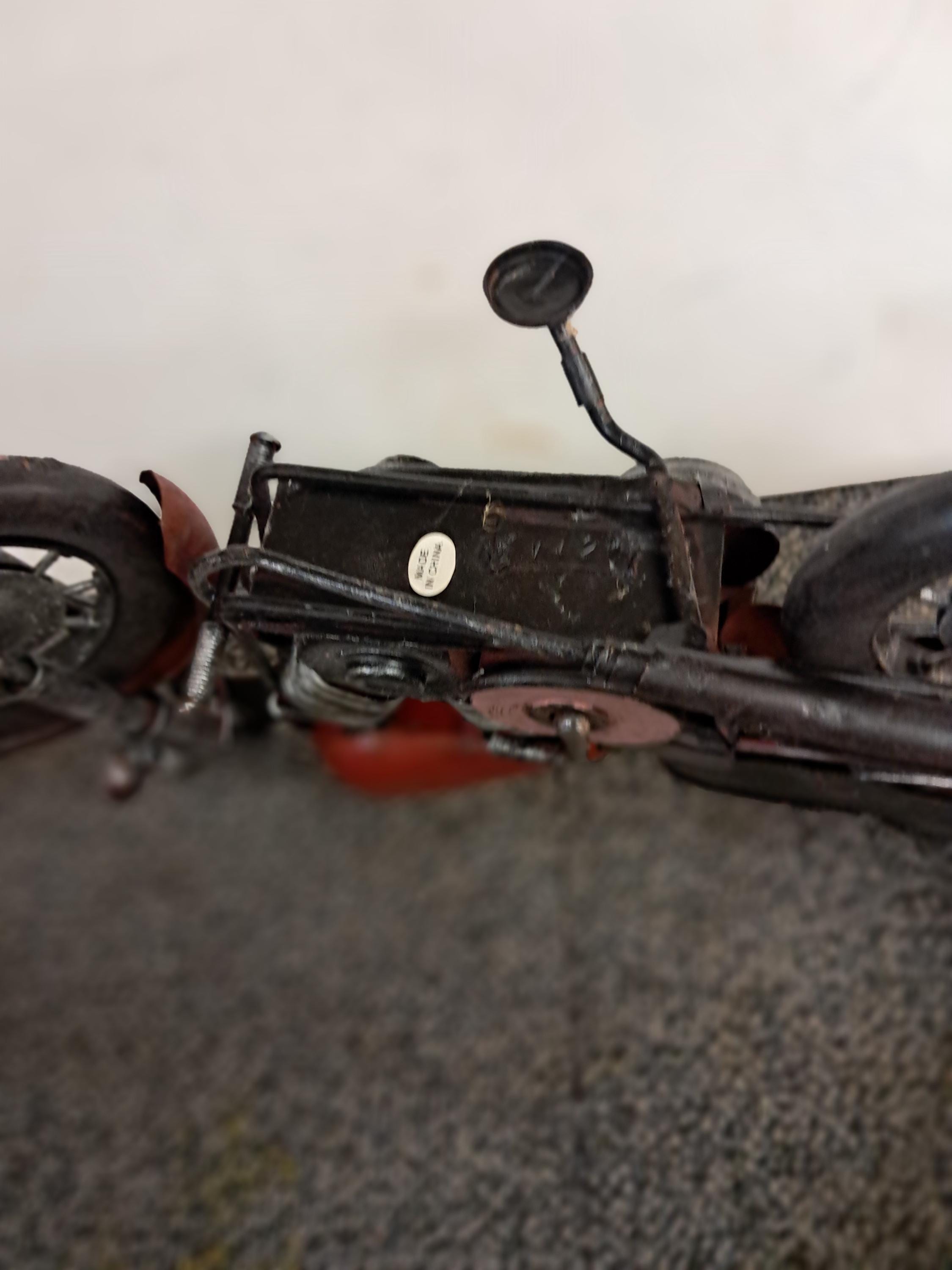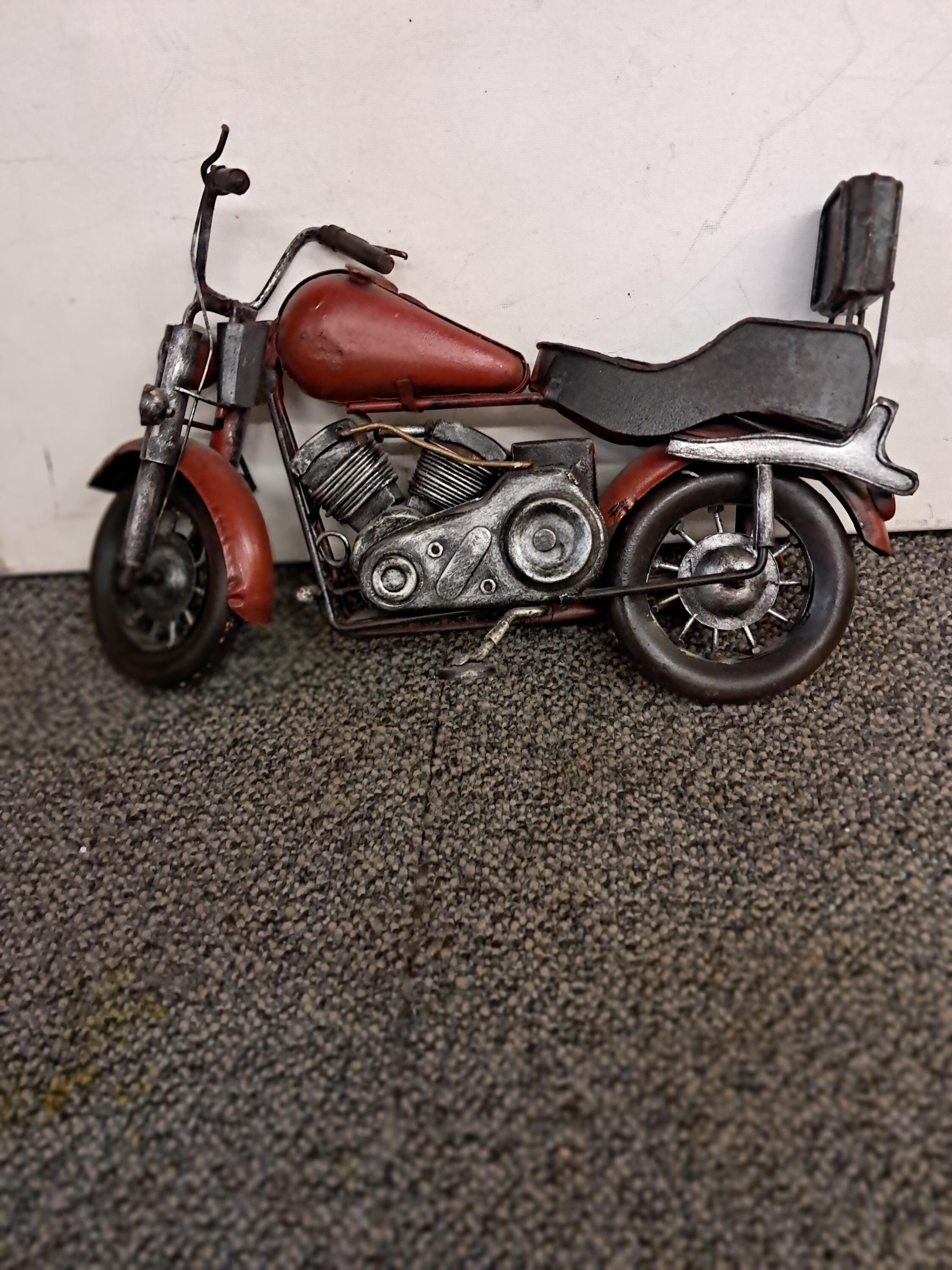 Motorcycle Art Decor Metal Bike Sculpture Steampunk Red Motorbike HeavyMeasurment: 13" long x 7" tall x 3" deep Good Vintage Condition. No Damages