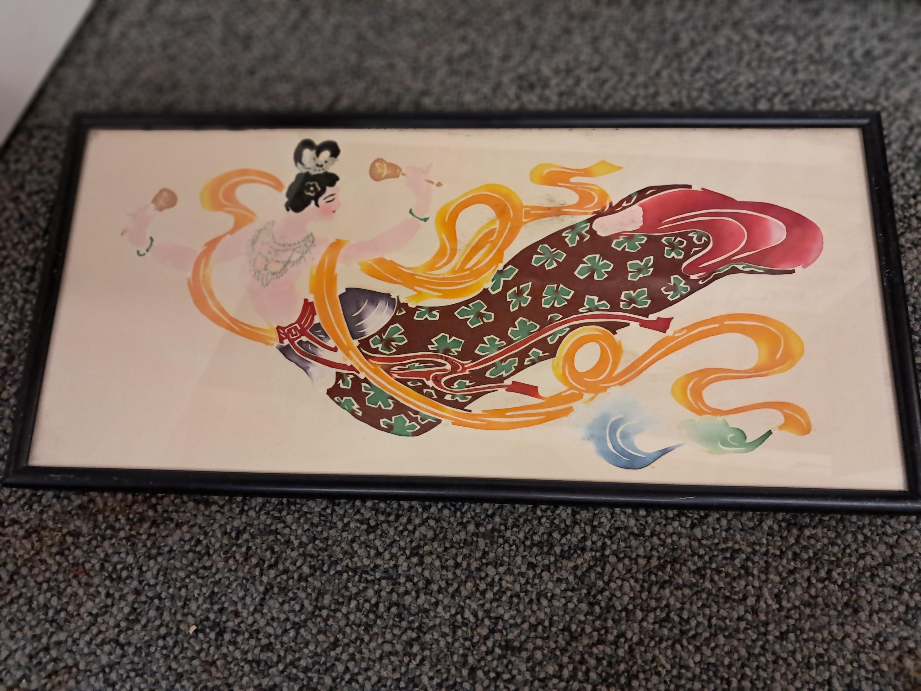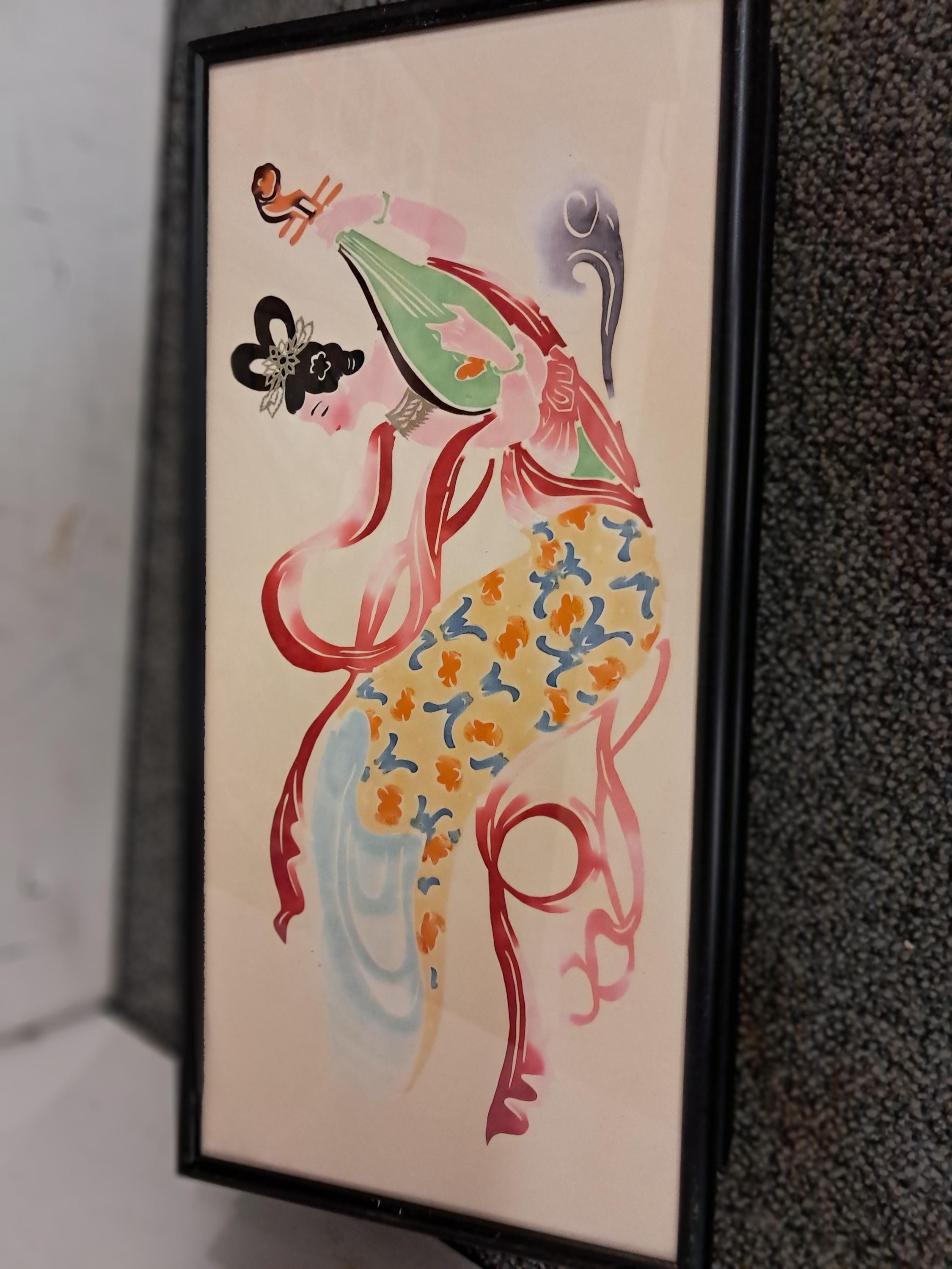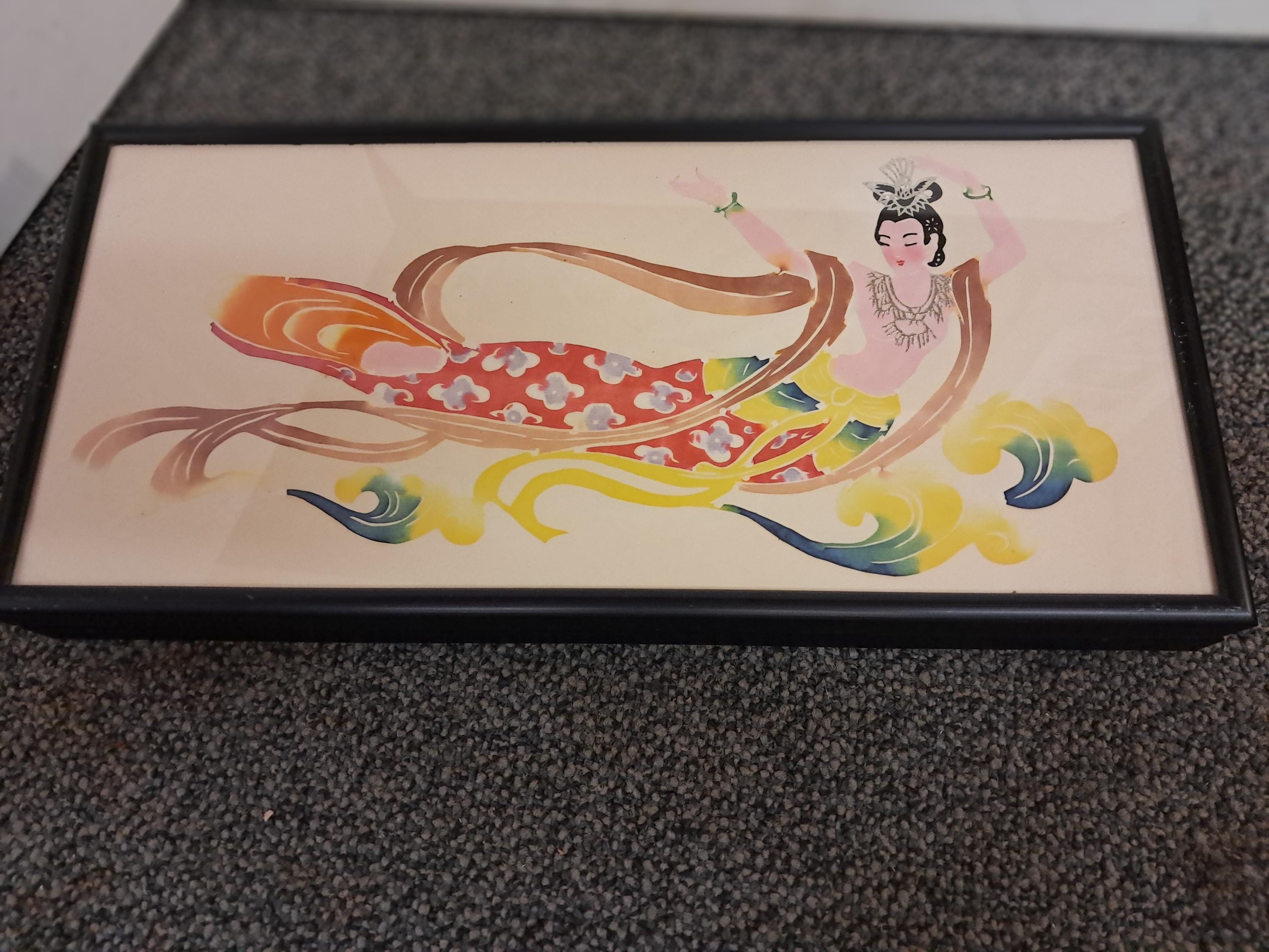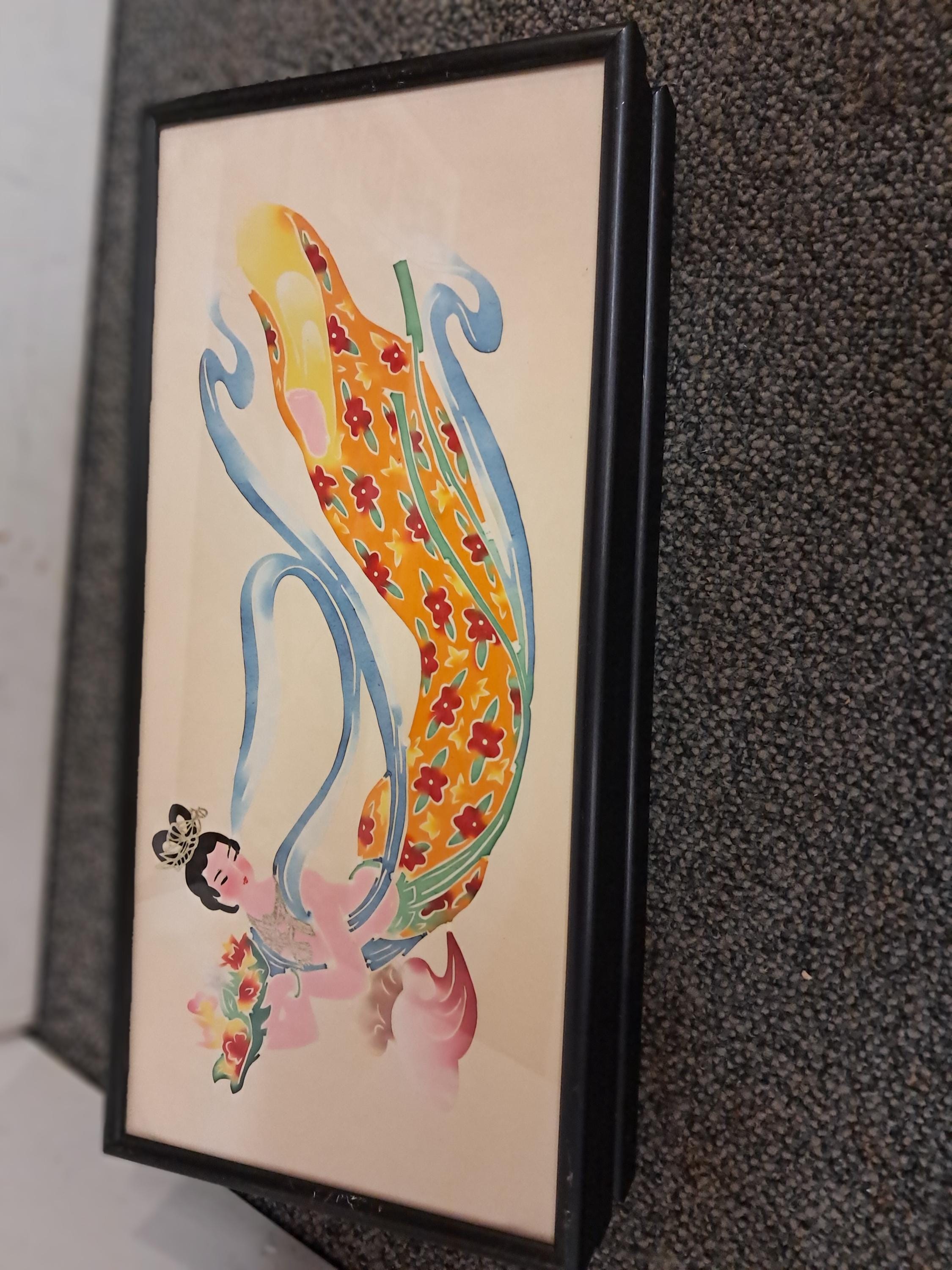 Chinese cut out of a deity made of painted and cut thin paper. The cut out come with between tissue paper and a backing sheet, but it is not attached to either. l