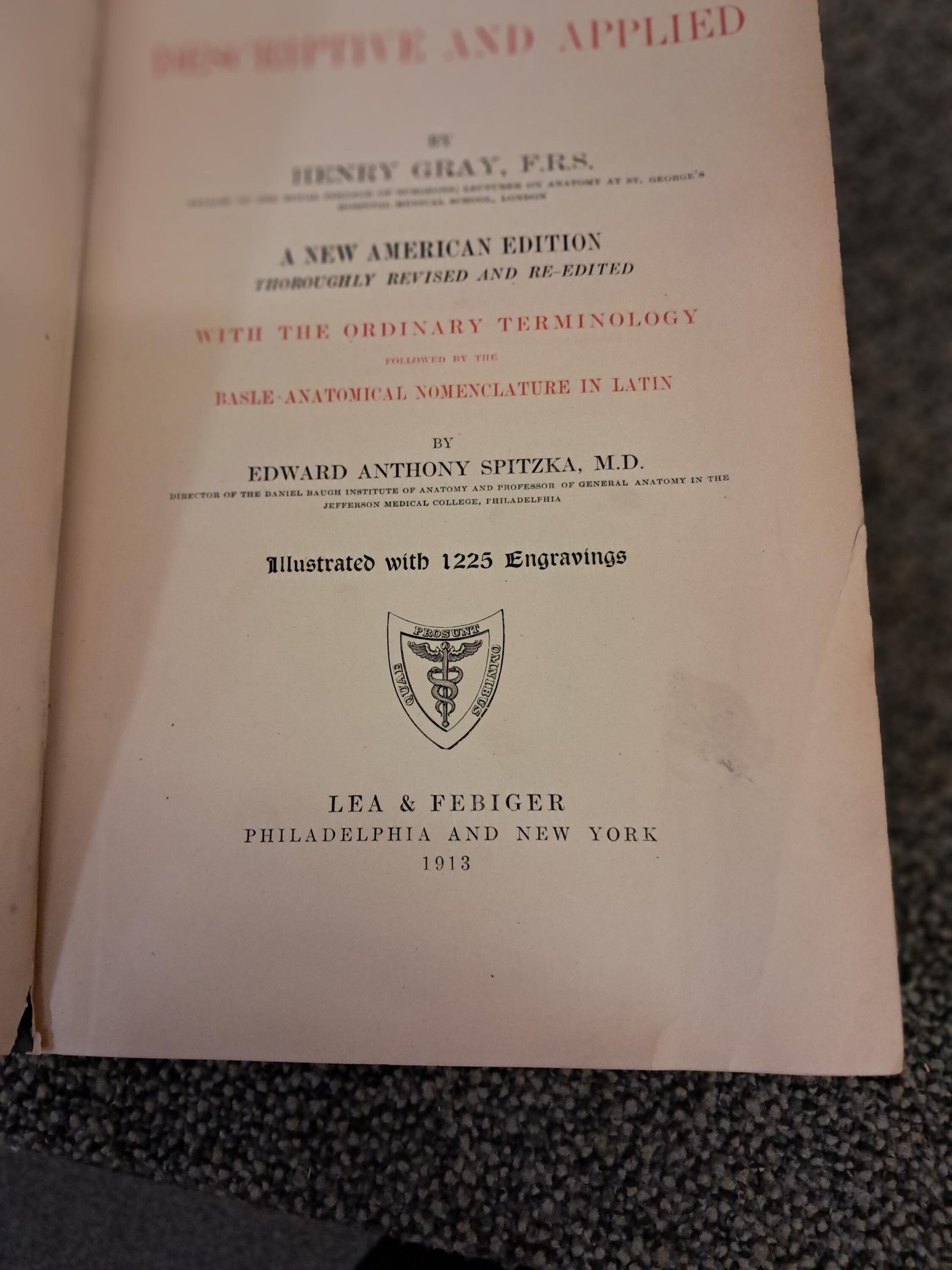 1913 GRAY’S ANATOMY DESCRIPTIVE AND APPLIED Hardcover