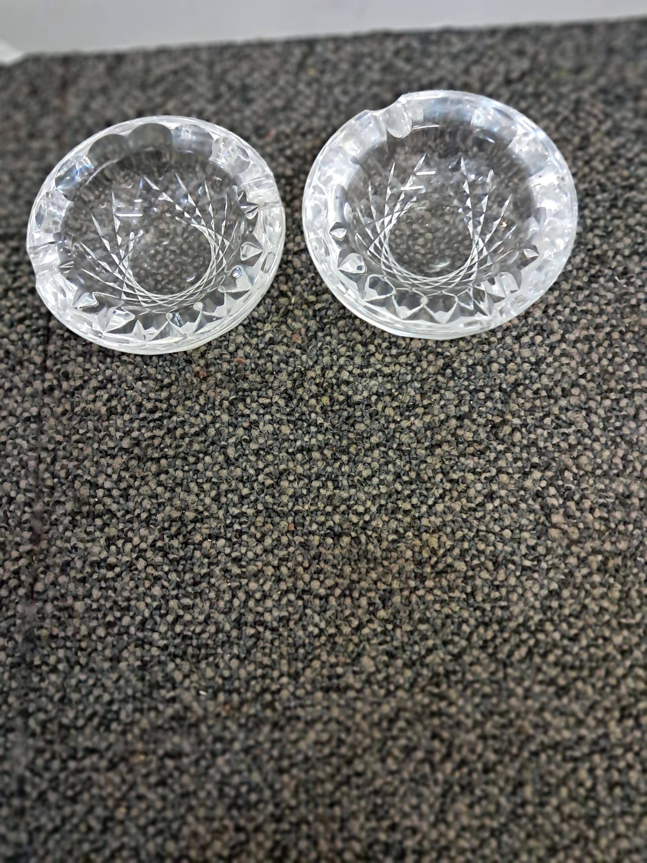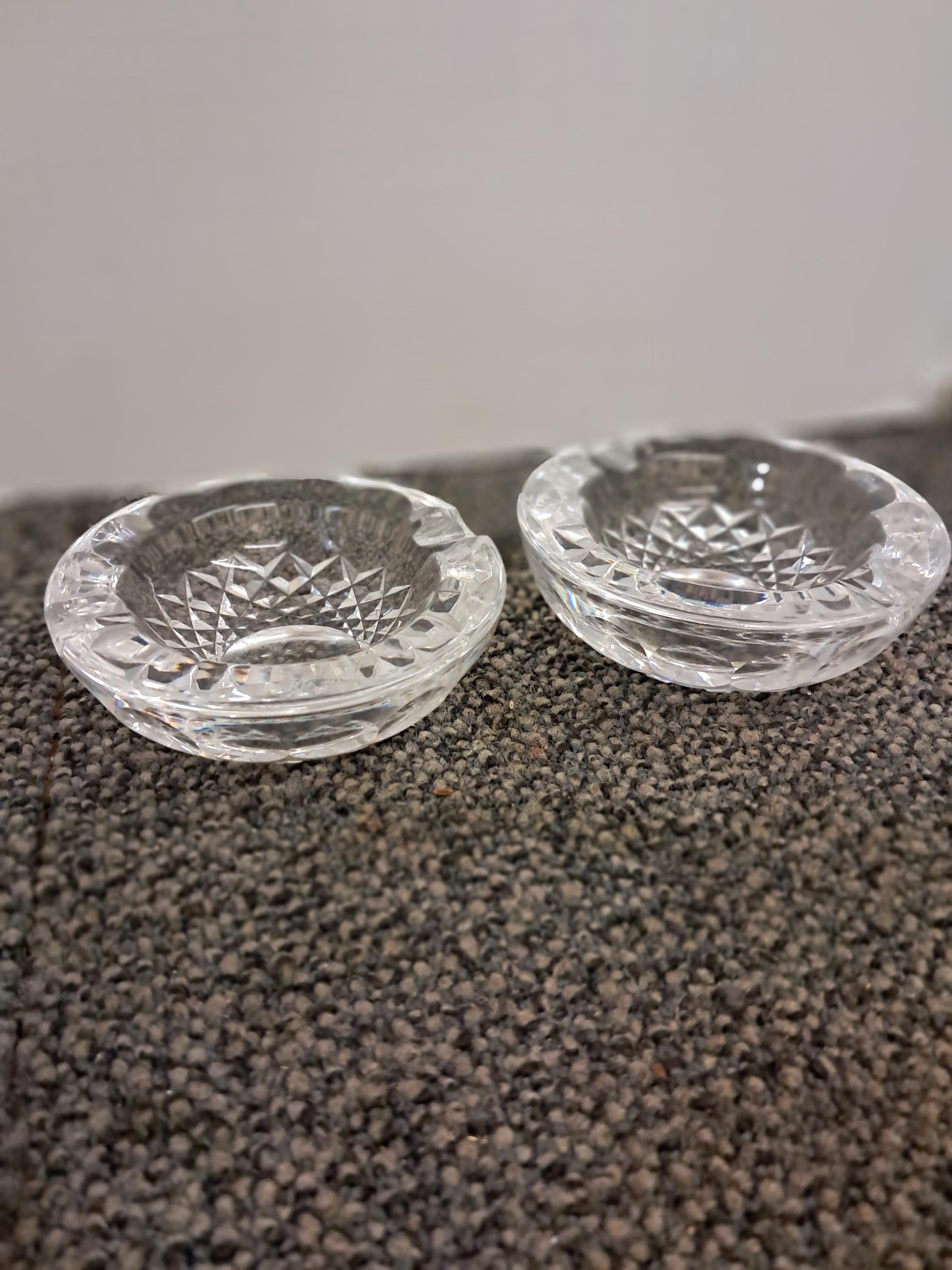 Two 1960s Mini Round Polished Crystal Ashtrays by Waterford
