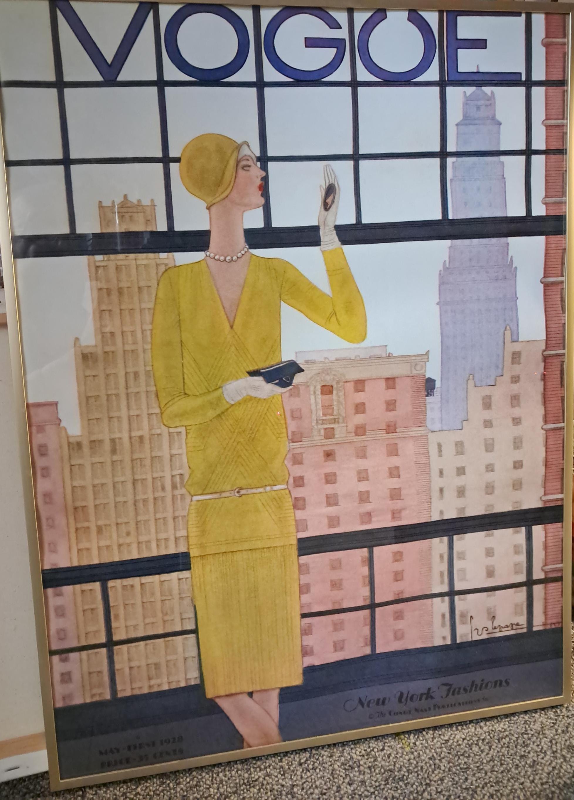 Vogue Magazine Cover Photo print ReproductionFramed : MetalMay 1, 1928 ~ Lepape Steichen Chanel Lanvin Paquin Art Deco24" tall x 18.5" wide x .75" deepExcellent Condition, No Damages