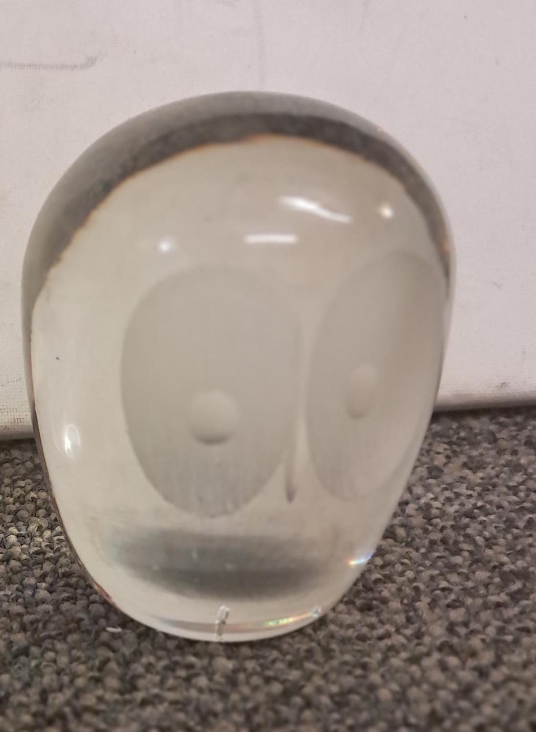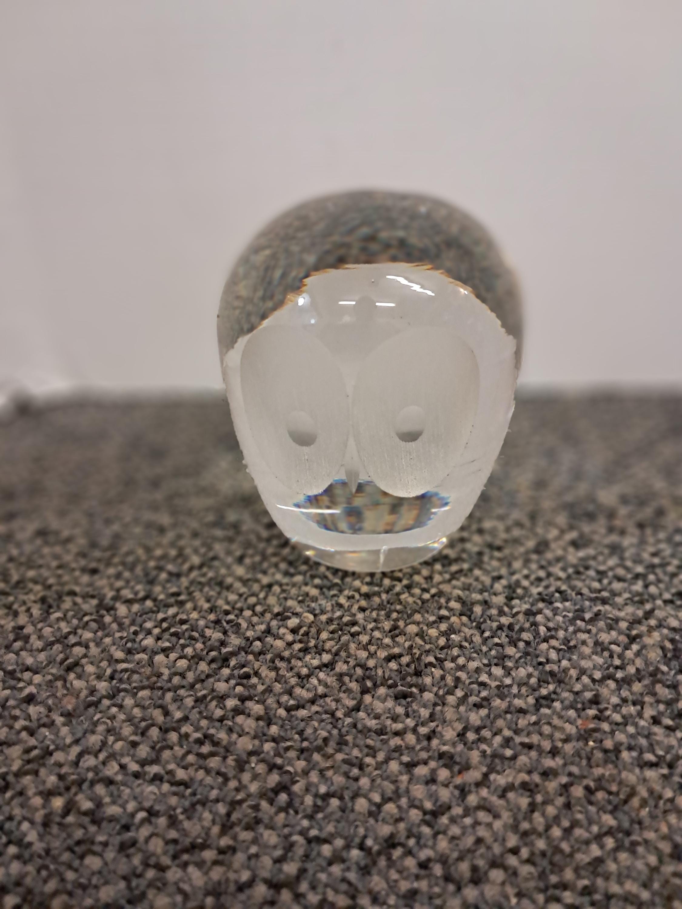Clear art glass owl figurine paperweight. t is in great used condition… some minor scratches at the at the bottom (although those could be from when it was made)