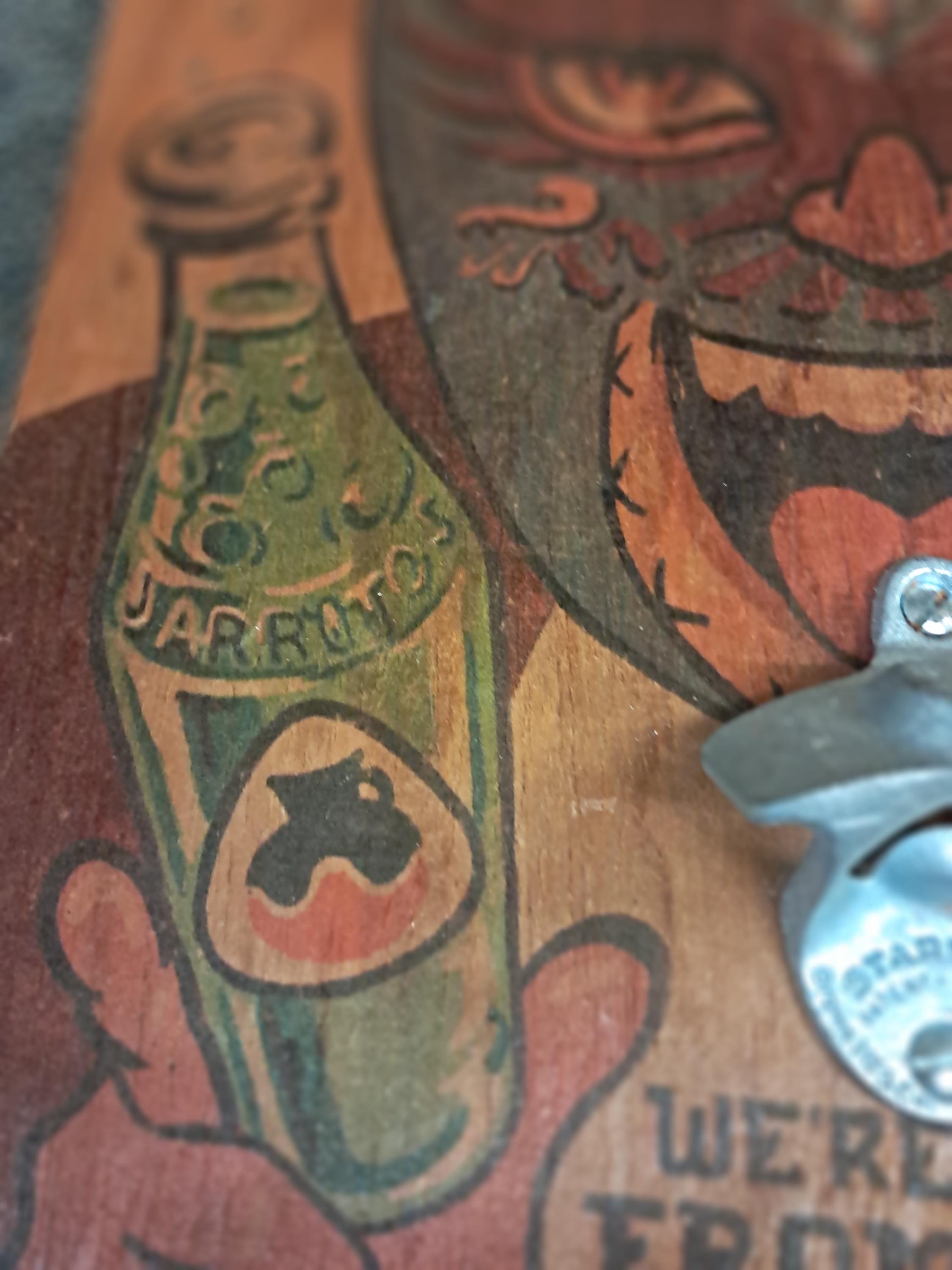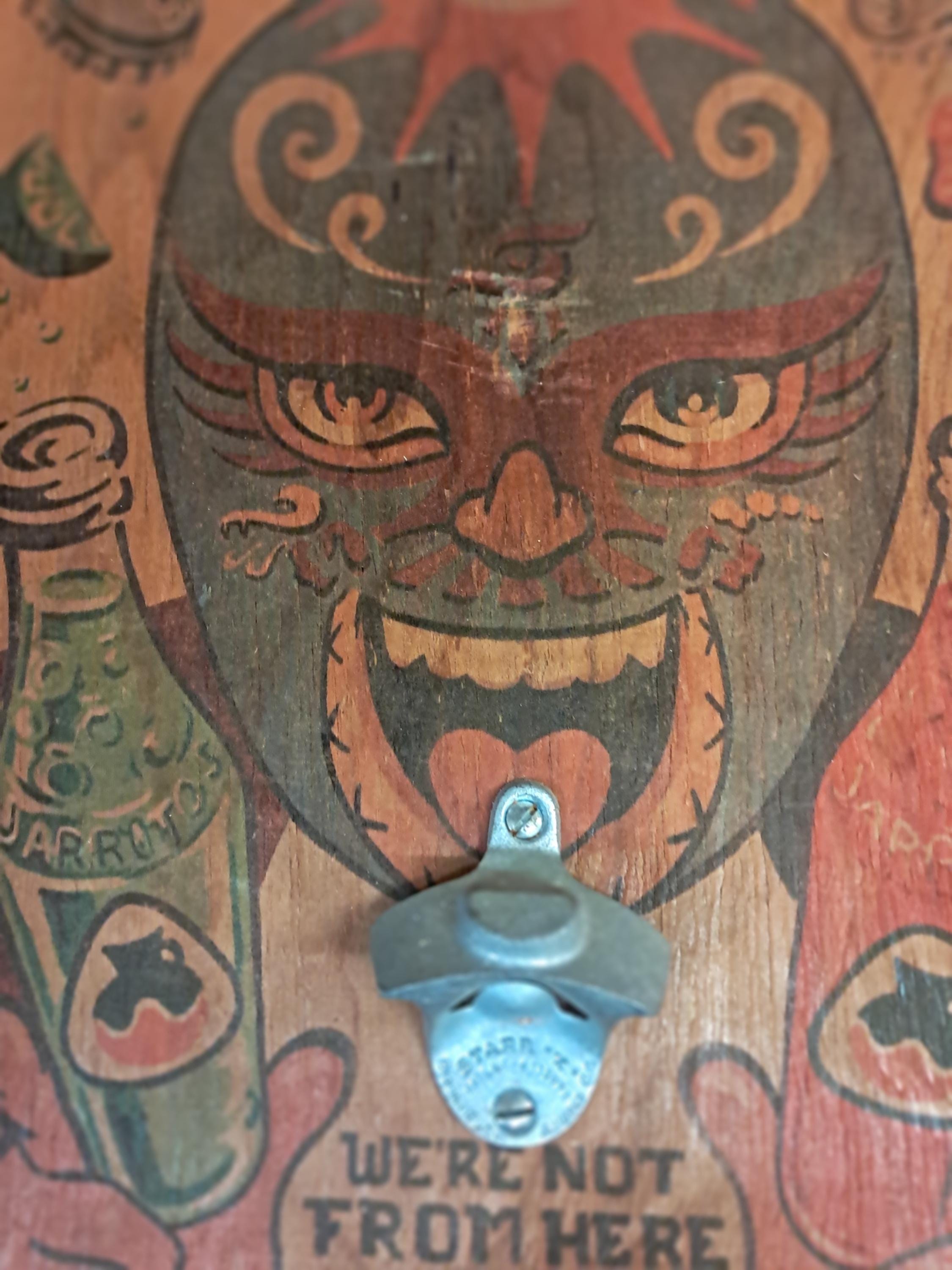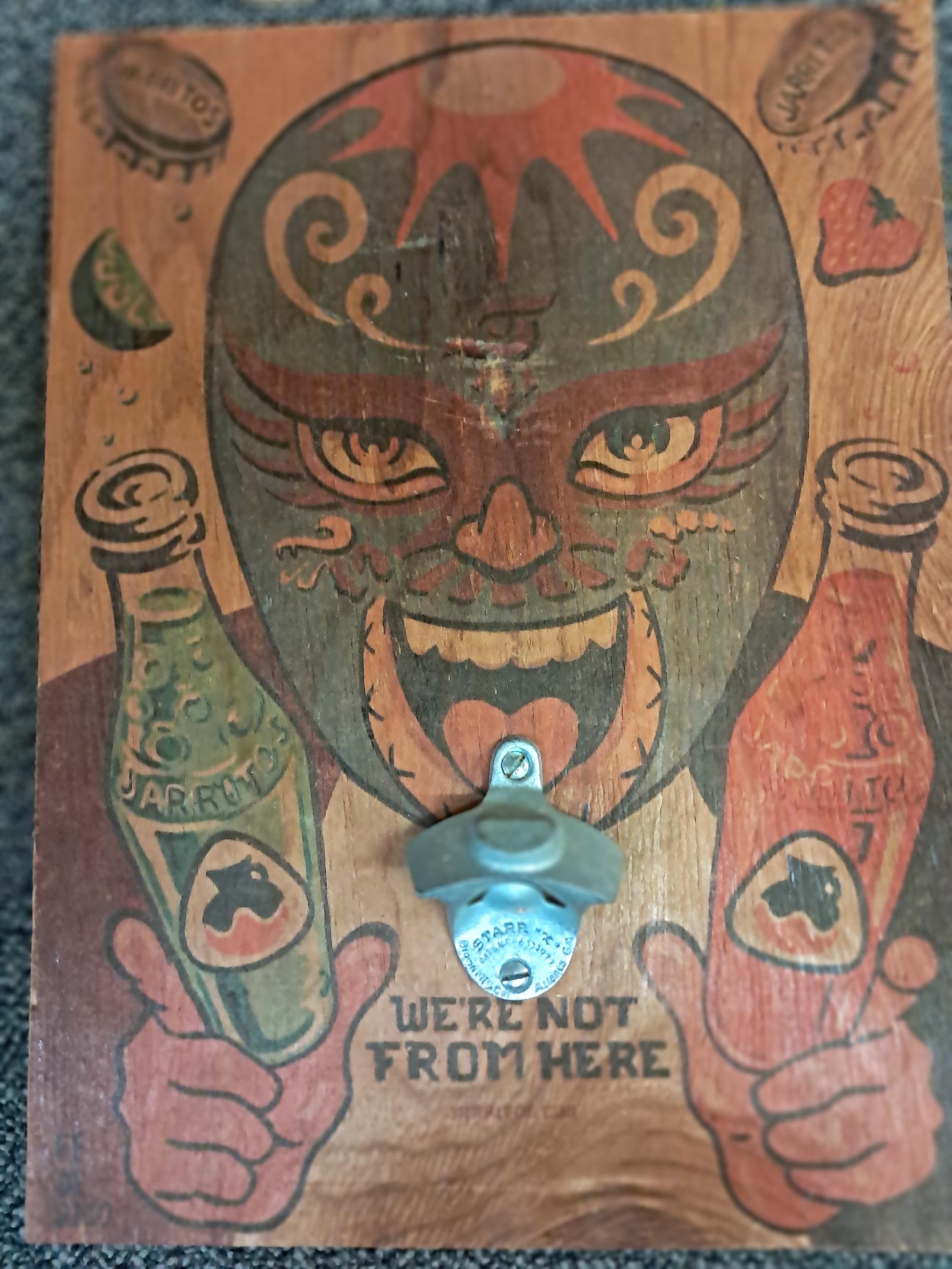Jarritos Hand Painted Wall Hanging Bottle OpenerSigned by : Federico. Lower LeftMeasurments:16.75" tall x 12" wide x 2' deepMade In Mexico Condition : Excellent ,No Damages