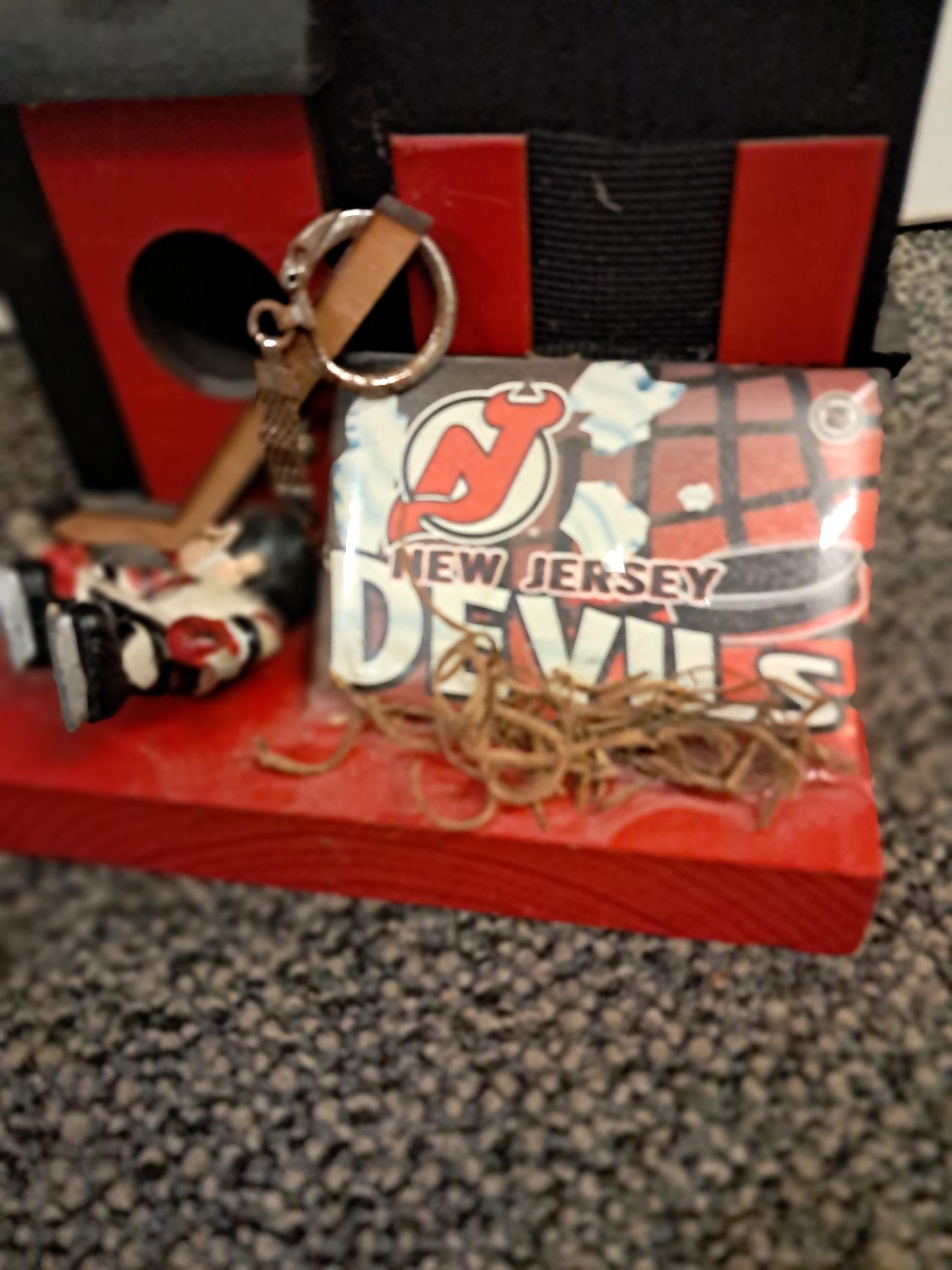 On Front There is NJ Devils Plaque and a NJDevil player key chain.