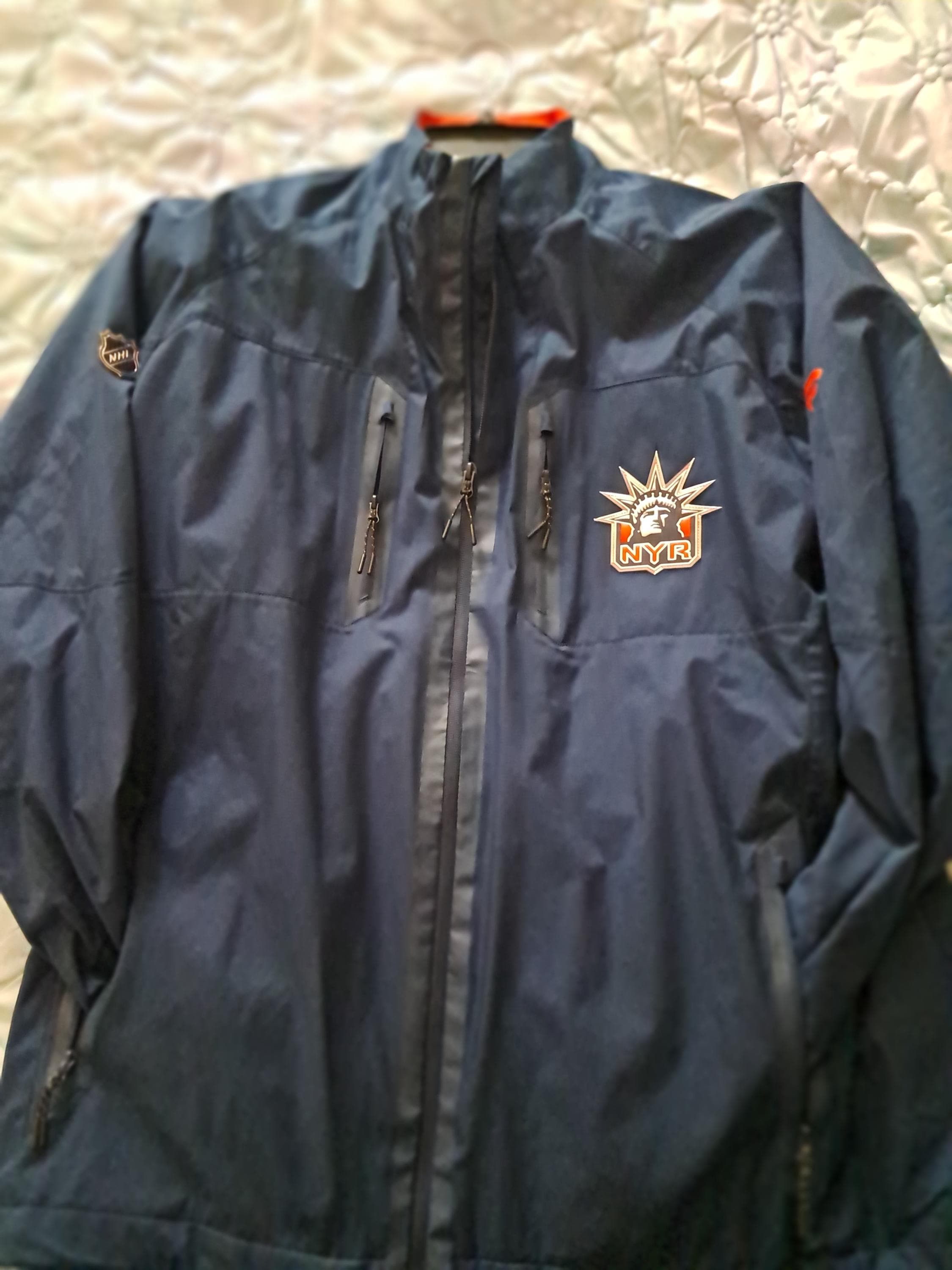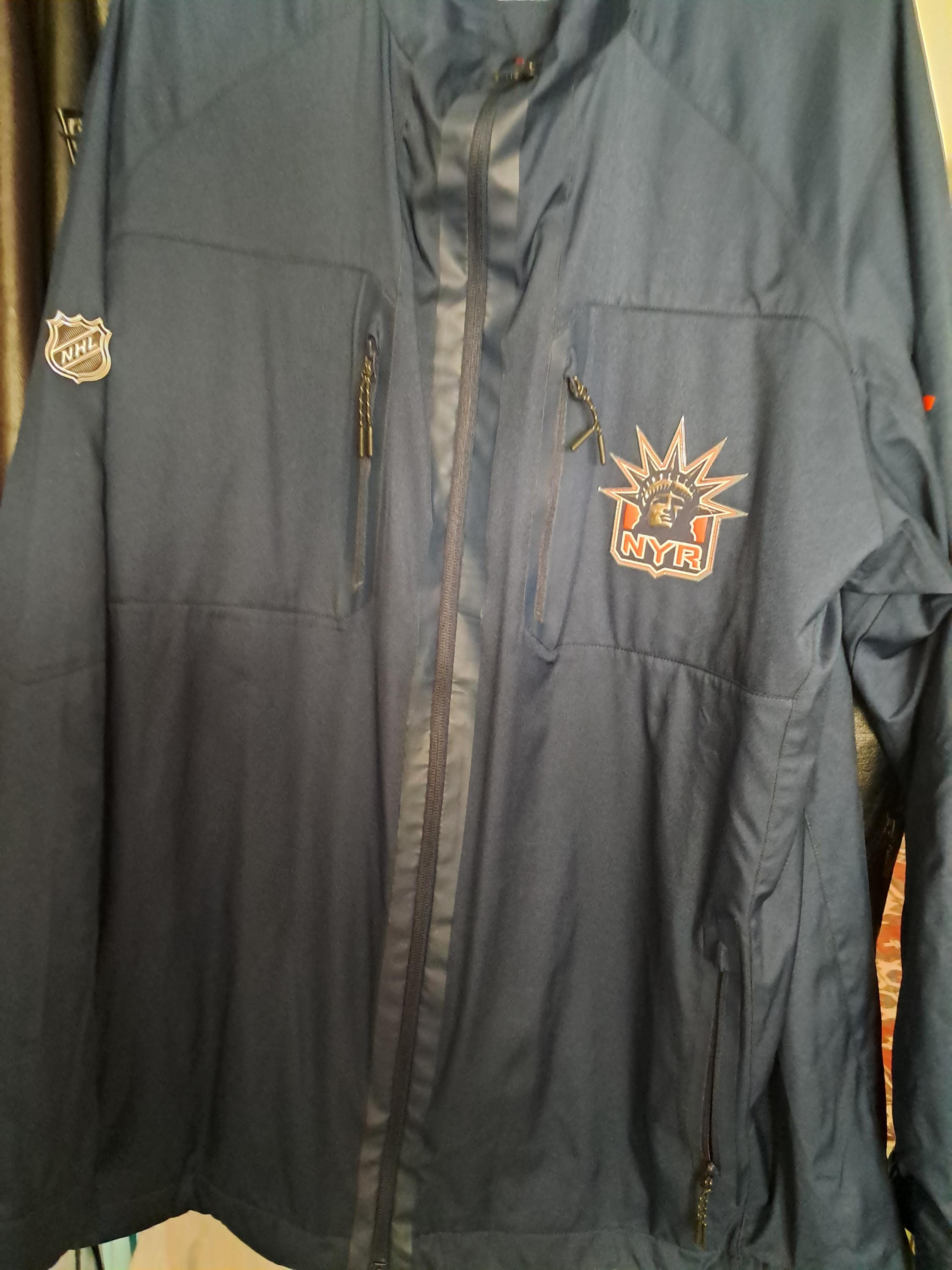 New York Rangers Windbreaker JacketAuthentic ProFanaticsSize : 2 XL,2TG,2EGCondition: Brand New. Never UsedMaterial:100 % polyesterCare: Machine Wash