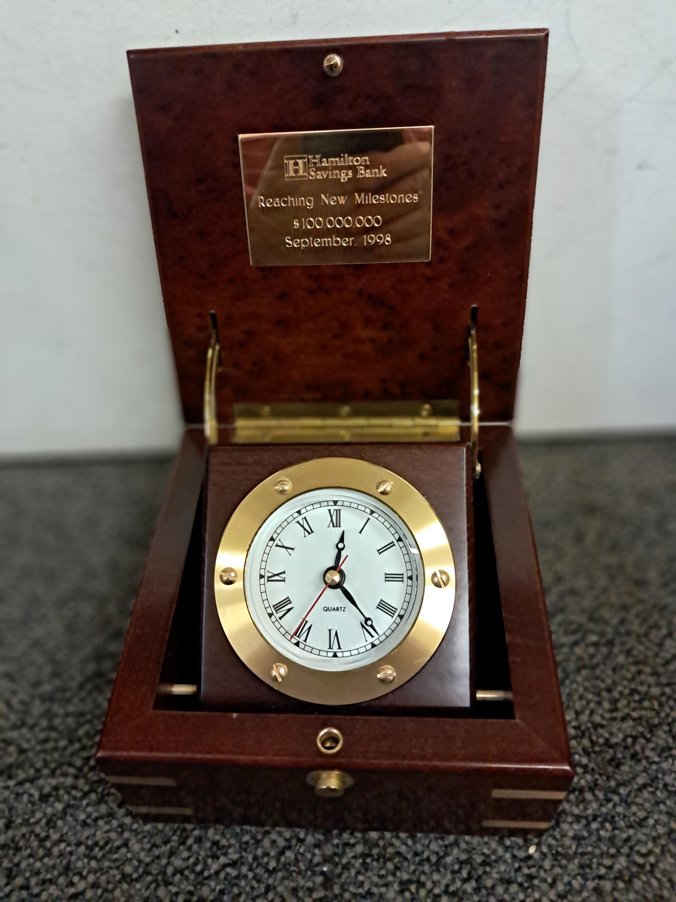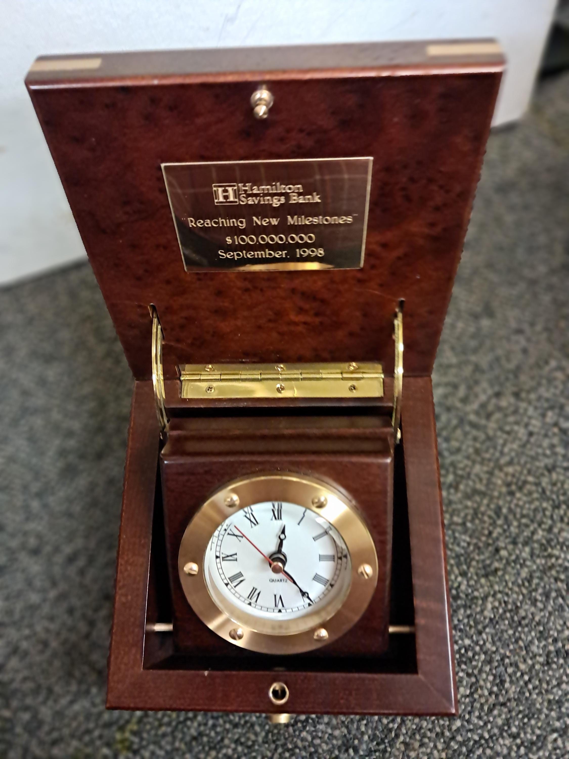 Exceptional Personalized Rosewood Piano Finish Clock With Brass Accents