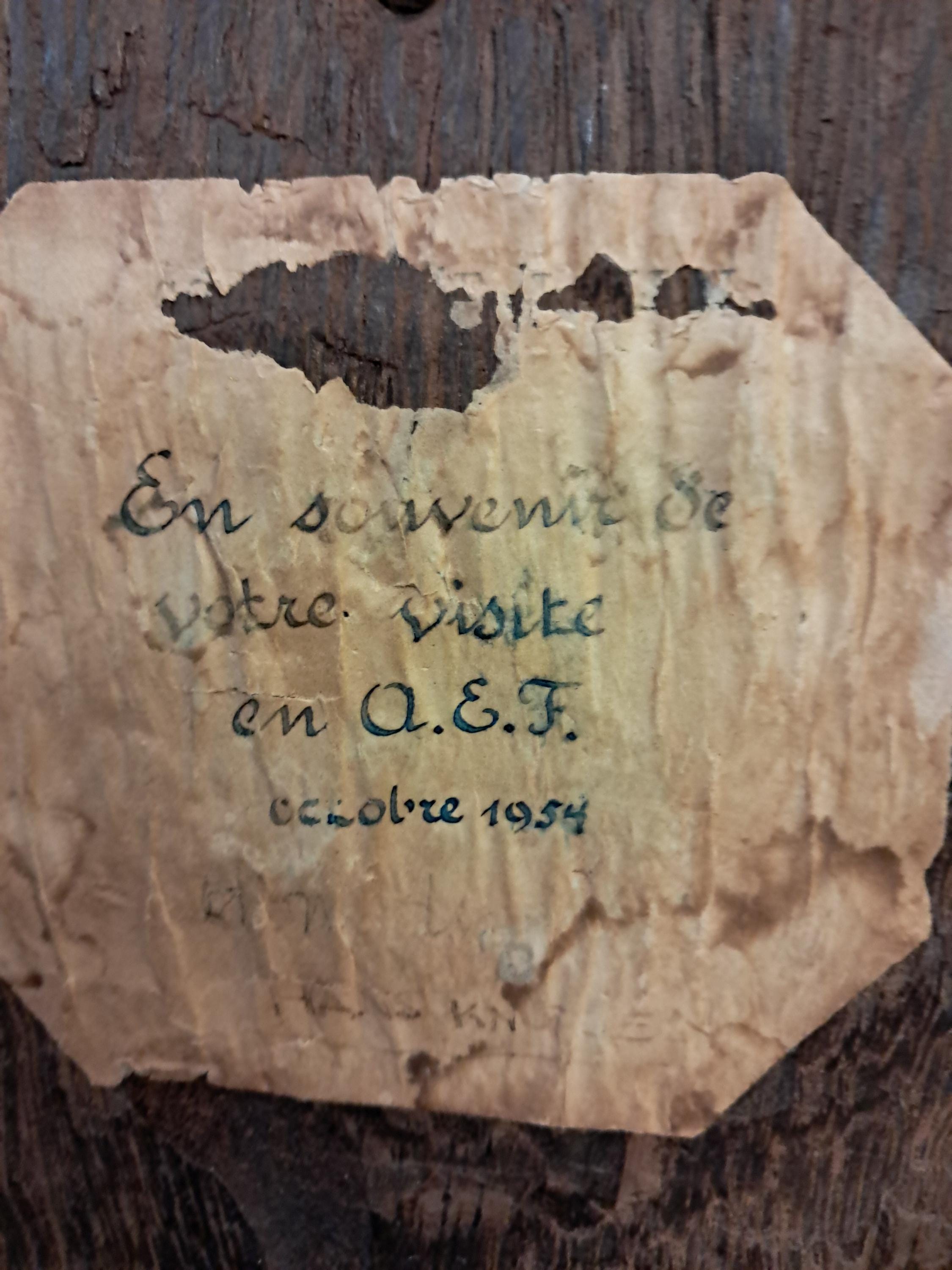 "EN SOUVENIR DE VOTRE VISITE EN A.E.F.,OCTOBRE 1954"