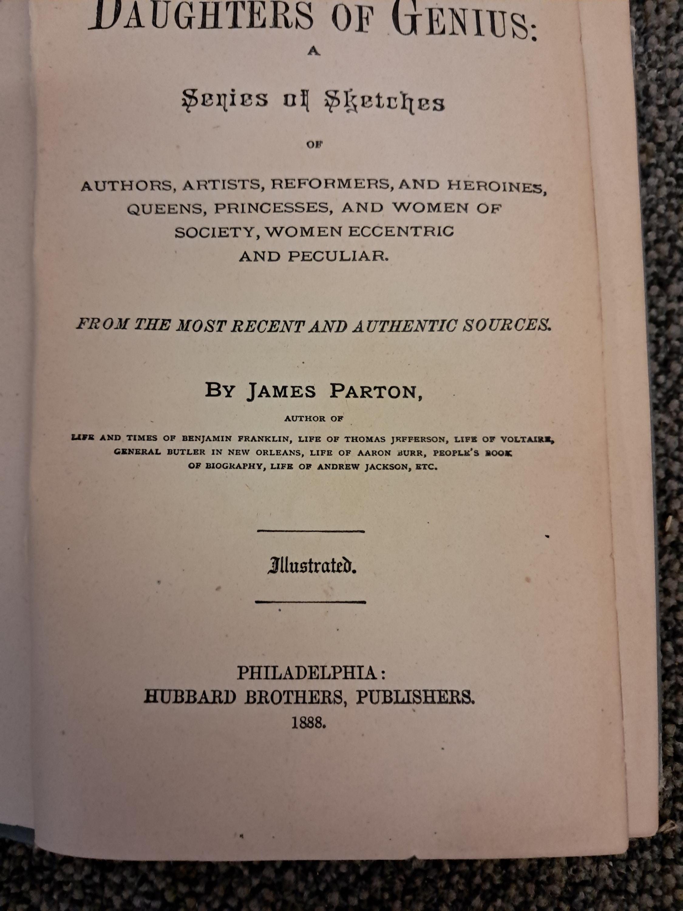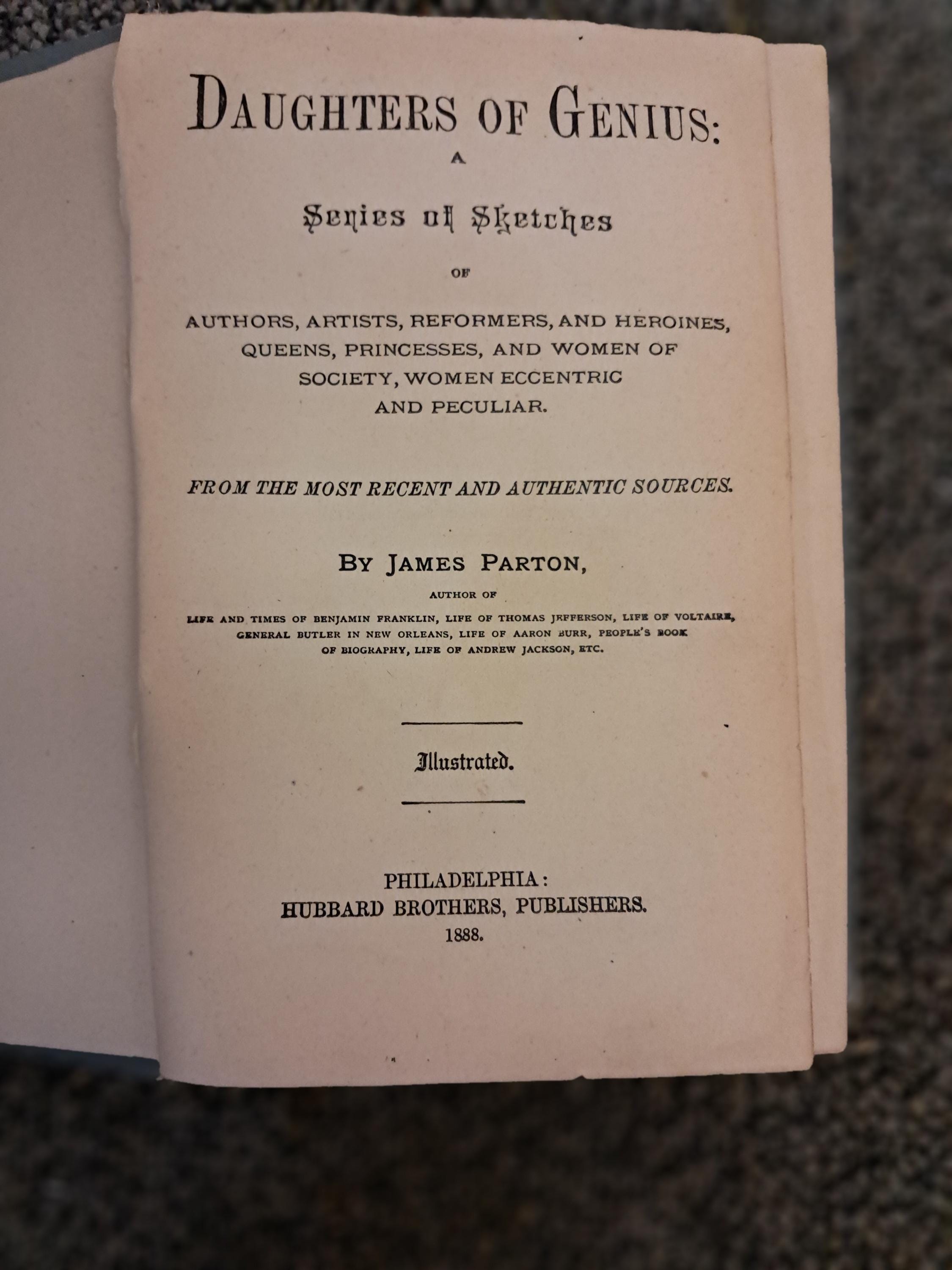 DAUGHTERS of GENIUS: A Series of Sketches of Authors, Artists, Reformers, and Heroines, Queens, Princesses, and Women of Society, Women Eccentric and Peculiar, from the Most Recent and Authentic Sources .James Parton