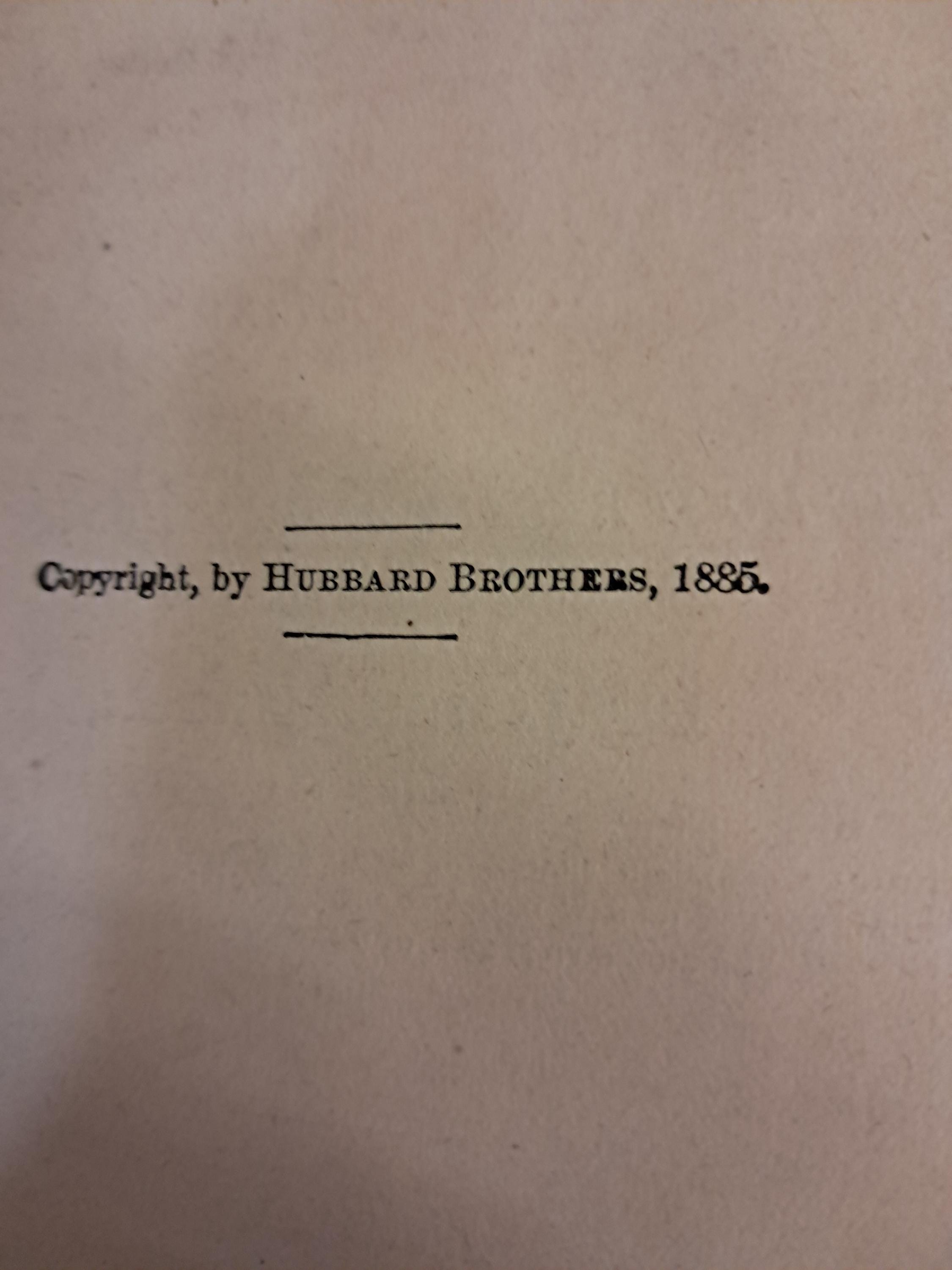Hubbard Brothers, Philadelphia, 1885. Copyright 1885. 563 pages. Many portraits. 7.75 x 5", decorated cloth. Sally Lincoln, Harriet Beecher Stowe, Louisa May Alcott, Peggy Shippen, Laura Bridgman, Martha Washington, Charlotte Cushman, Maria Mitchell, Peg O'Neal, etc. 'Christmas, 1885, cloth rubbed, soiled, text toned, inner hinges reinforced, fair.Slight wear and tear on corners.