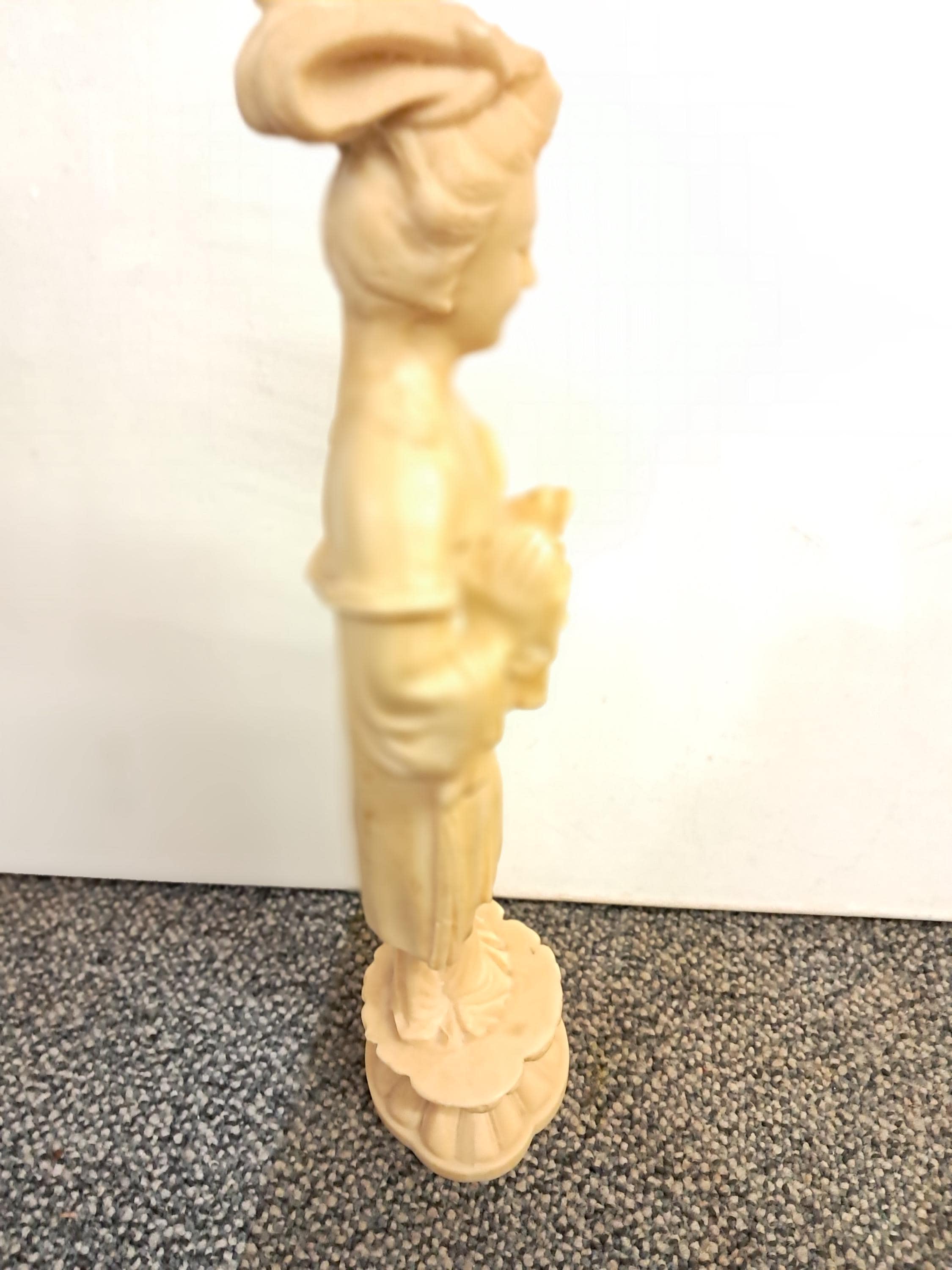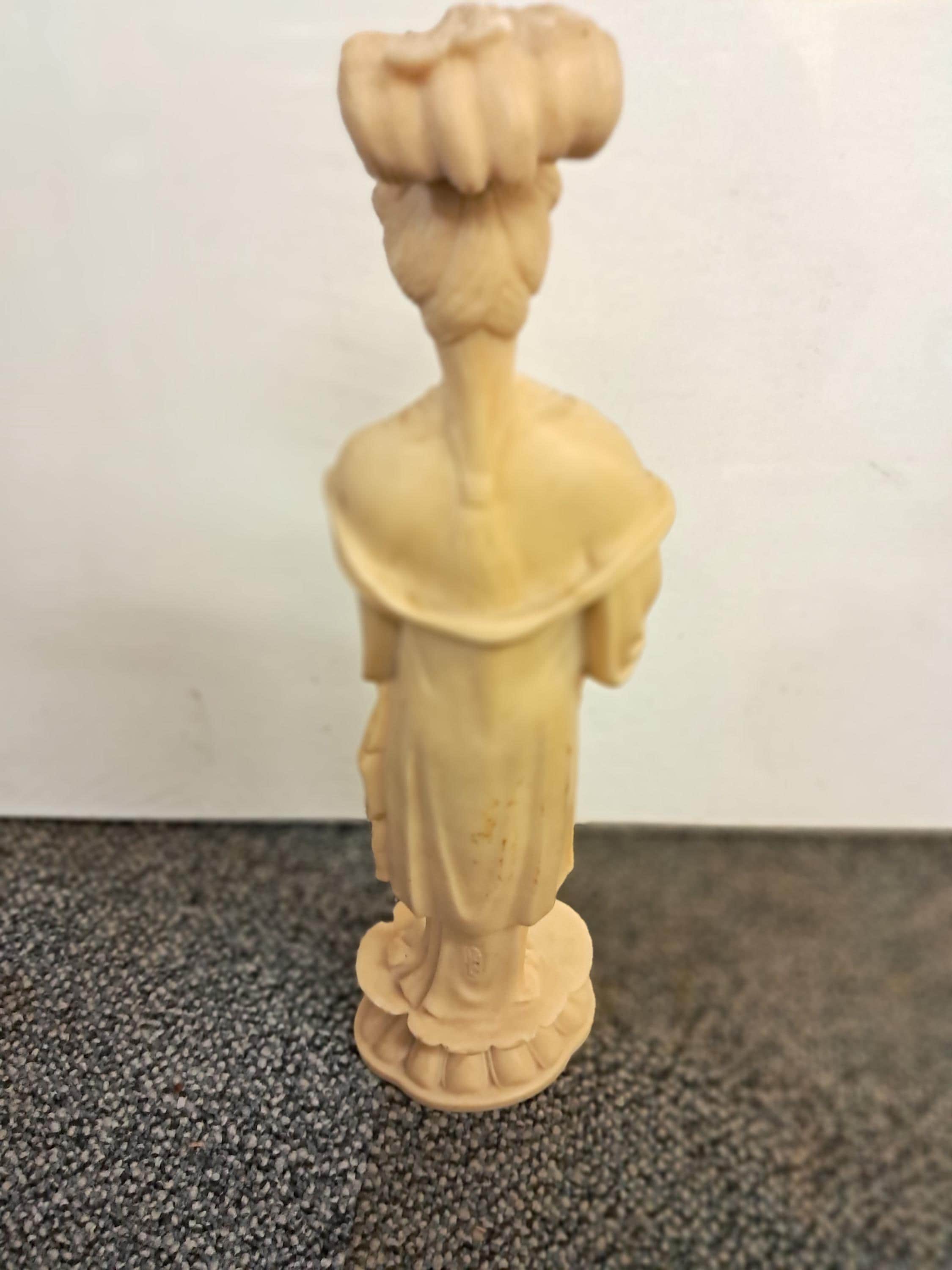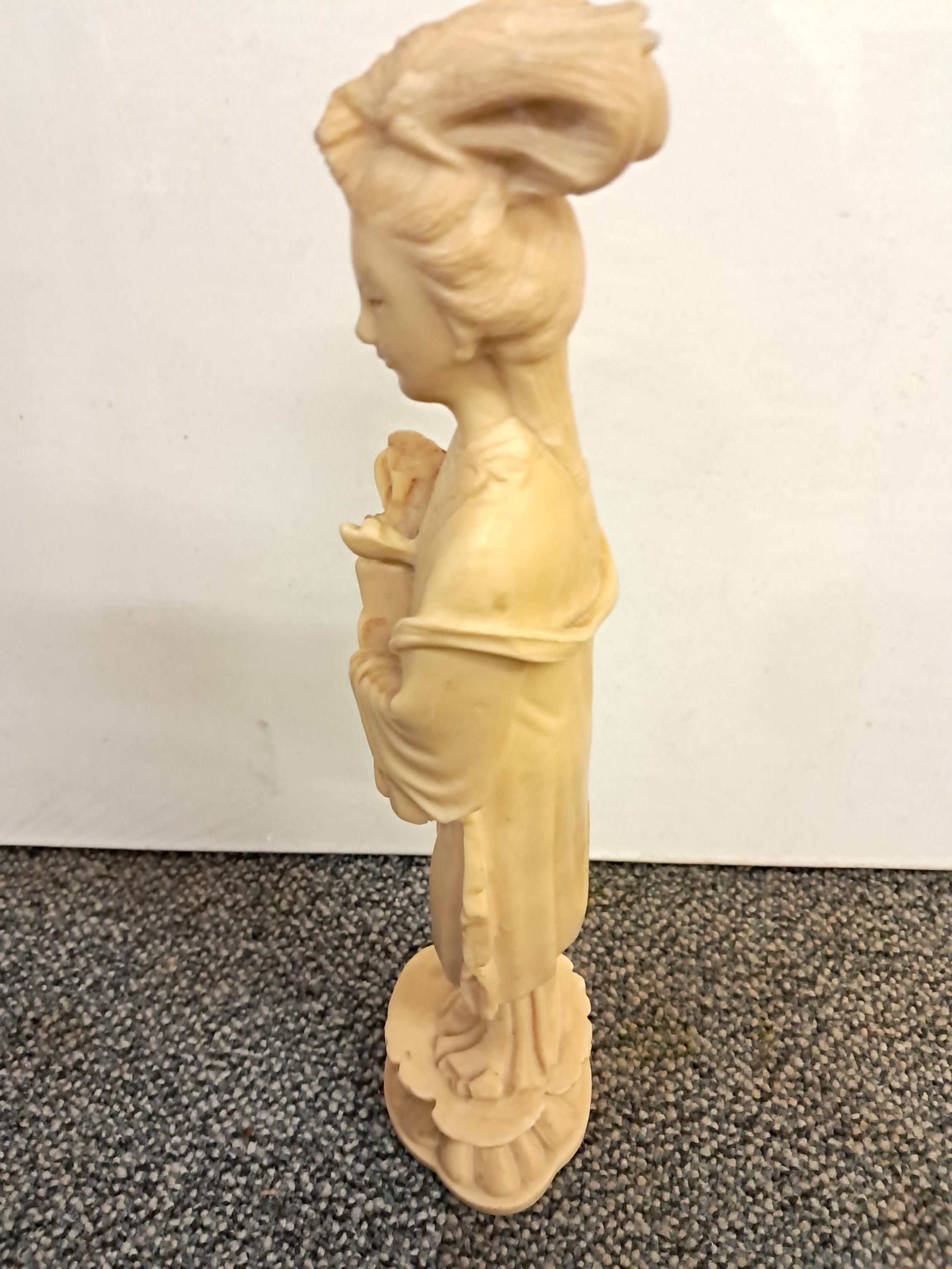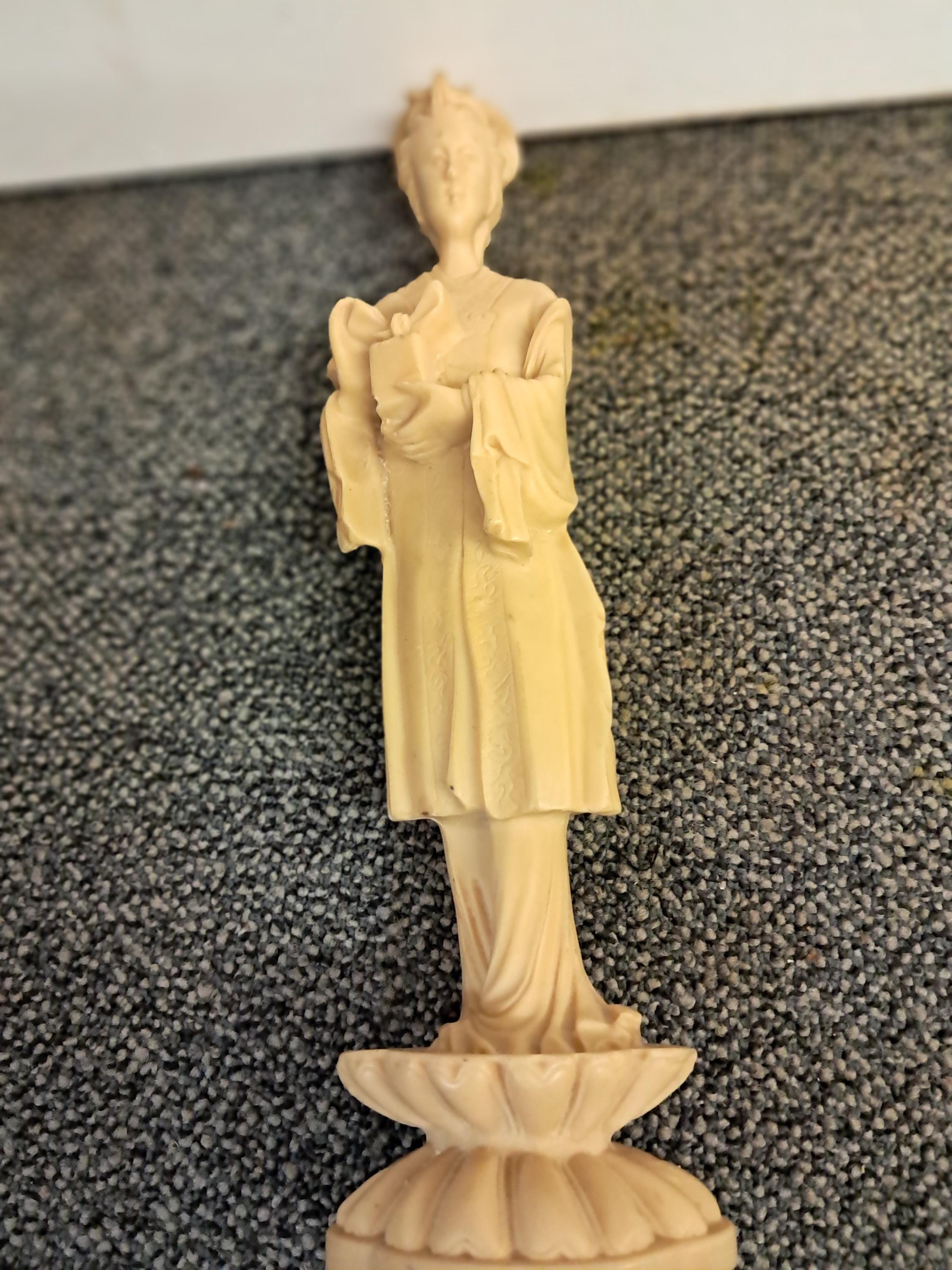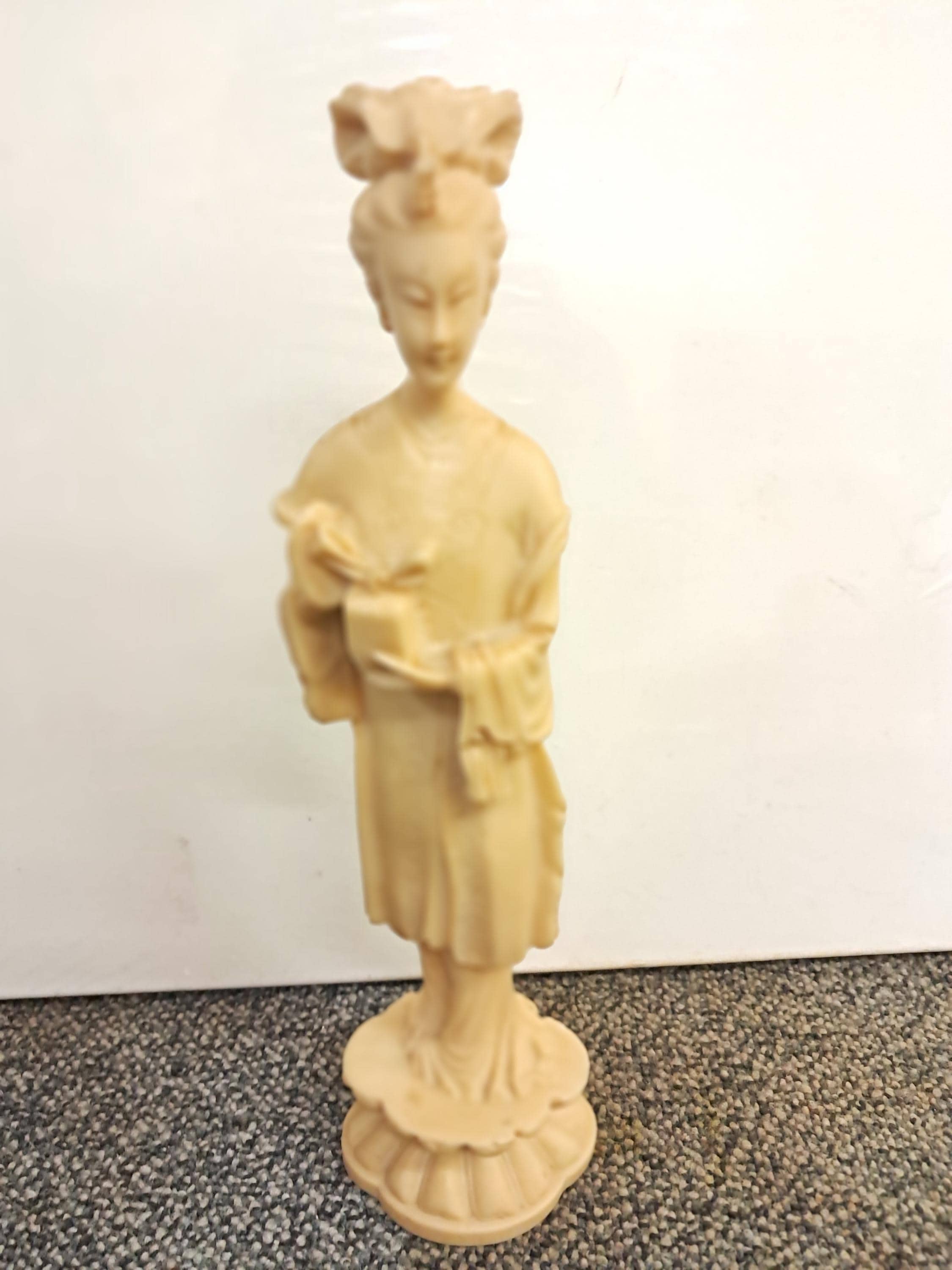 Vintage Chinese Woman Figurines, Carying Gift, Carved Resin 12" Asian Statue12" tall x 3" wide x 2.5" deepPerfect Condition with no damages Made In Italy