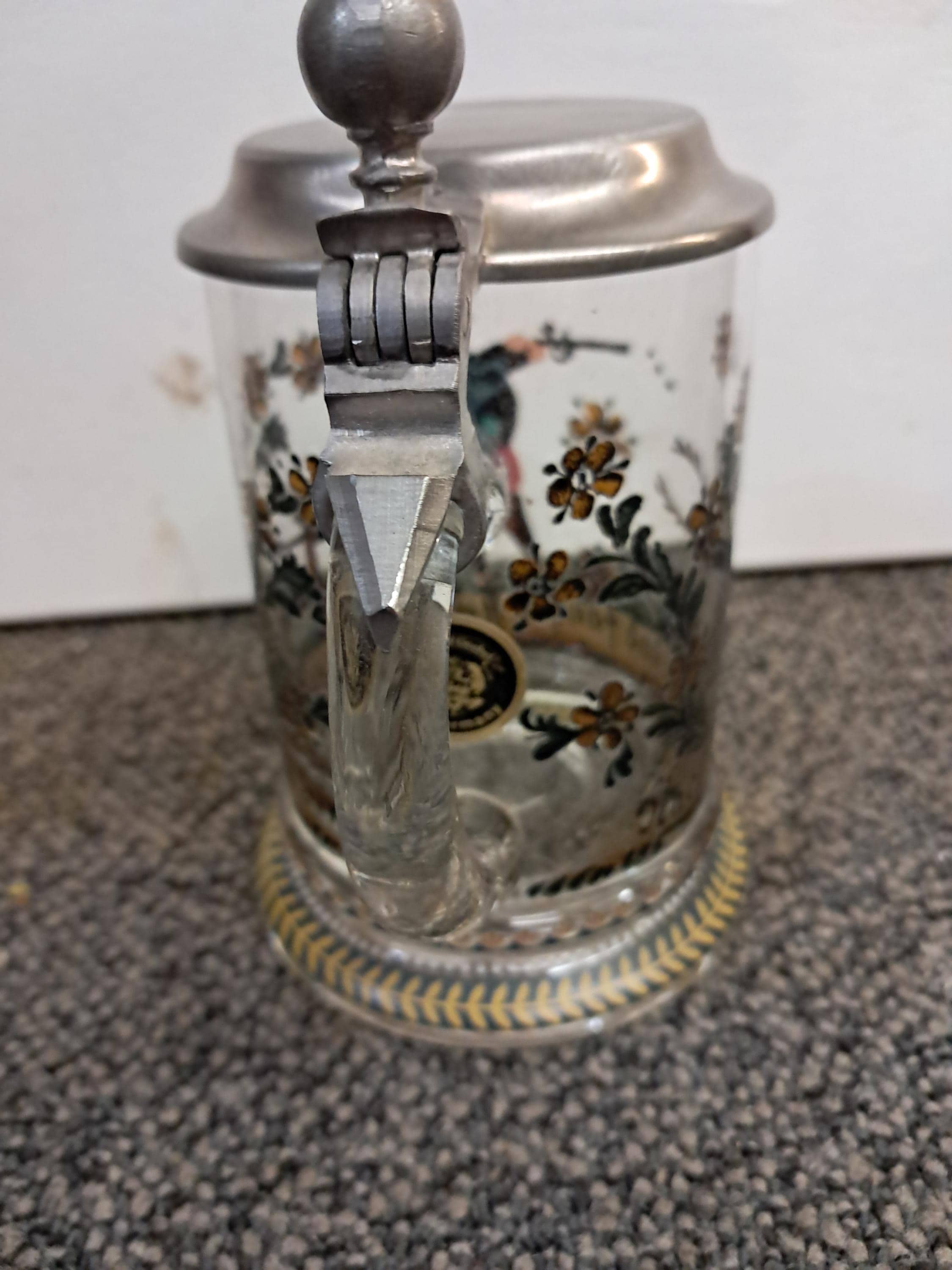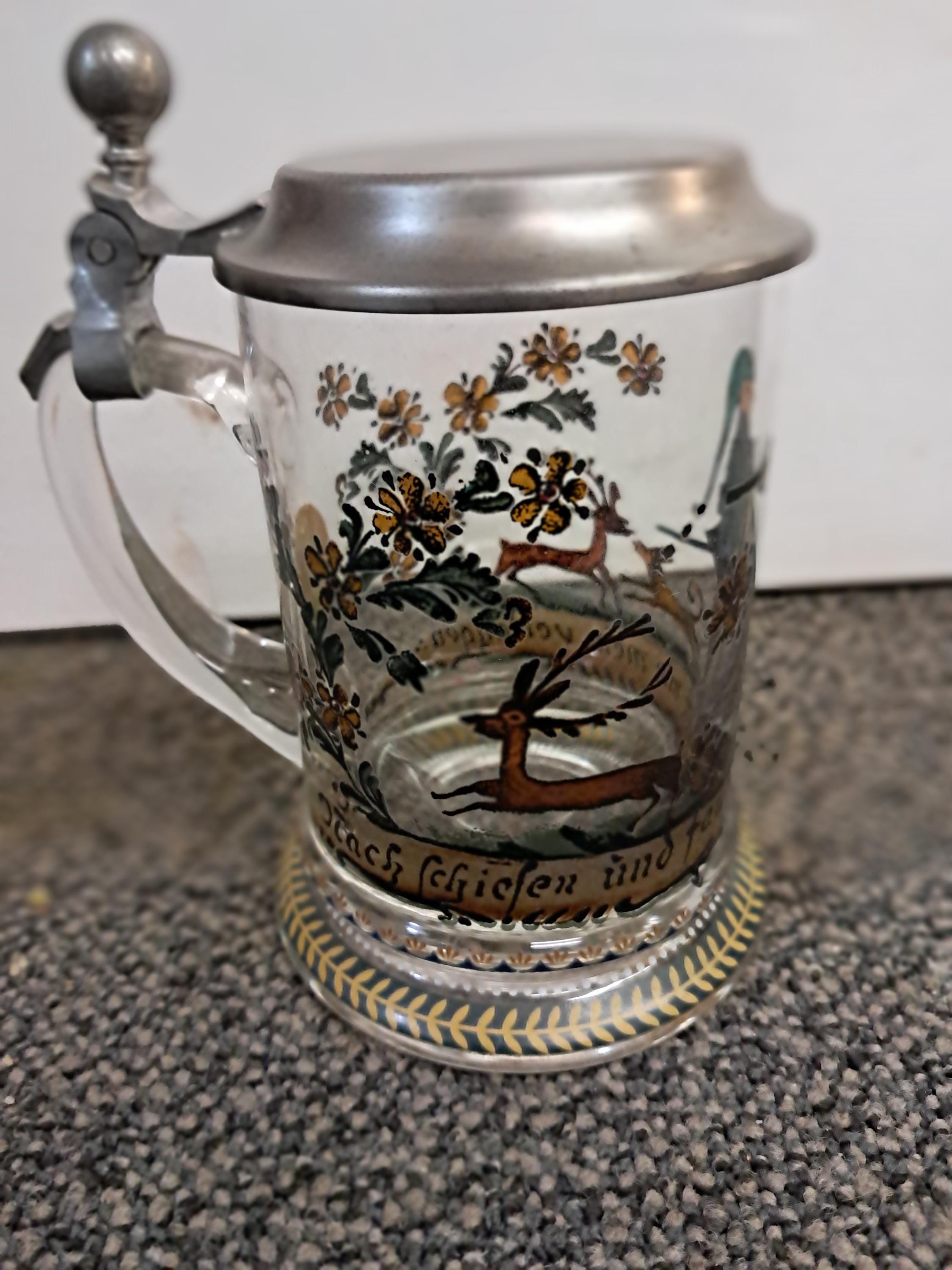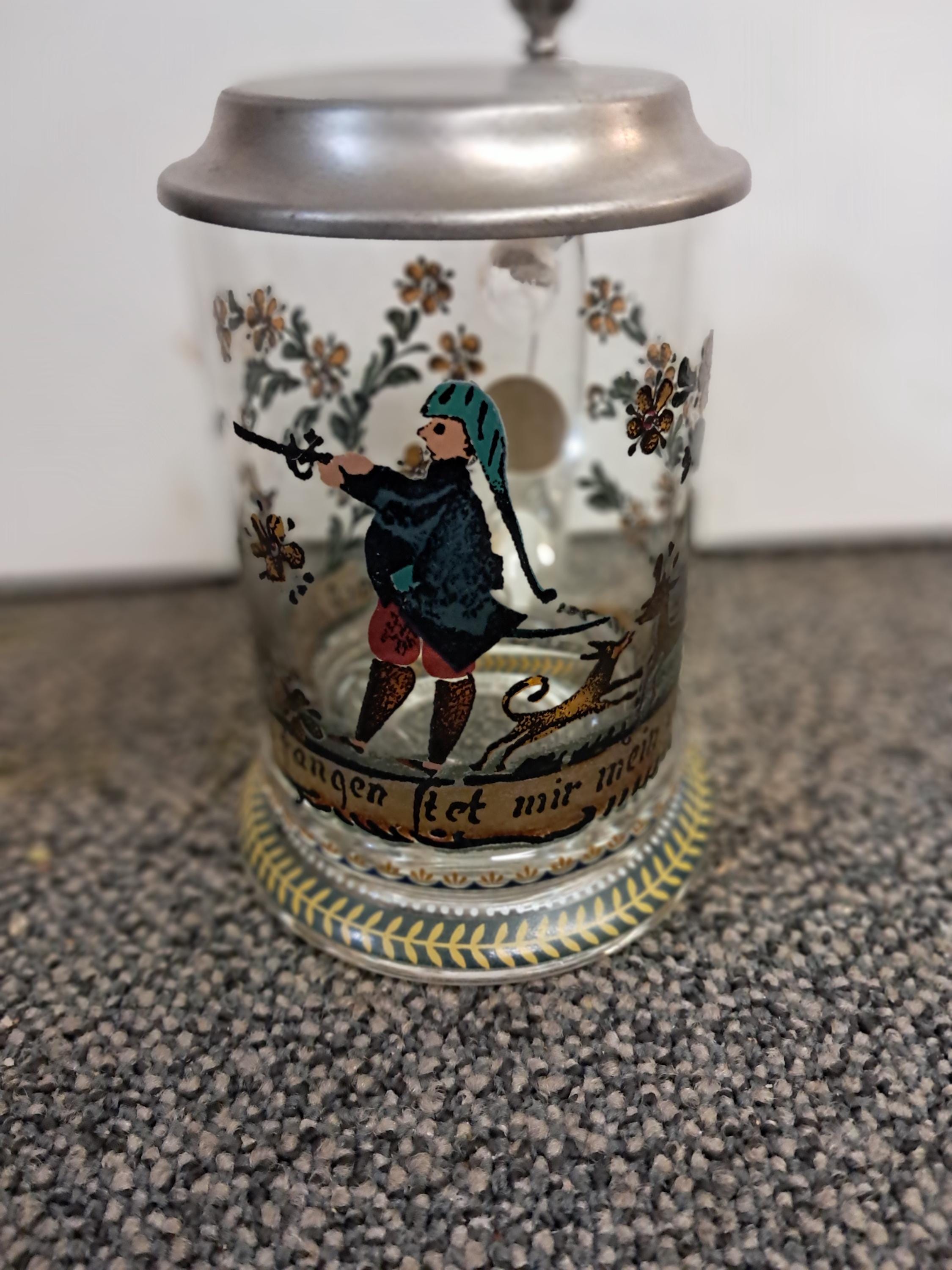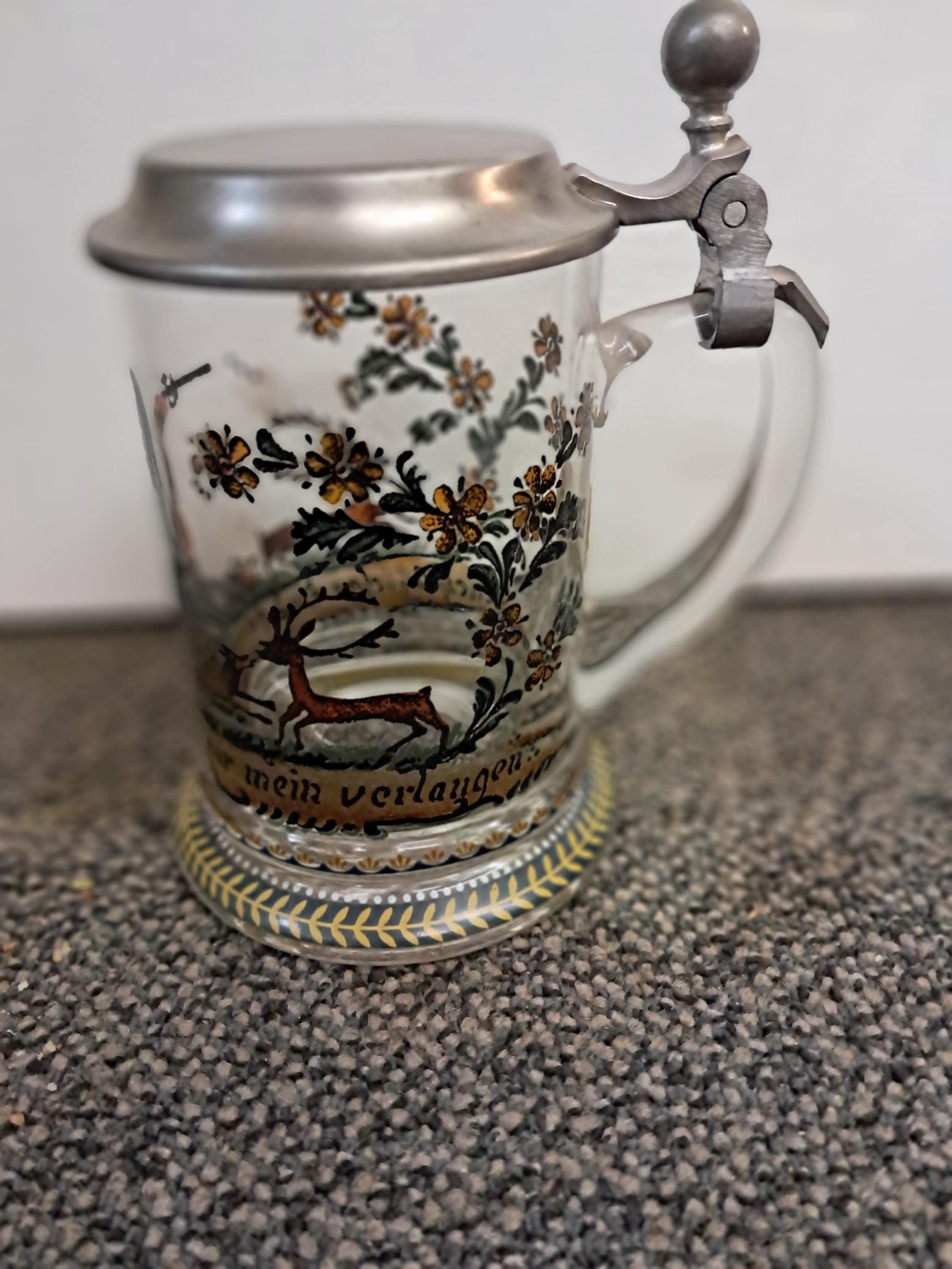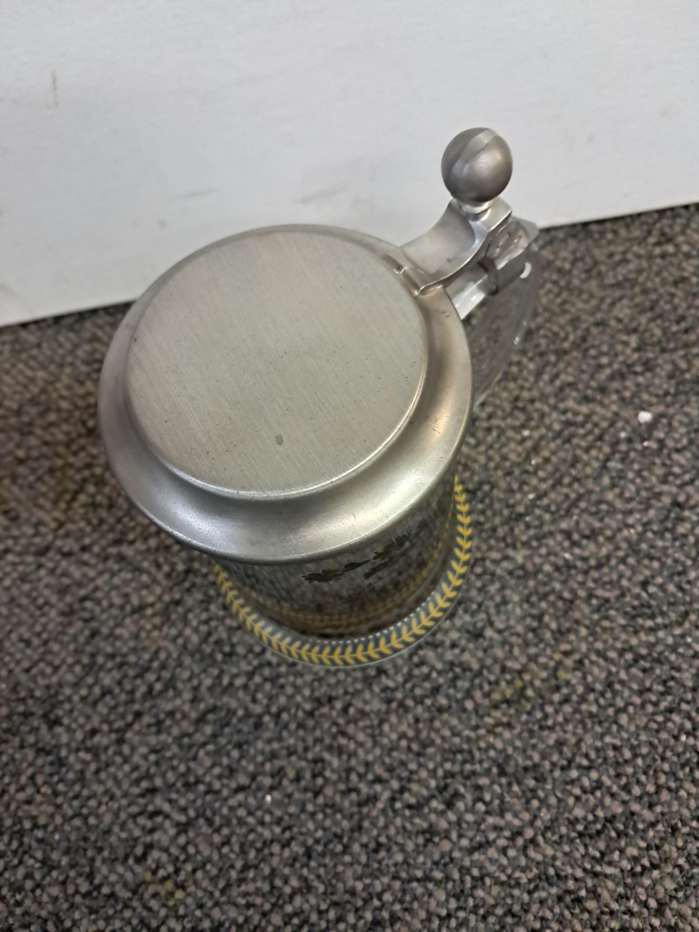 Vintage Glass Beer Stein Mug w Pewter Lid Made in Germany