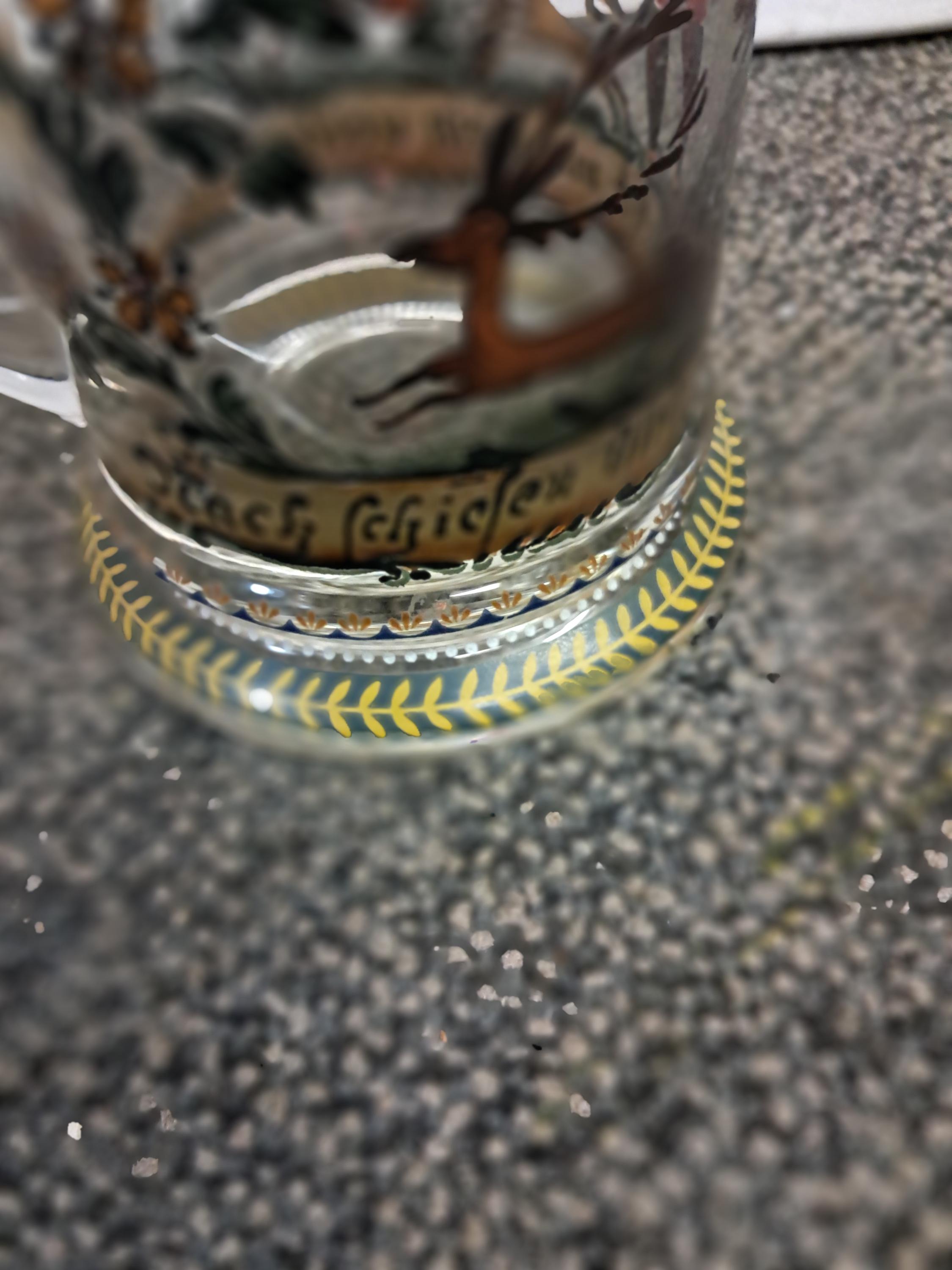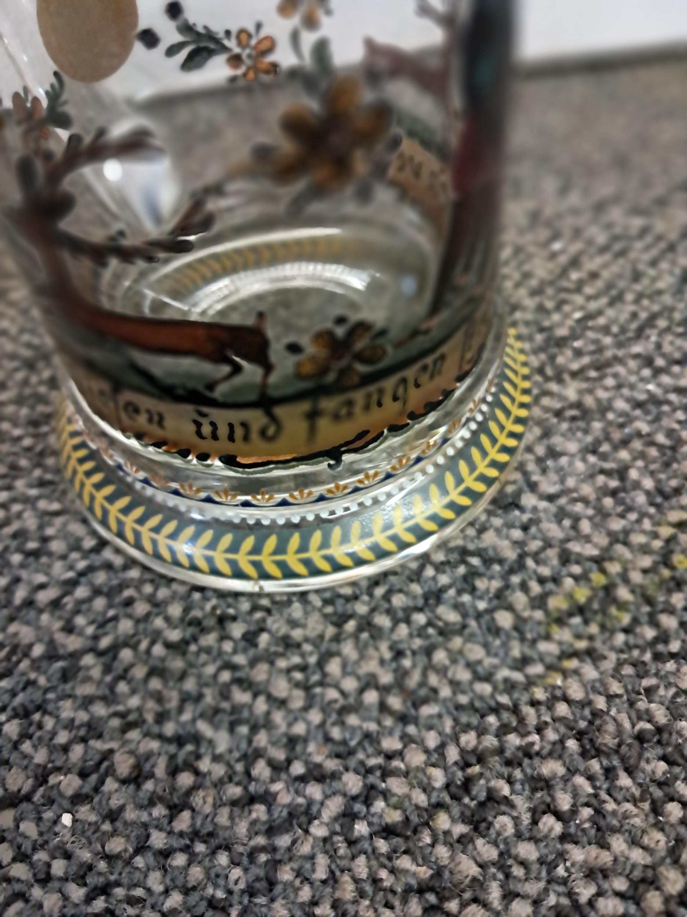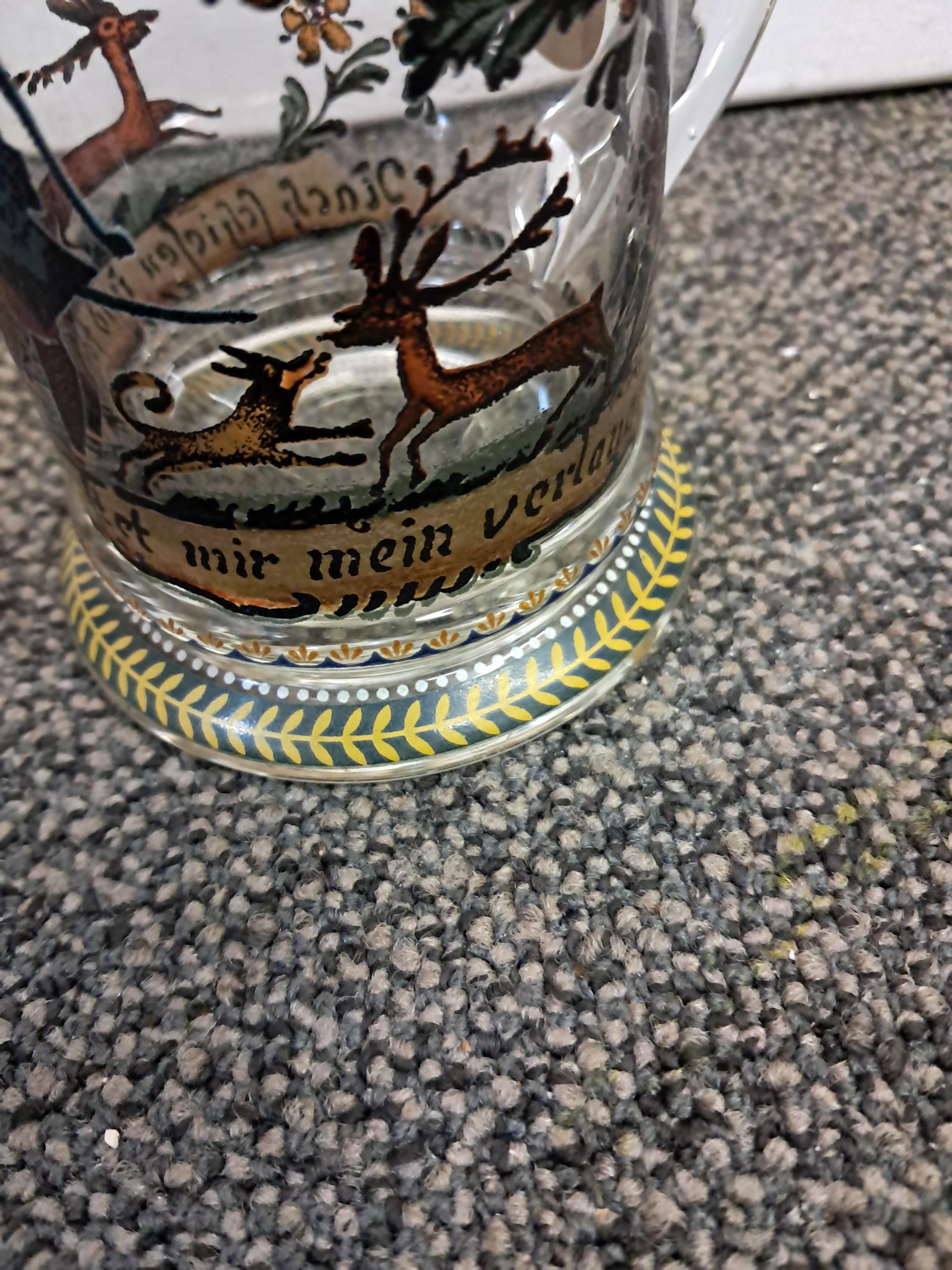 Beautiful stein from a local collector, pictures of a Hunter , two deers and a dog
