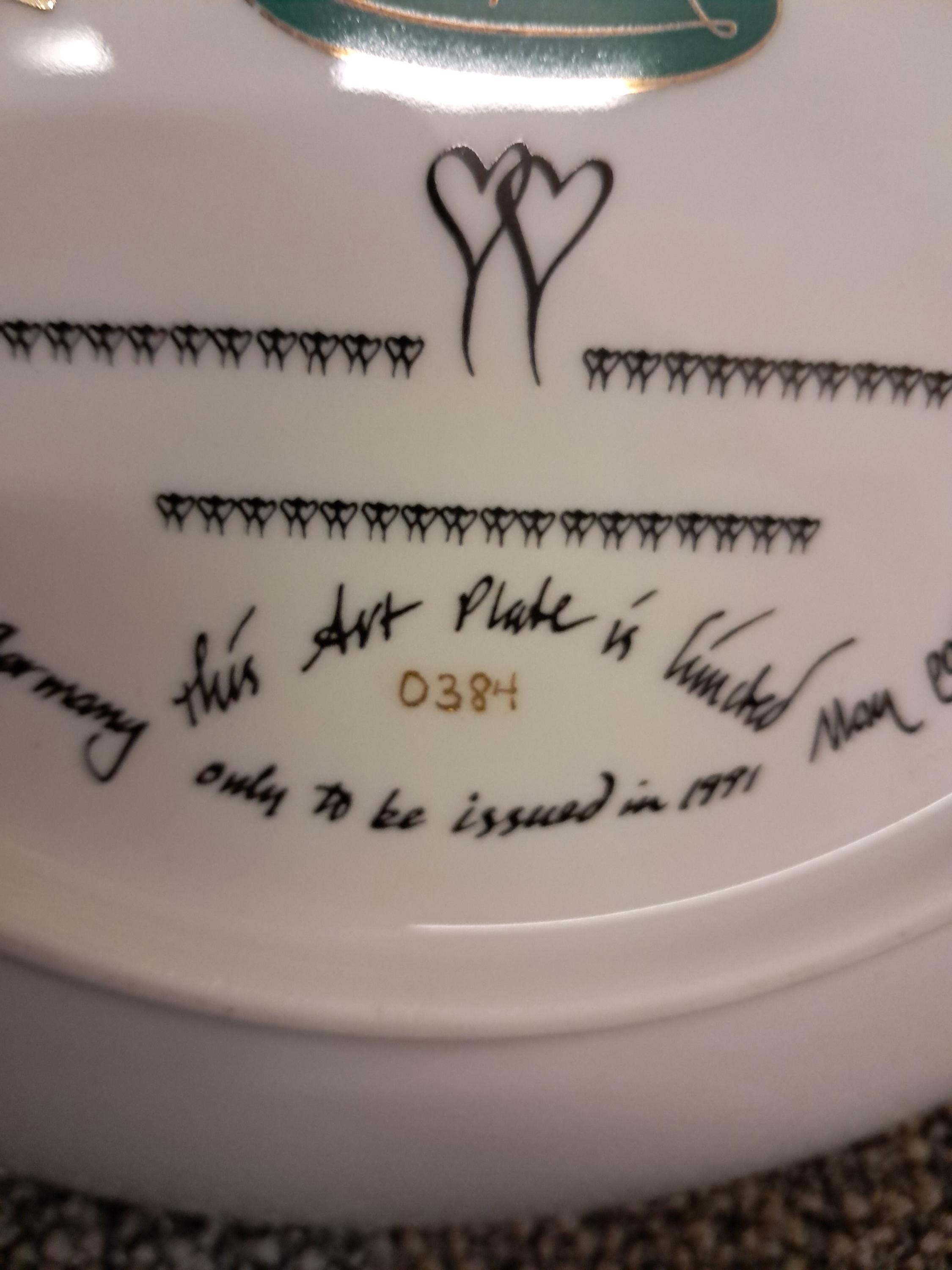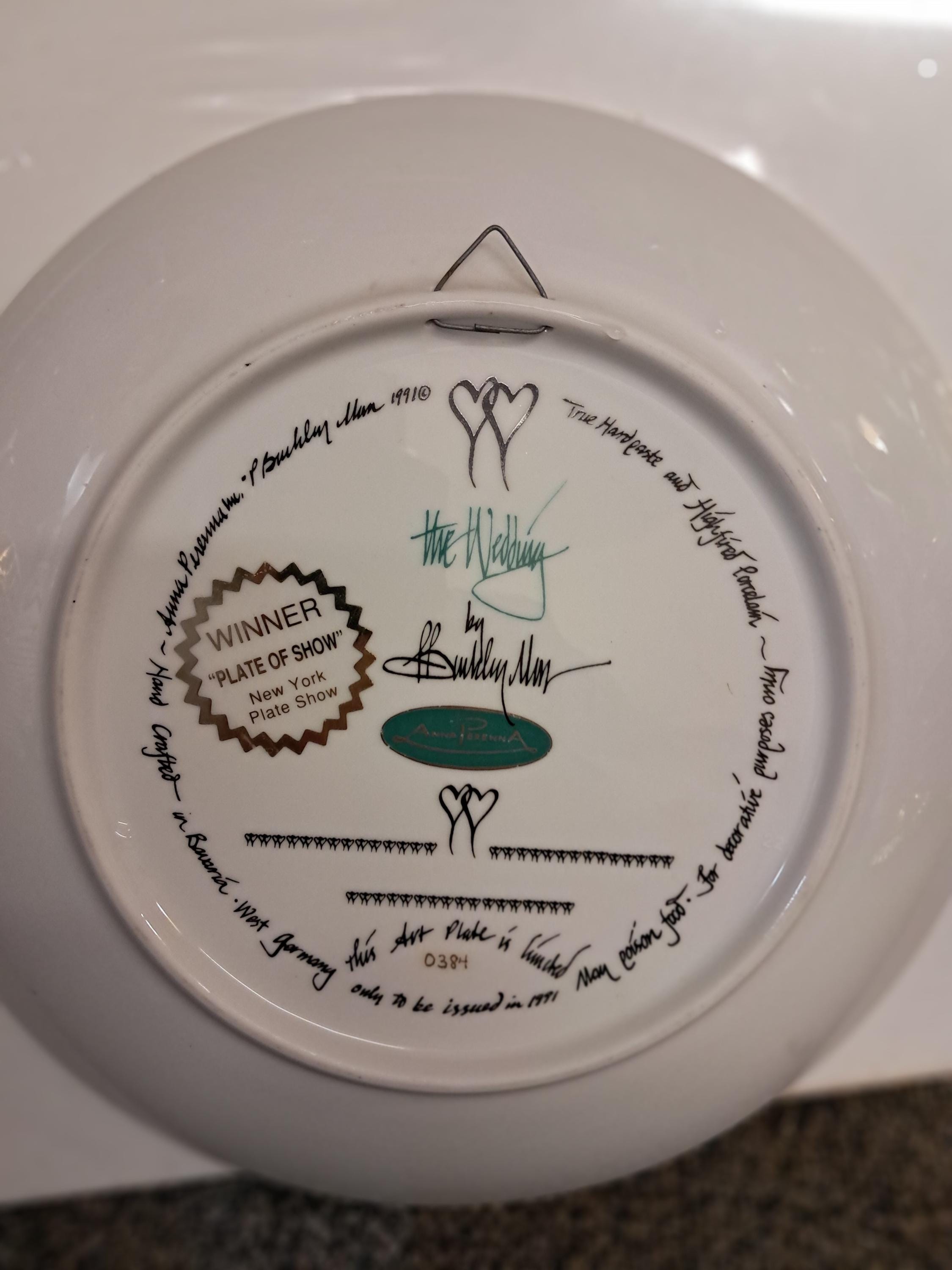 HE WEDDING--LIMITED EDITION -NAMED WINNING PLATE IN NEW YORK PLATE SHOWHAS TAG ON BACK OF WINNERPLATE IS 10 1/4 INCHES ROUNDCOMES IN ORIGINAL BOXCOMES WITH COANO CRACKS CHIPS OR REPAIRS