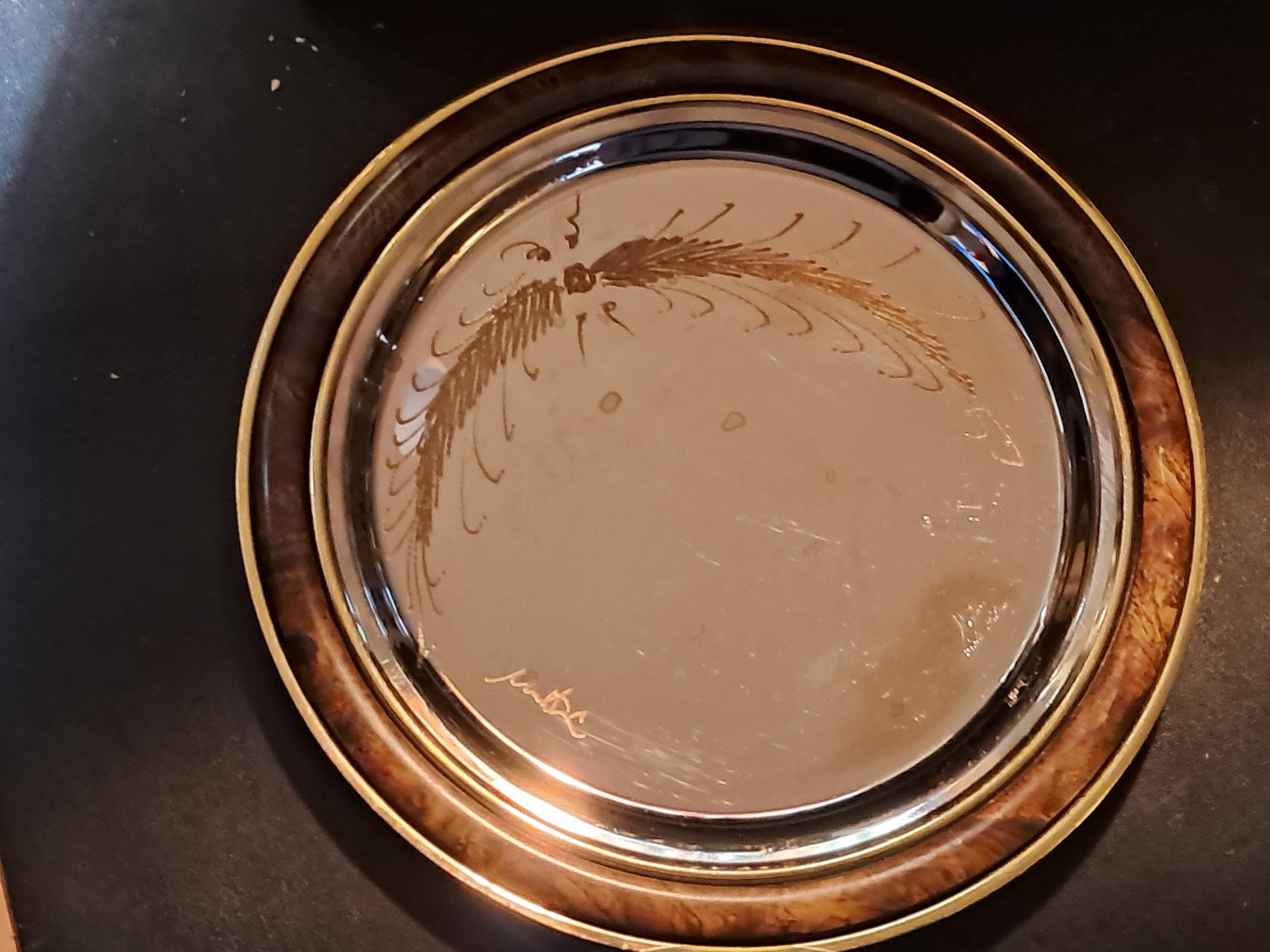 Signed Gold & Silver plateSigned by Artist : MartinEngraved: Martin, Gold , SilverWheat Engraving Design8.5" in diameter x .5" deepExcellent Condition with no damages