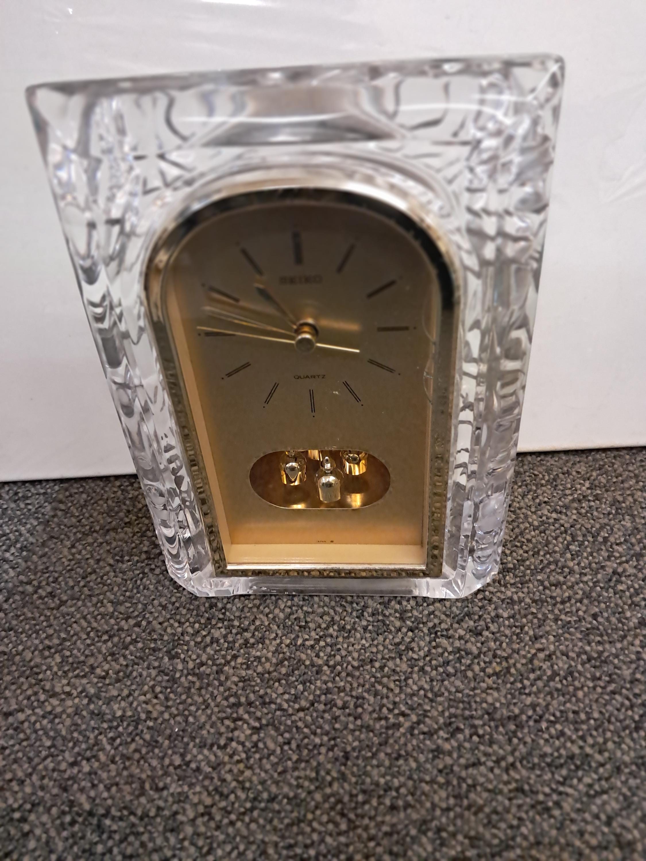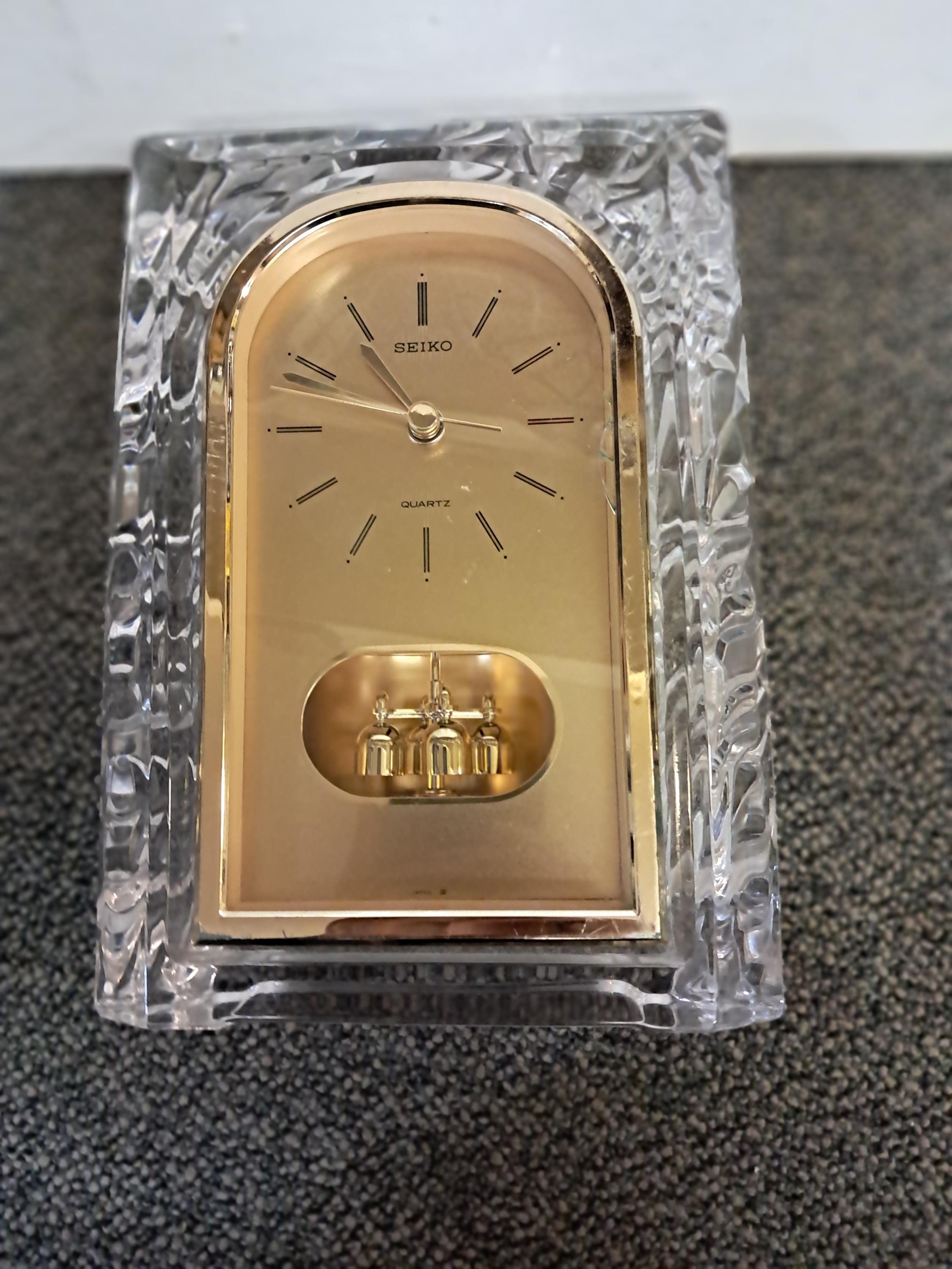 VTG SEIKO CUT GLASS QUARTZ LEAD CRYSTAL DESK CLOCK W PENDULUM