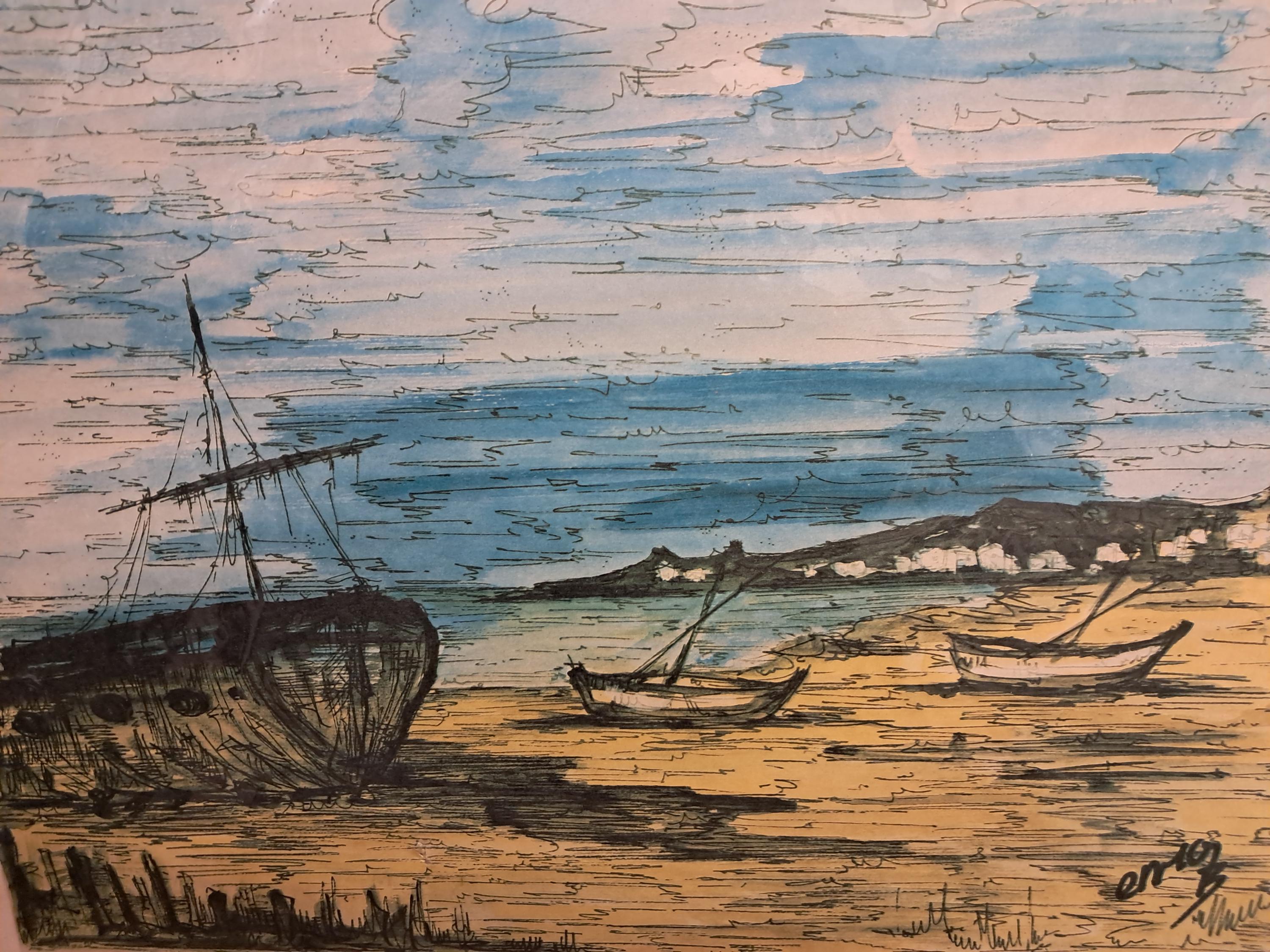 ENRIC – BOATS IN THE SAND – WATERCOLOUR