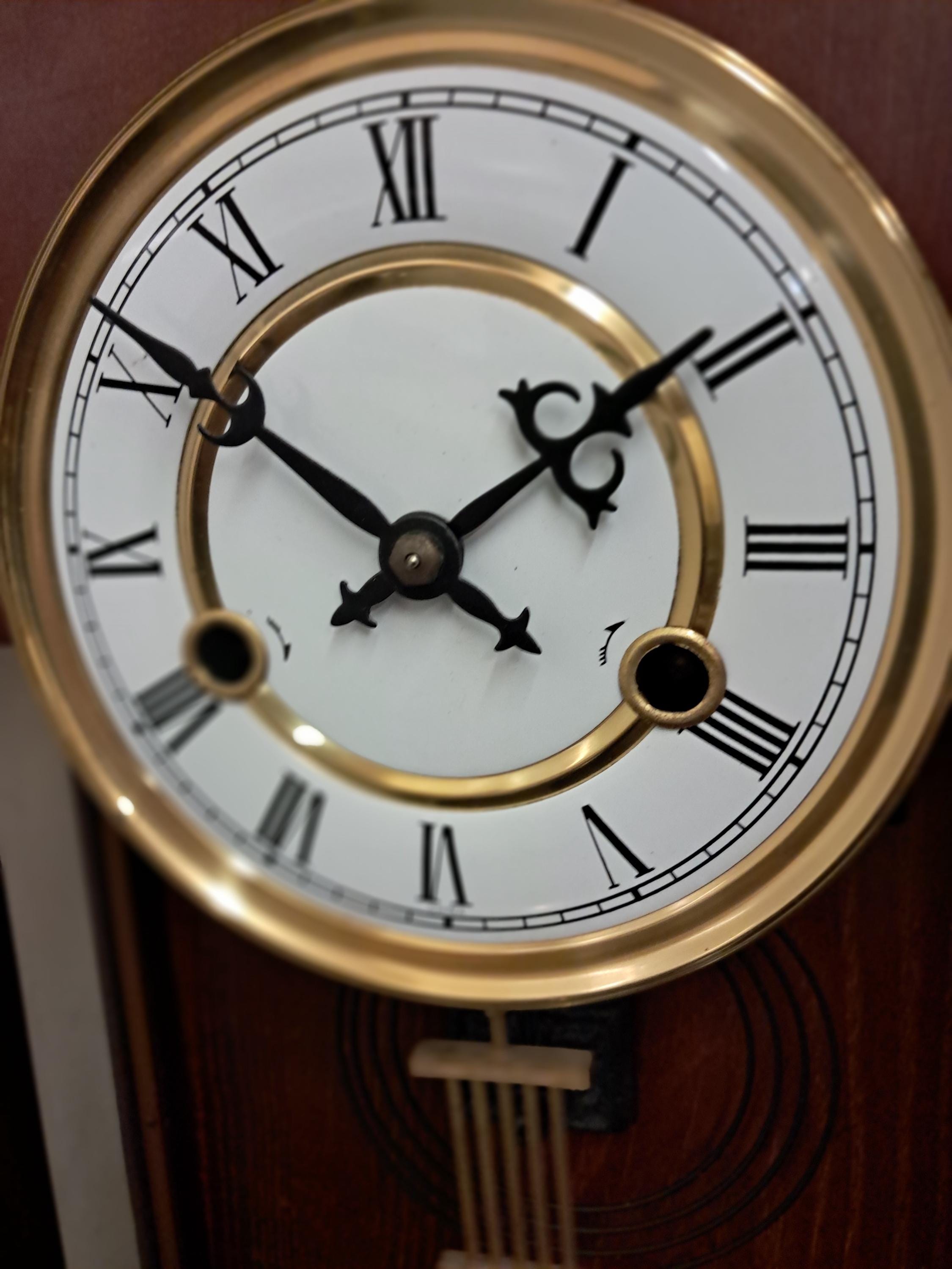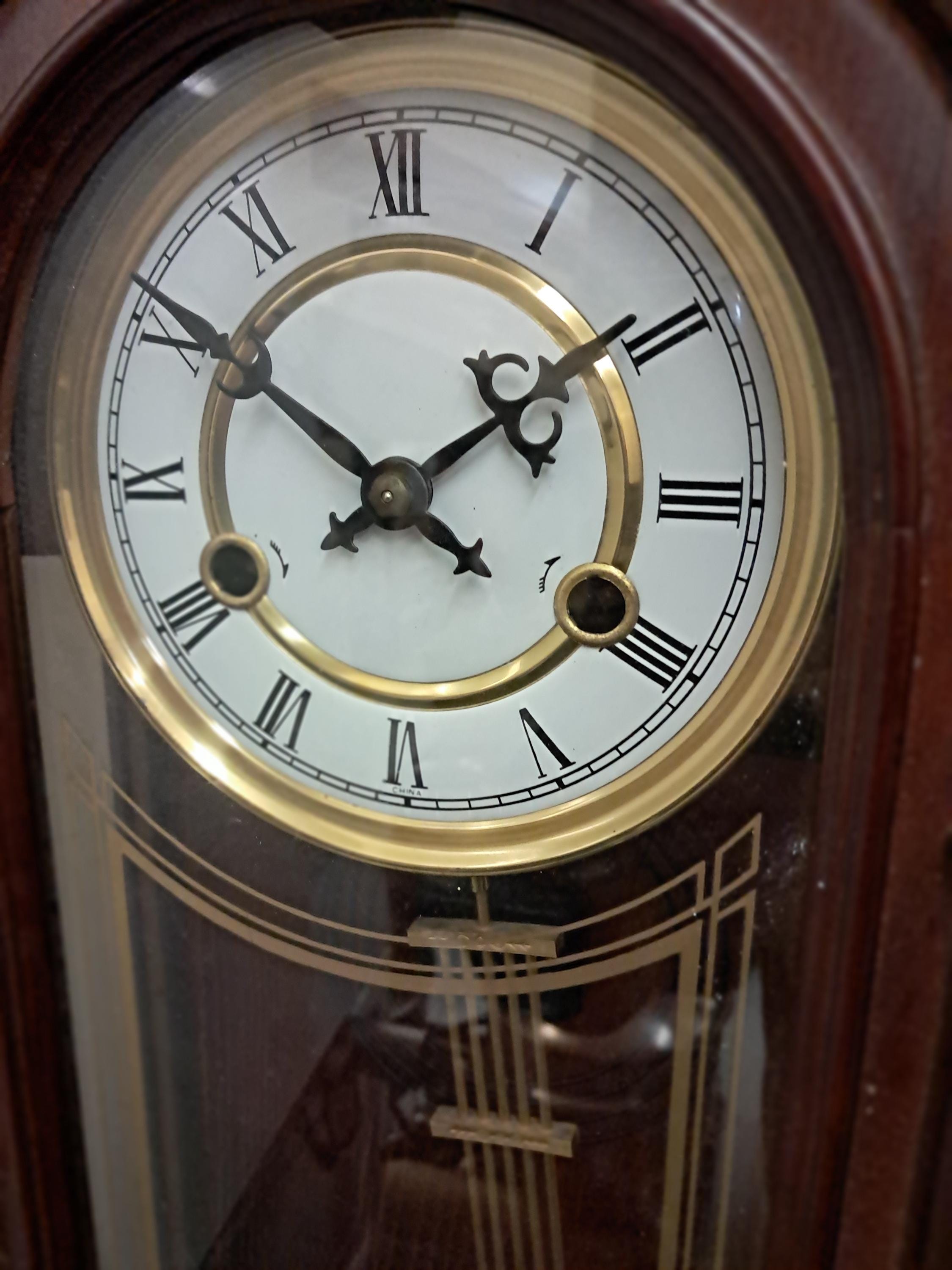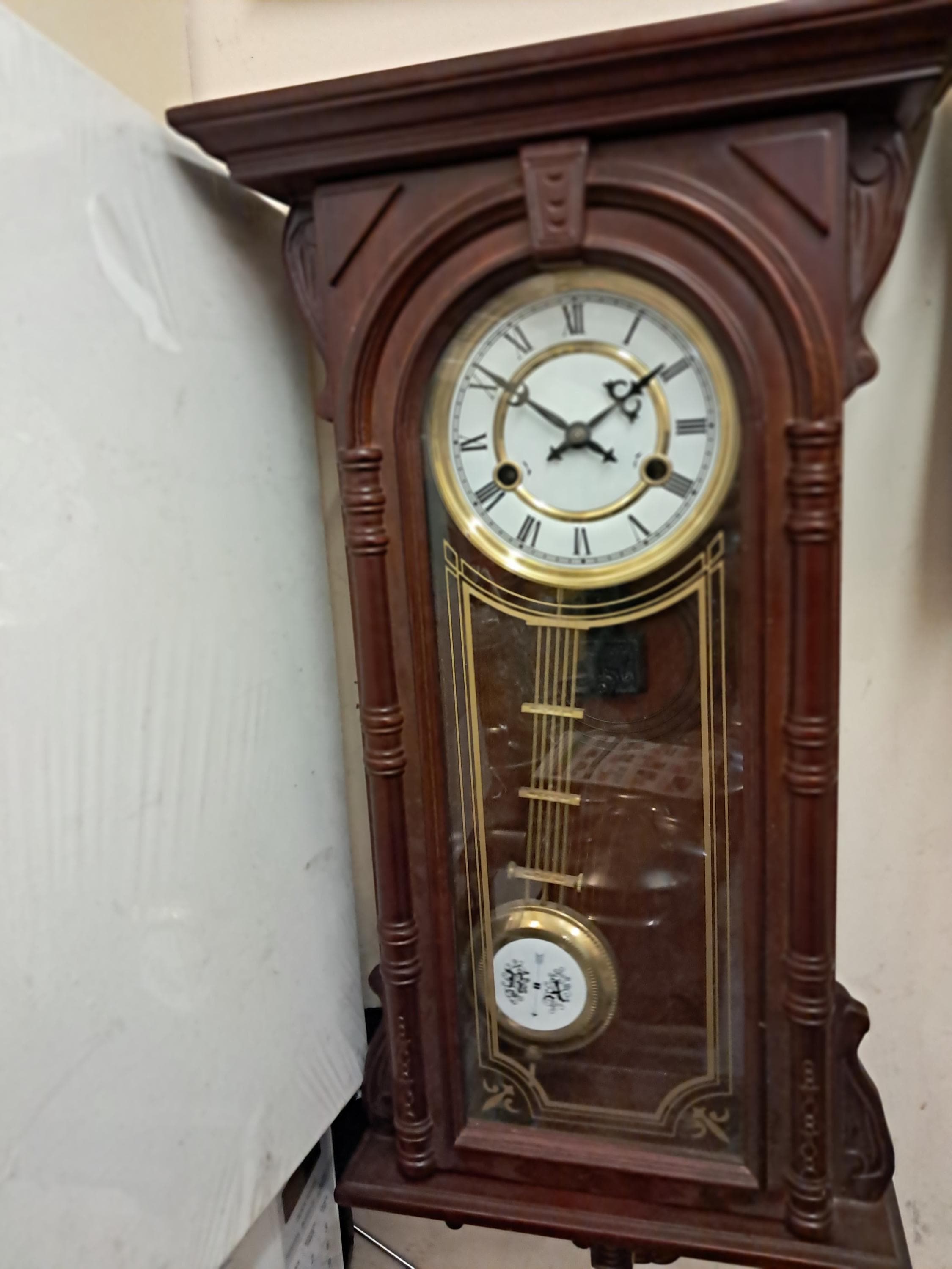 Vintage Mechanical Clock30 days clockComes with one keyMeasurment:27 " tall x 13" wide x 6" deepExcellent Condition with no defectsWORKS GREATName :Unknown
