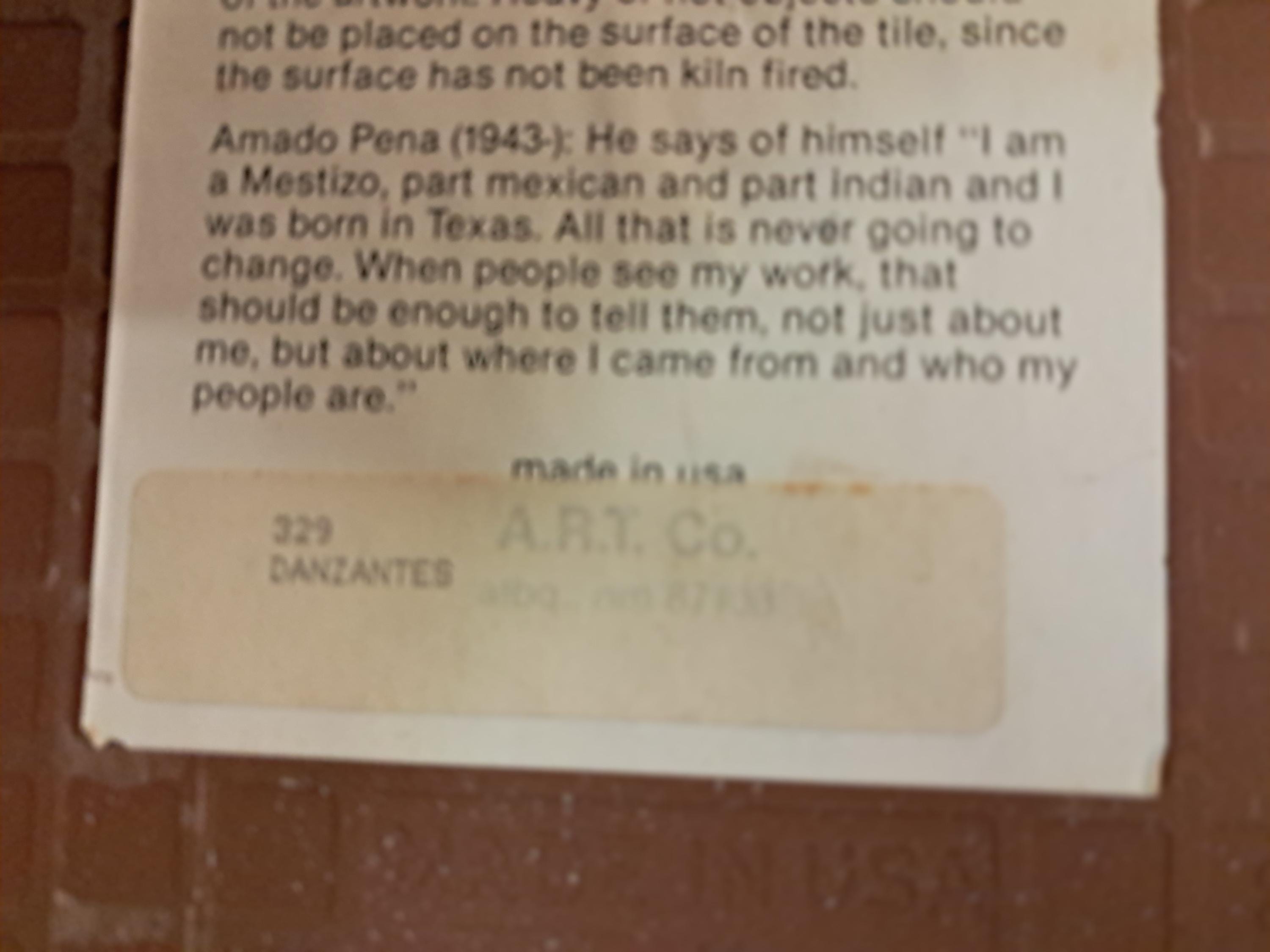 Amado Pena ( 1943) Decorative Ceramic Tile Art Work