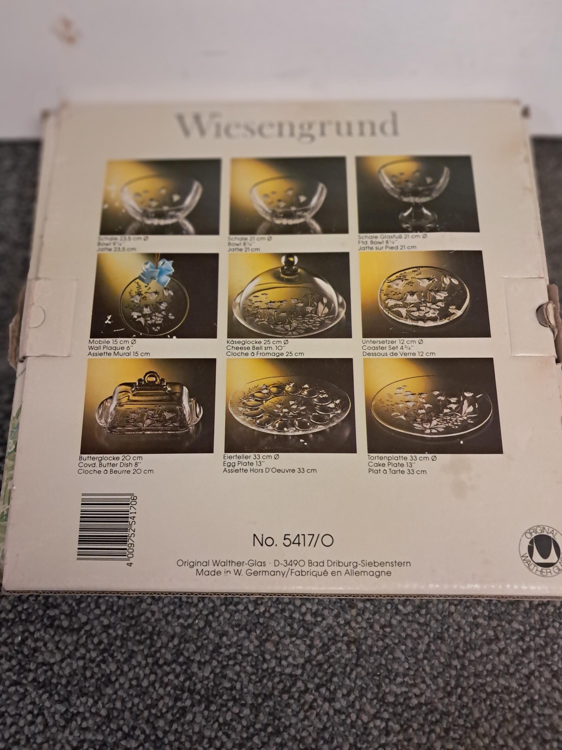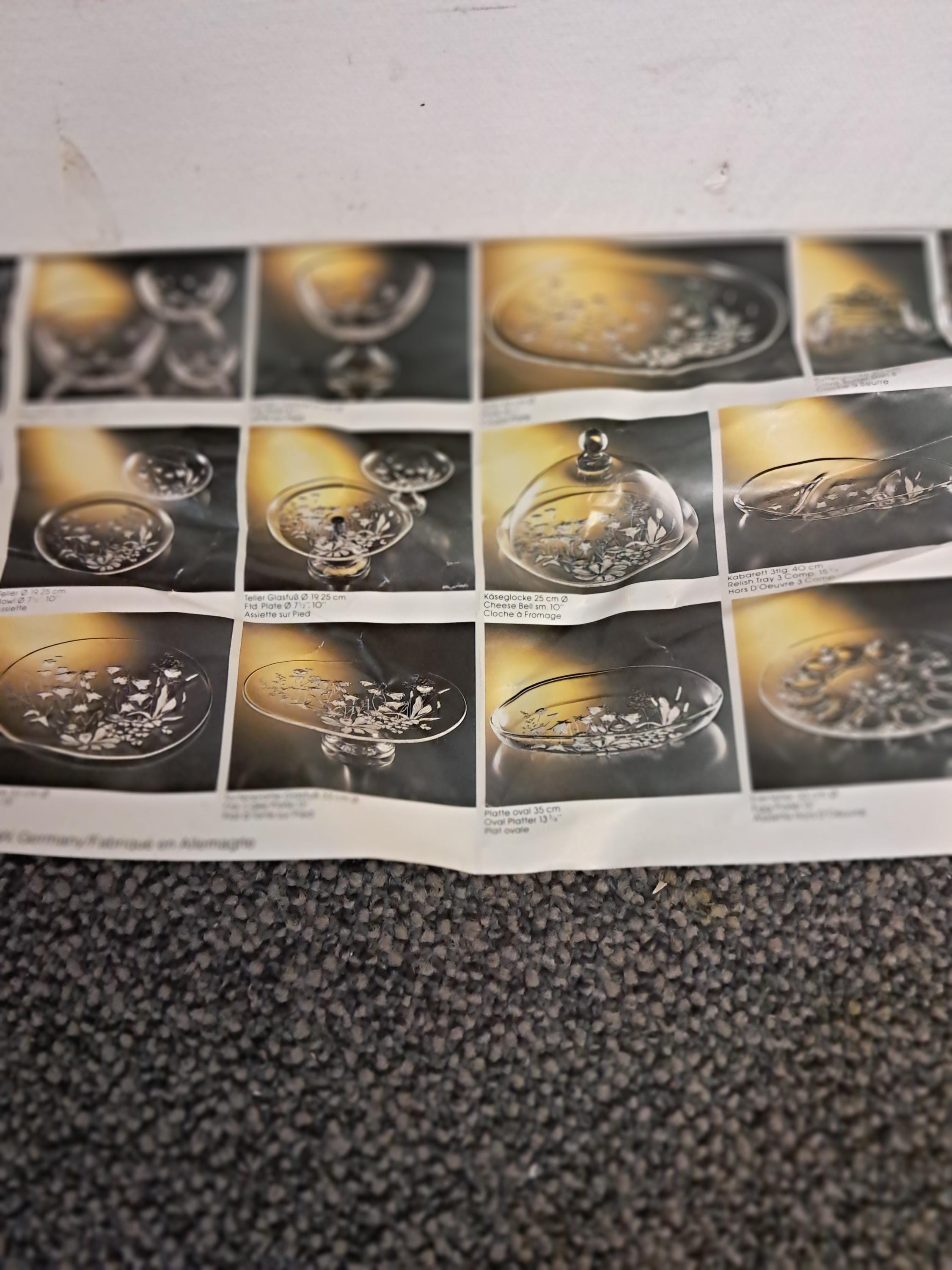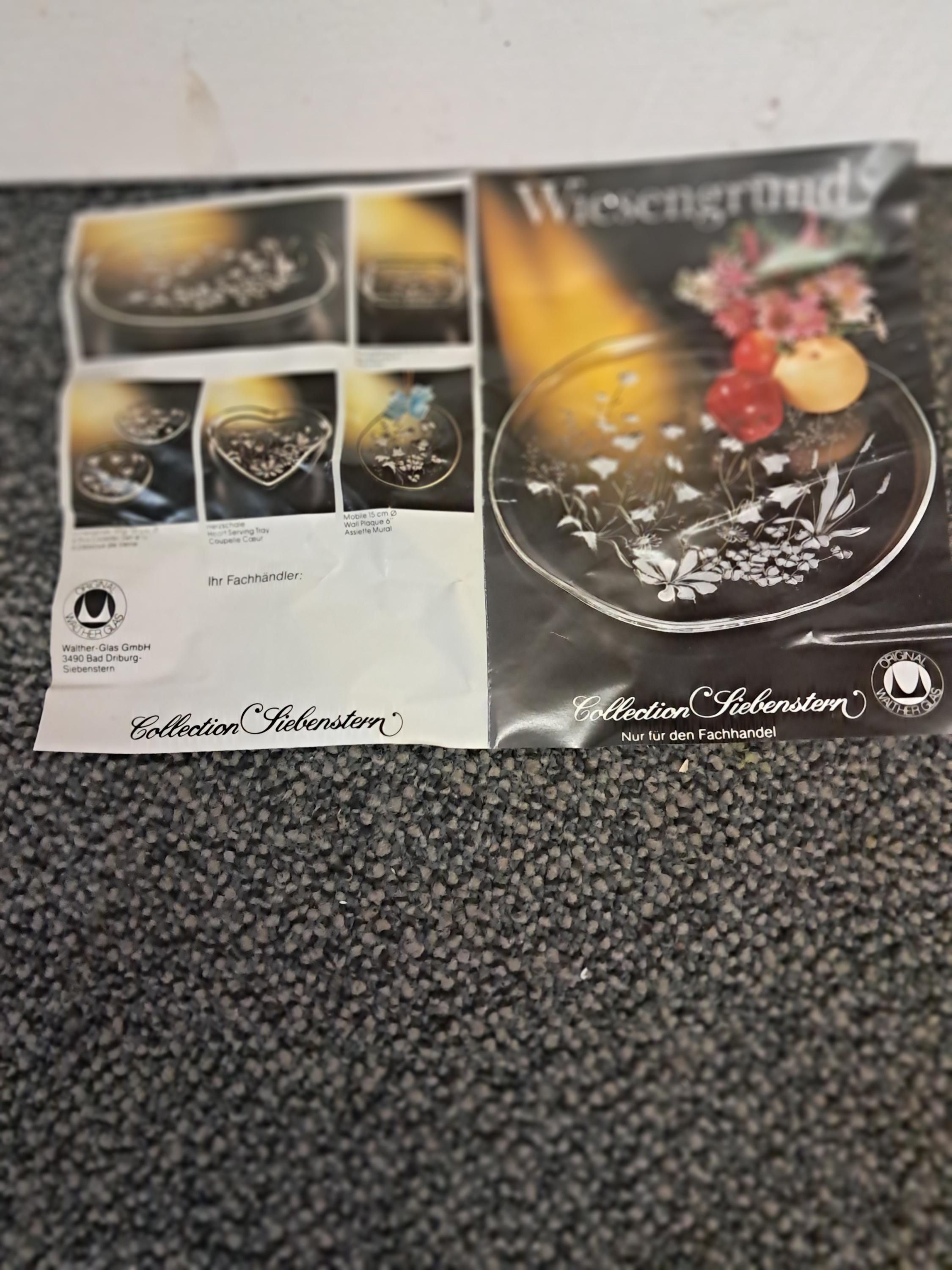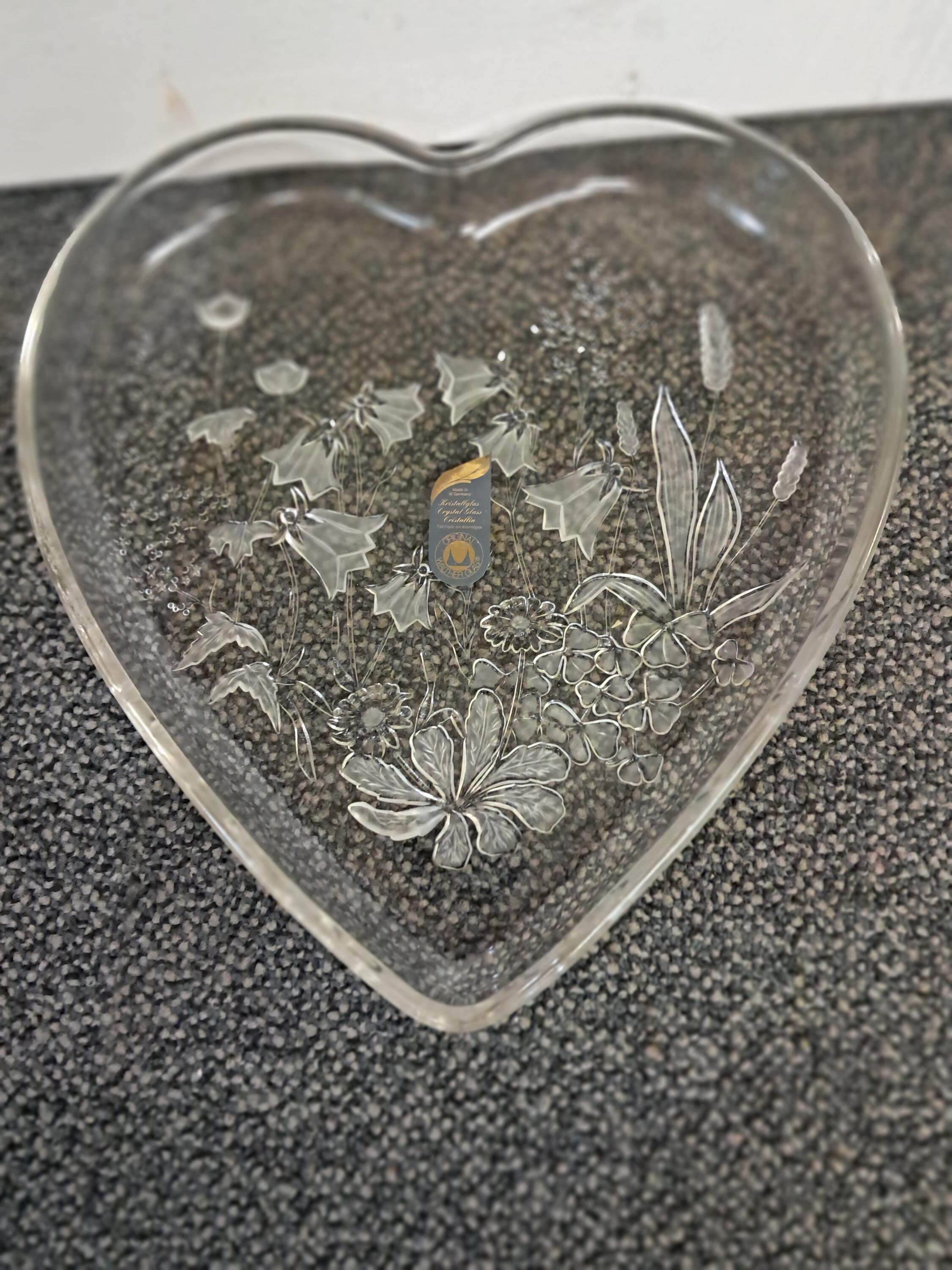 Vintage Wiesengrund Clear Glass Heart Shape and Frosted Embossed Flowers Candy Dish