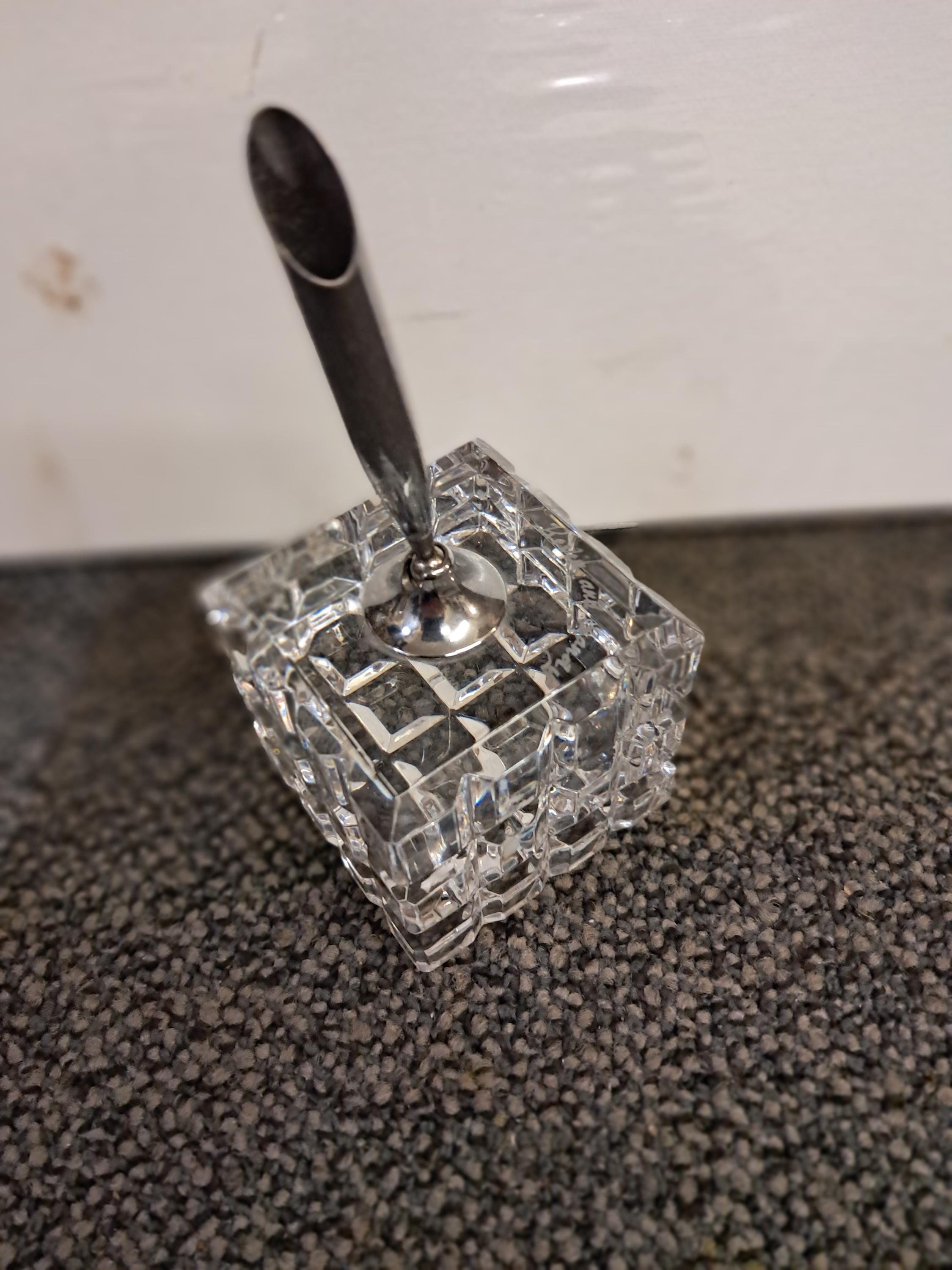 Vintage 60s, Genuine Lead Crystal, Cube Shape, Paper weight , Pen Holder.