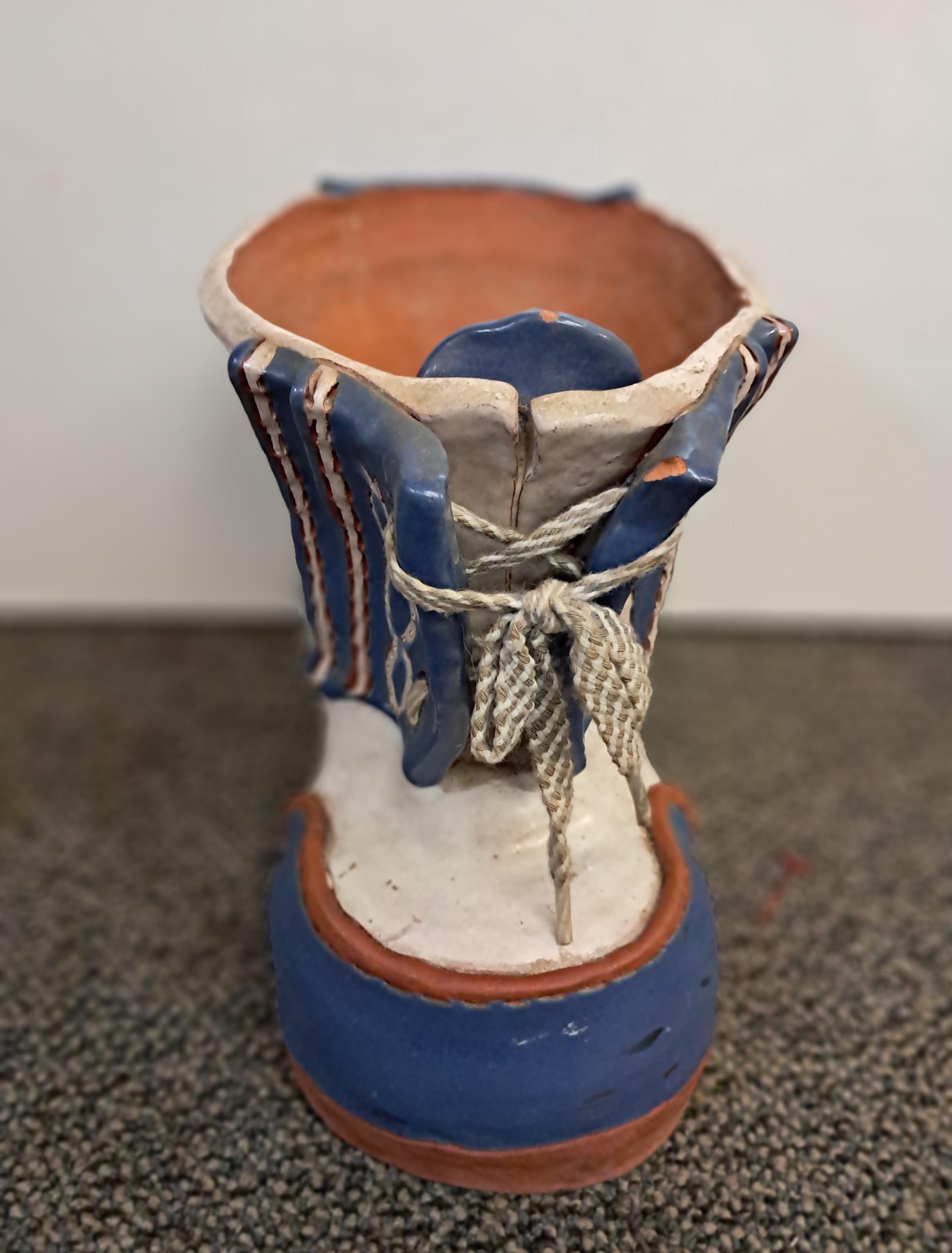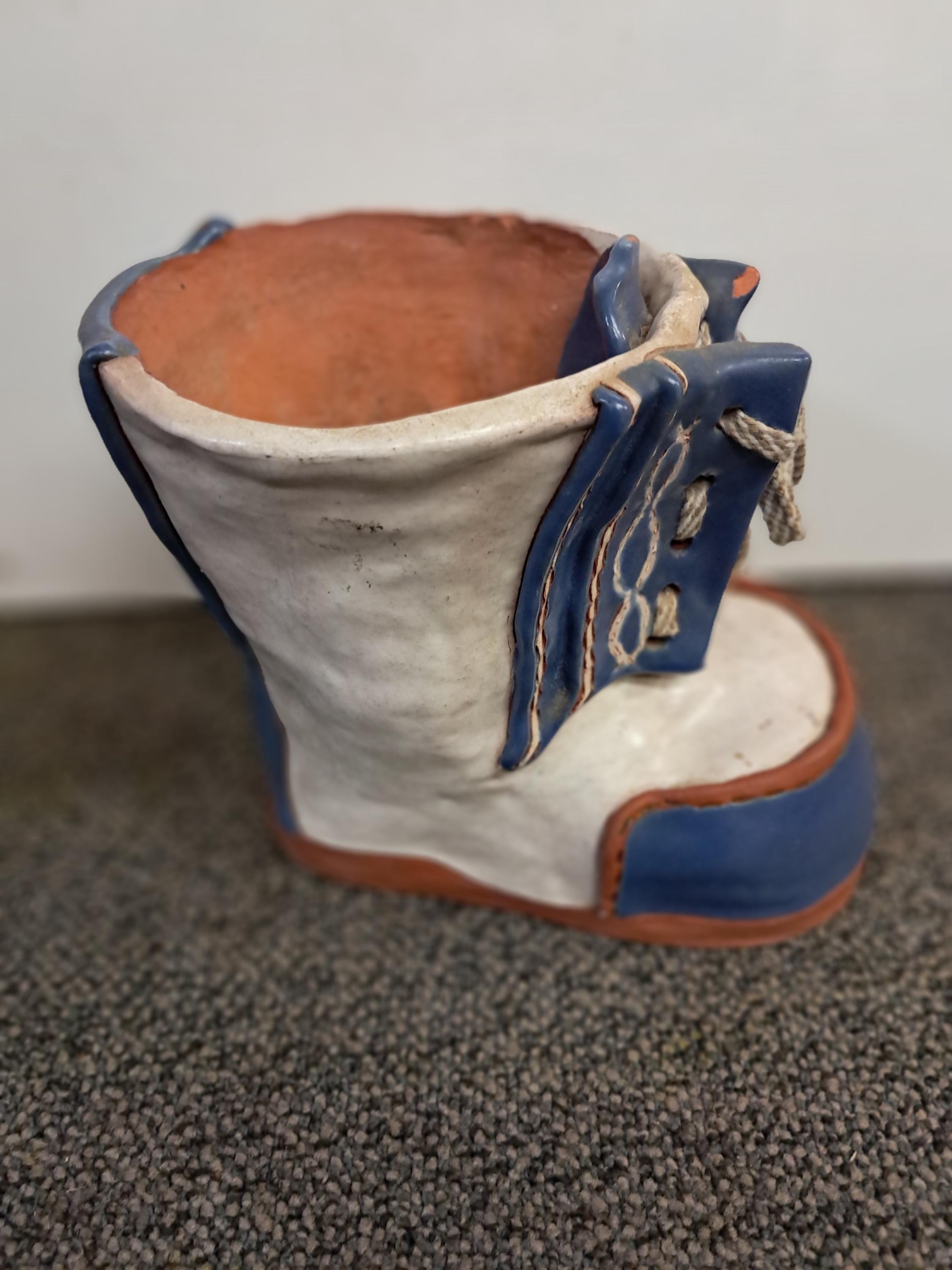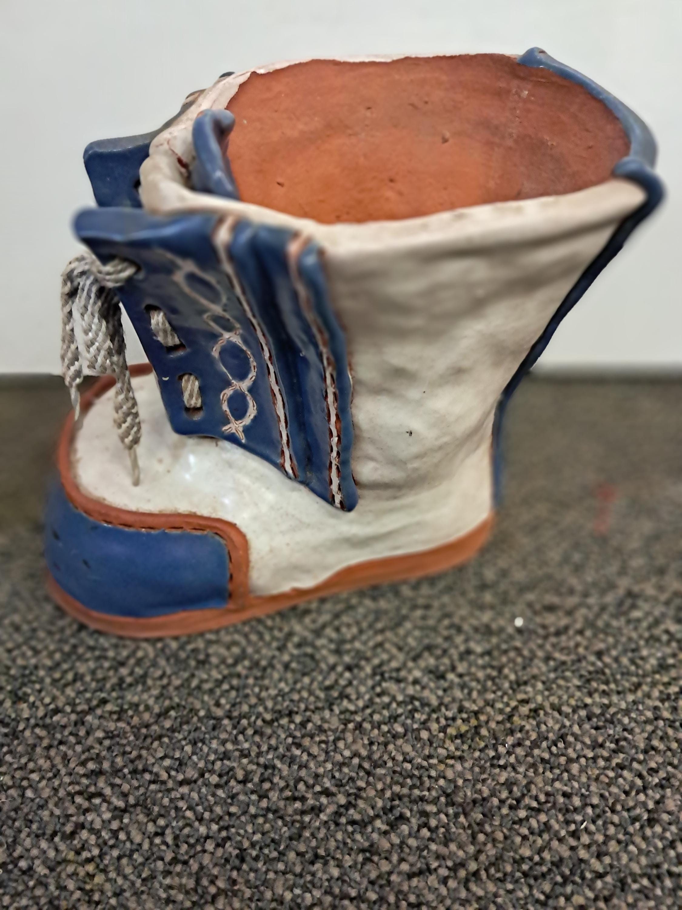 Vintage Clat Pottery Boot Planter,by PHALE, 1977 Excellent Condition Measurments: 6.25" tall x 7.00 " wide x 4.75" deep Weight : 4 lbs Stamped, signed and dated by Artist under Handmade Hand Crafted and Painted