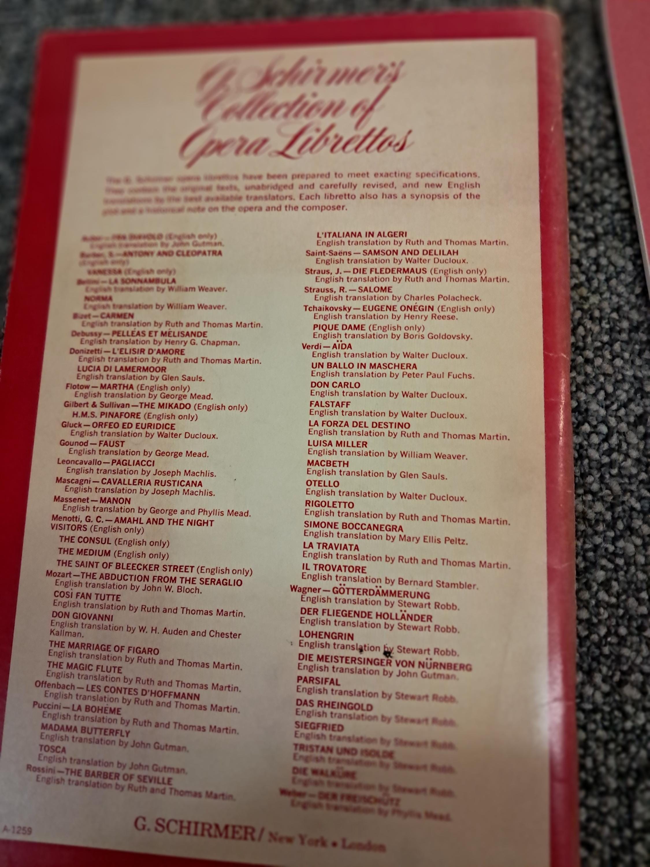 G. Schirmer's Collection of Opera Librettos