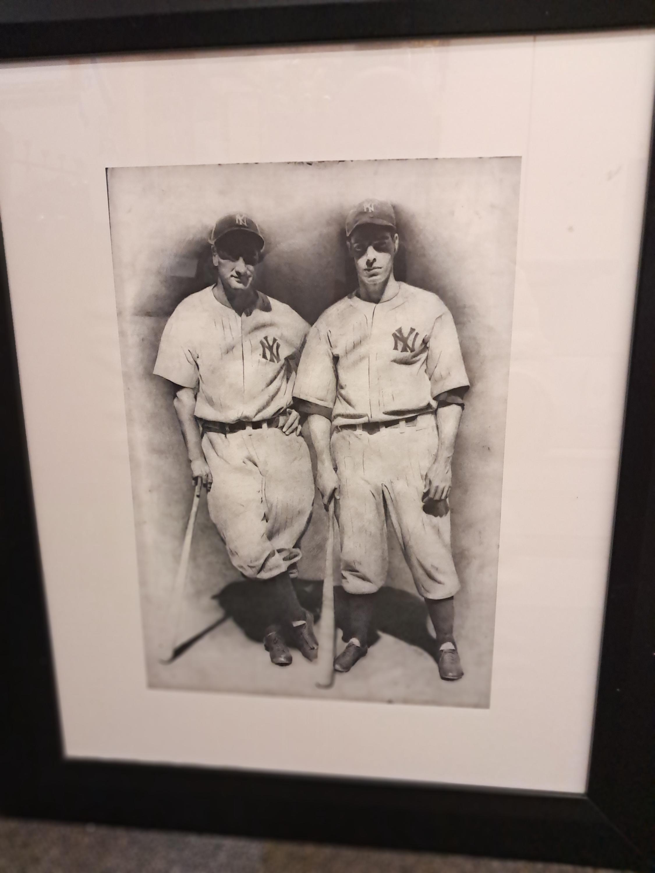 Iconic Baseball Art Joe Dimaio & Lou Gehrig GIFT Allen Friedlander Framed Vintage Black and White Large signed 1927 Yankees