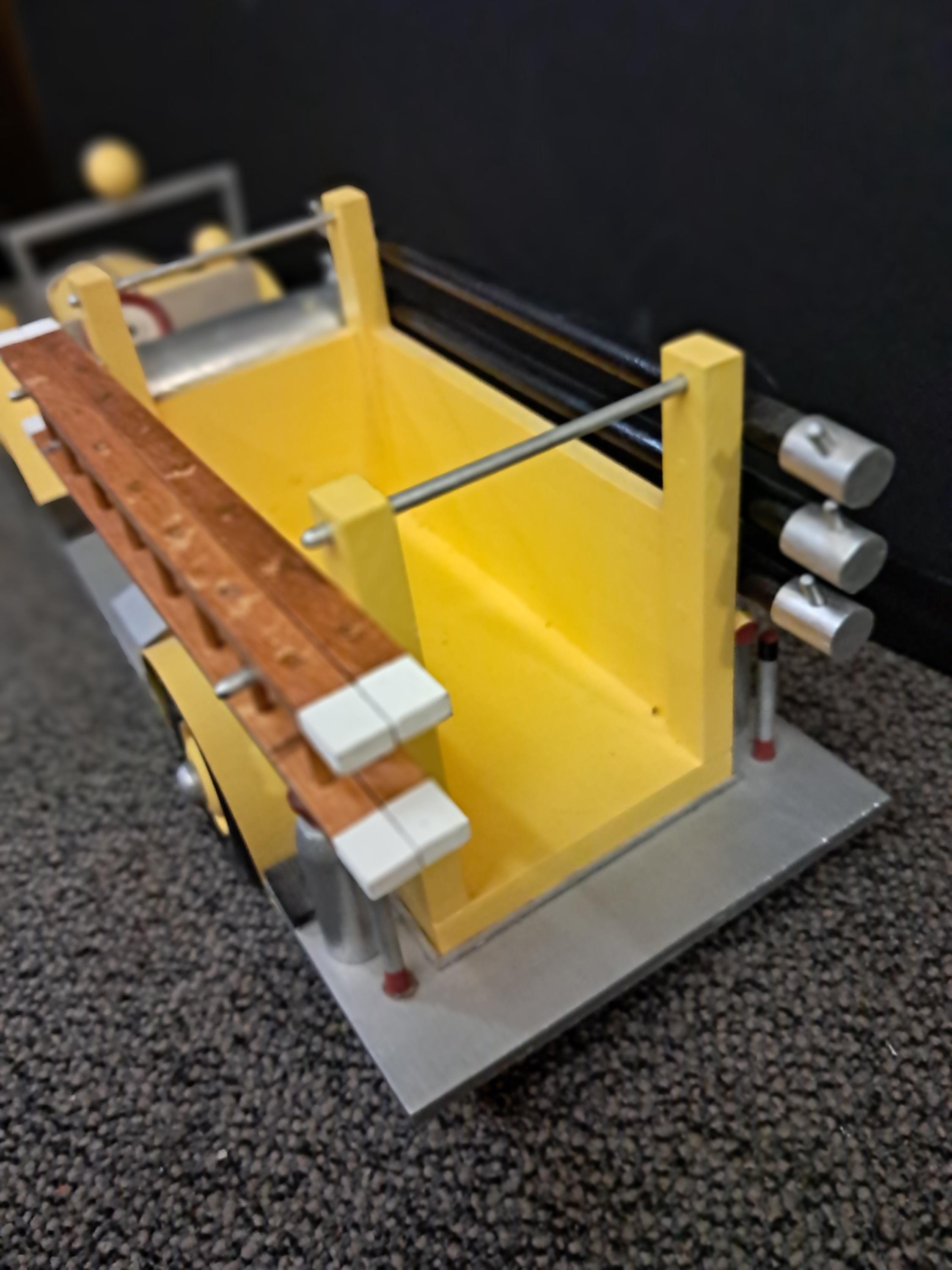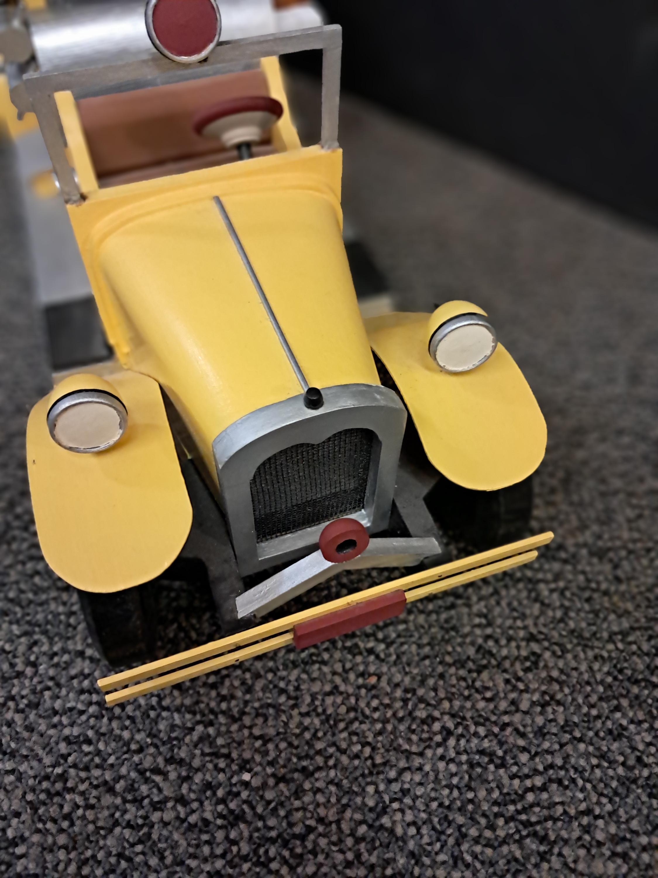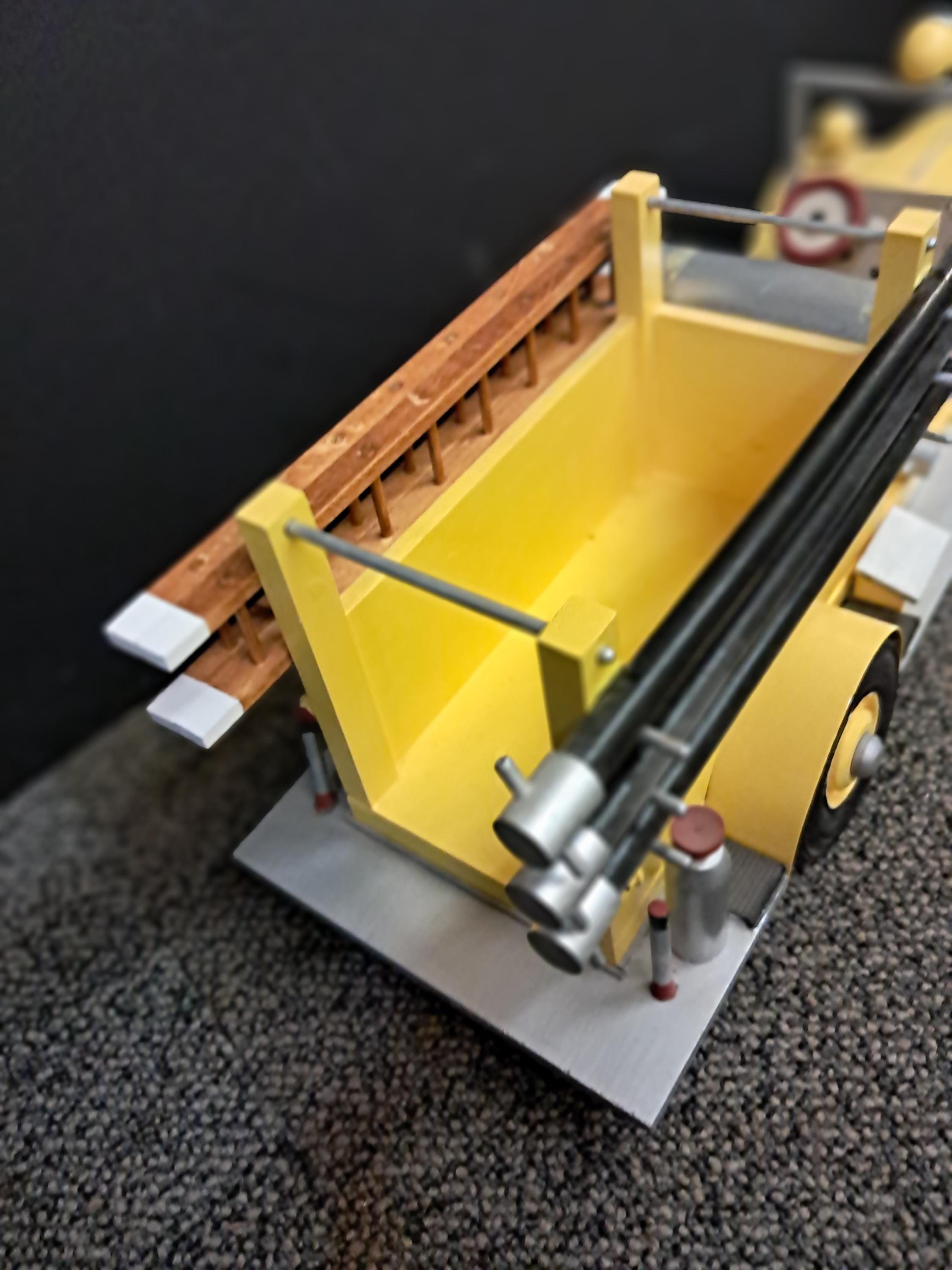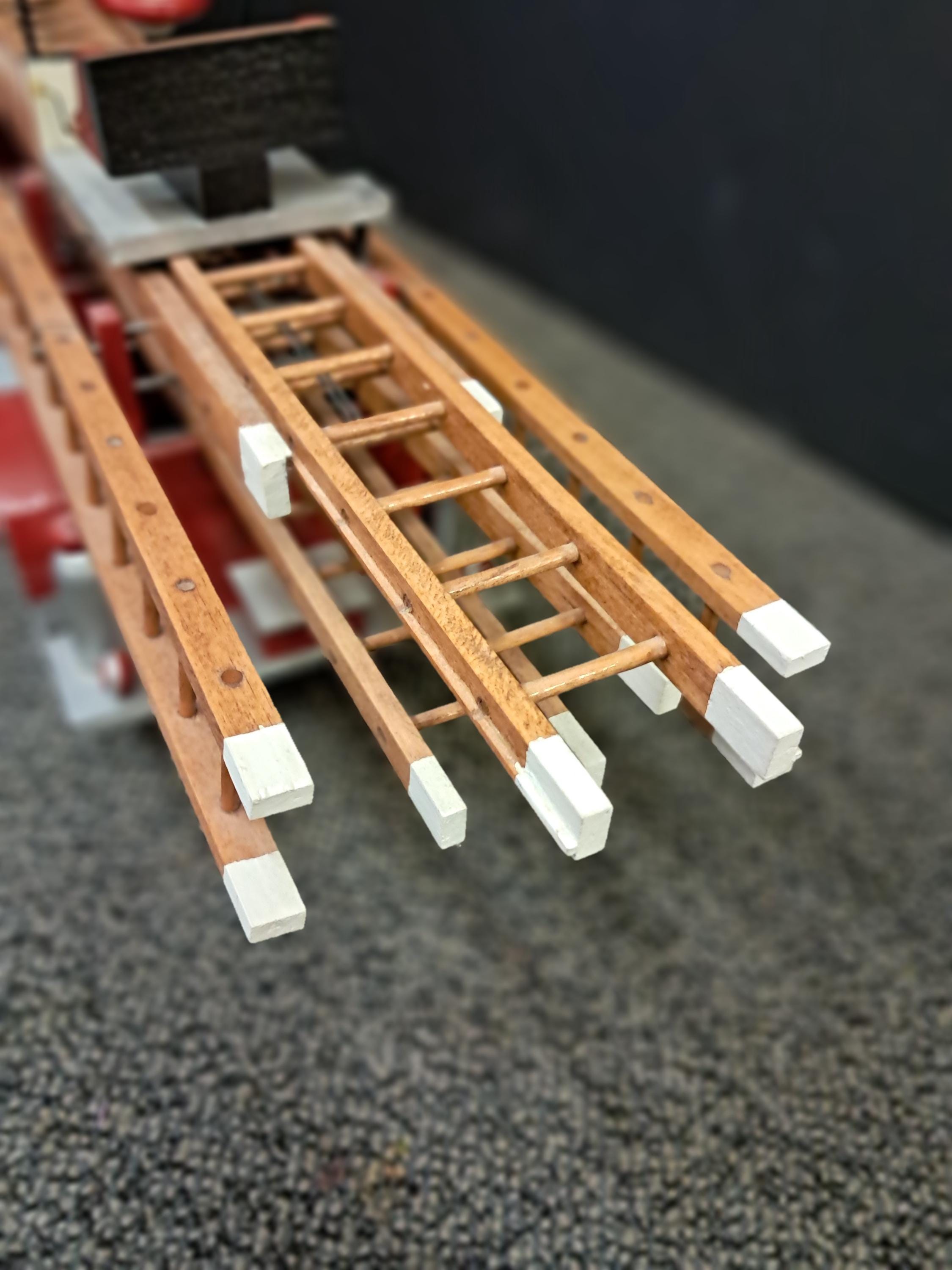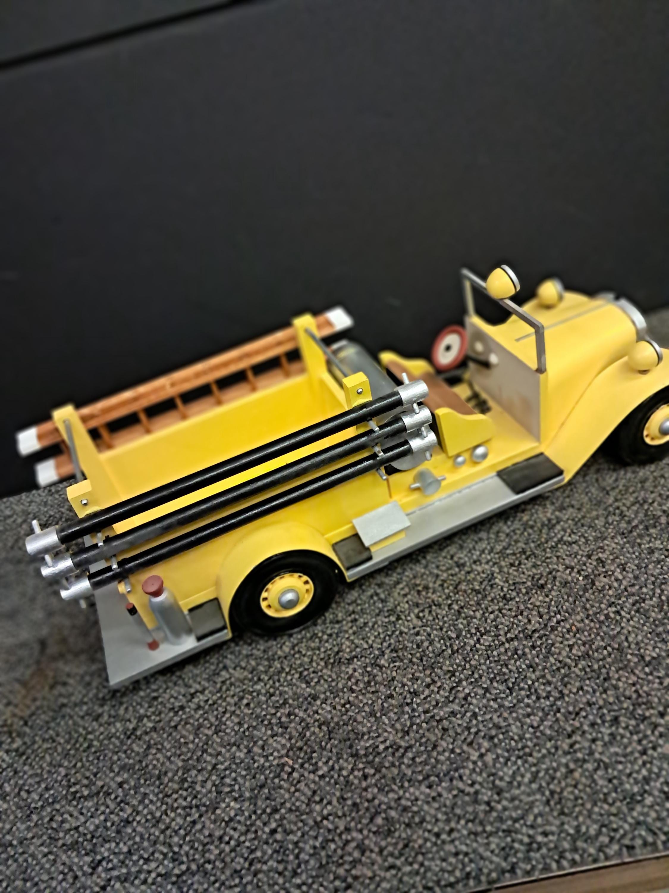 Handmade impressive detailed workmanship with wood and metal body details, two wood side ladders, and small water tank.
