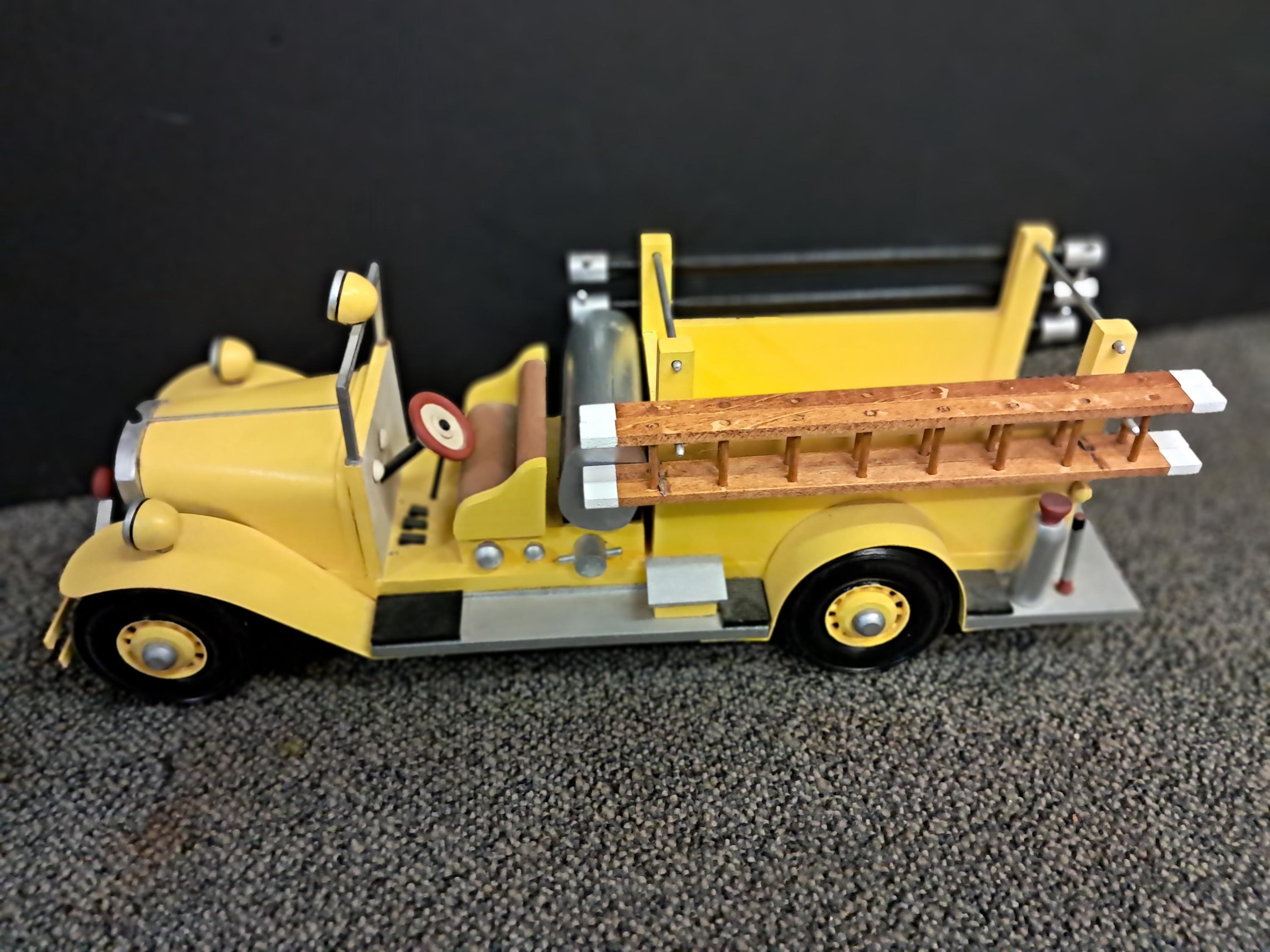 Large Vintage Folk Art Painted Wood Ladder Fire Truck.
