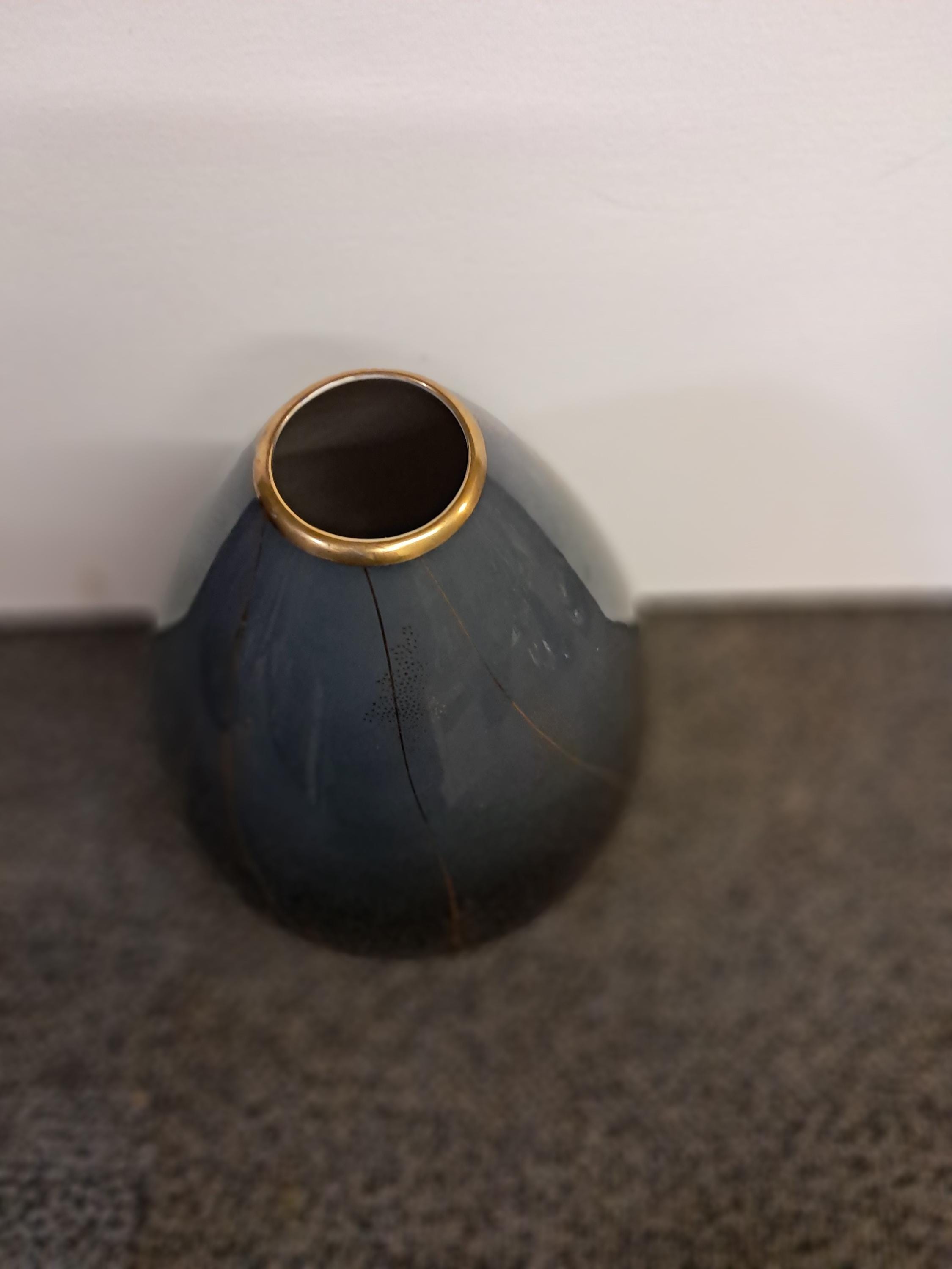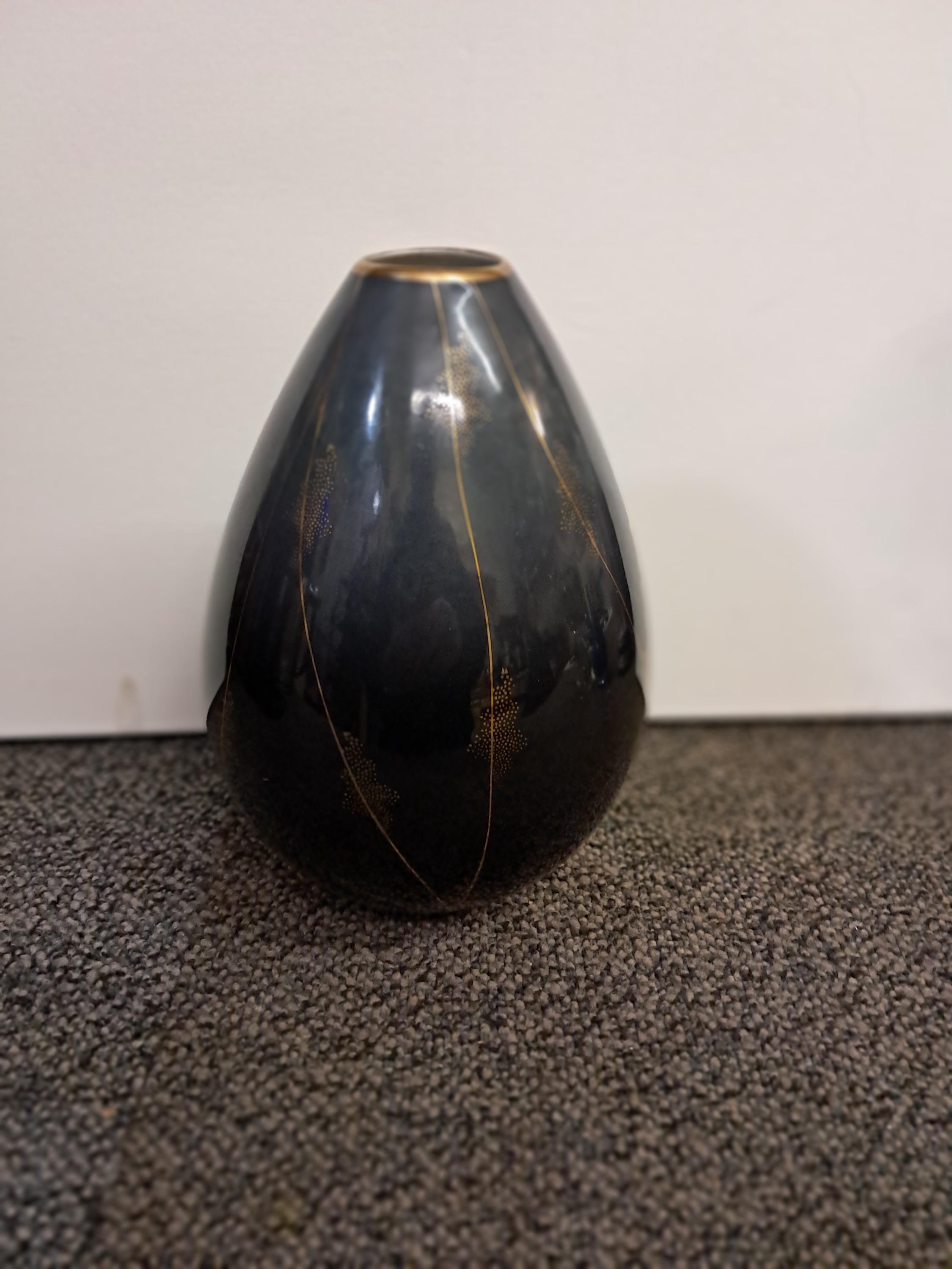 Vintage Bavaria Vase Johann Seltmann Vohenstrauß Cobalt Blue Gold Trim Germany