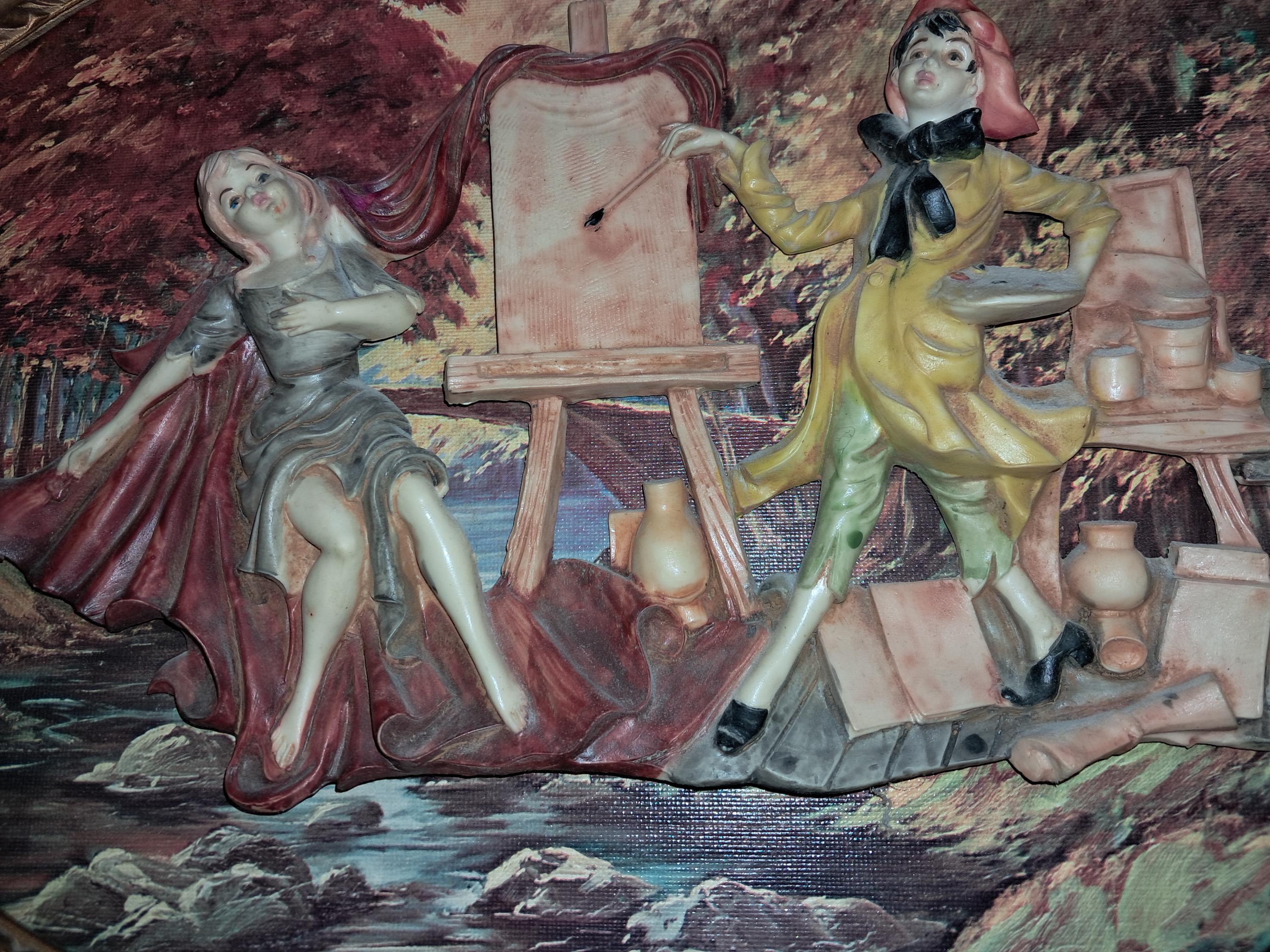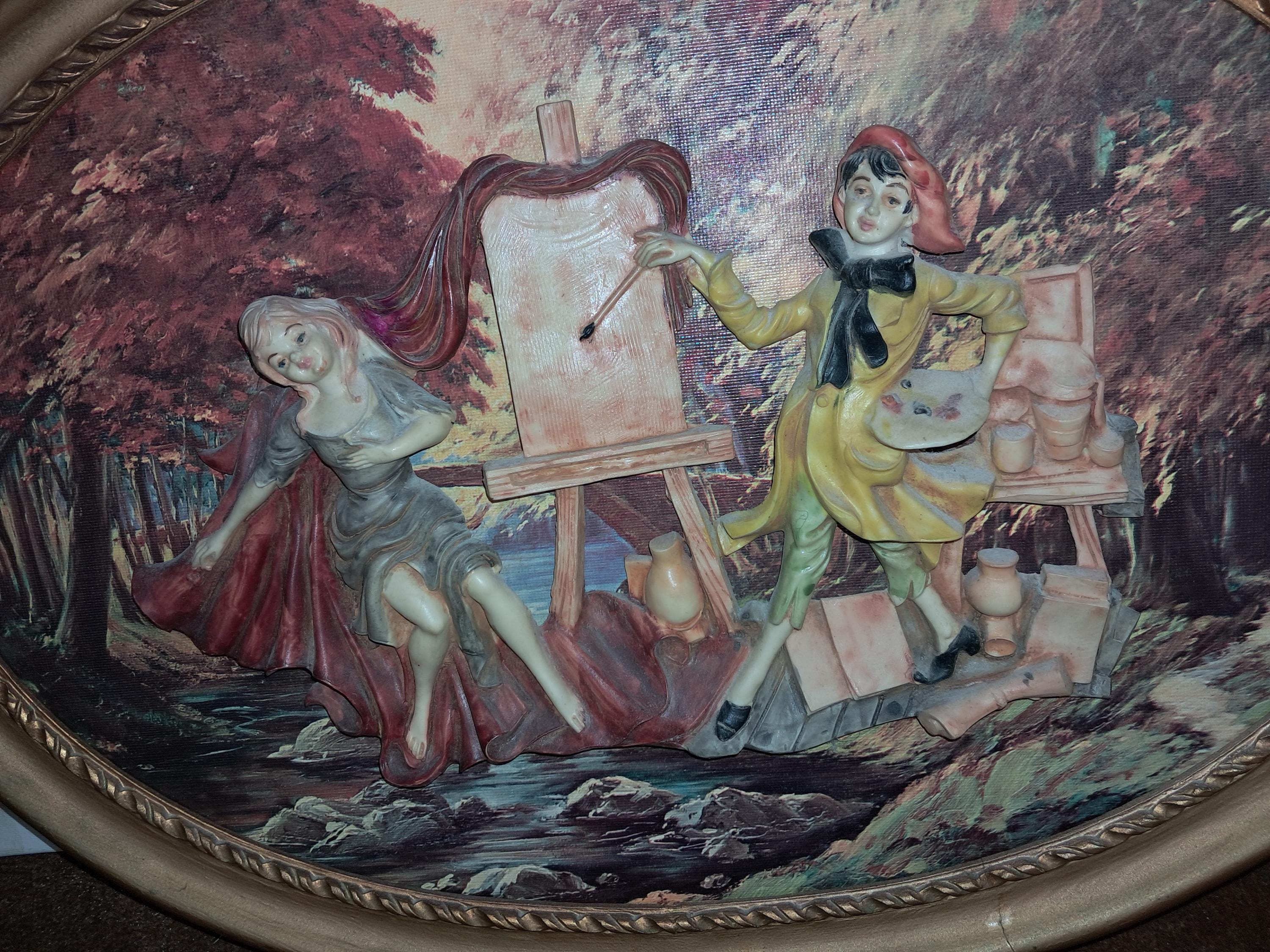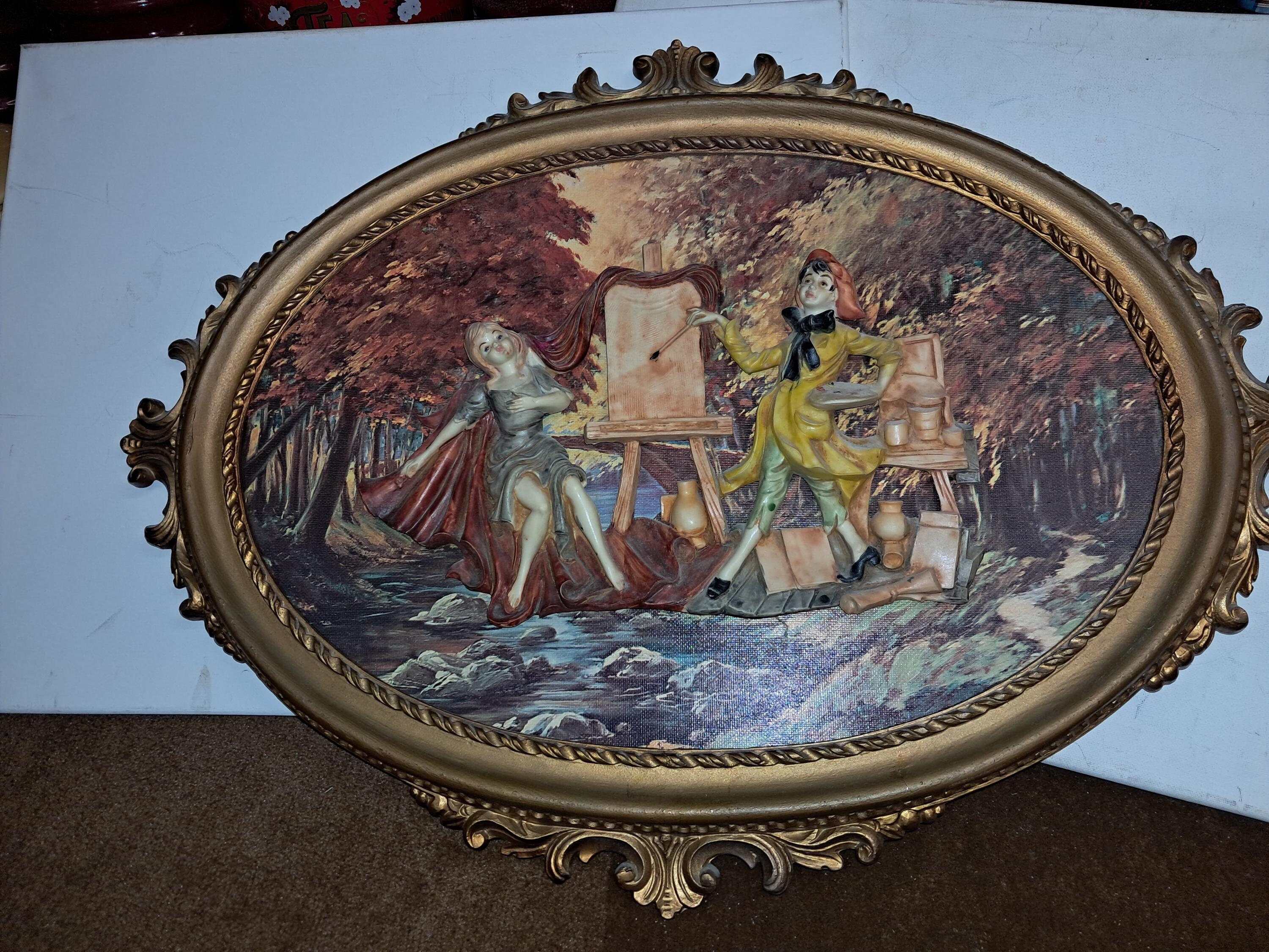 Vintage 3D Empire Figural Art Wall Plaque Ornate Frame Italy
