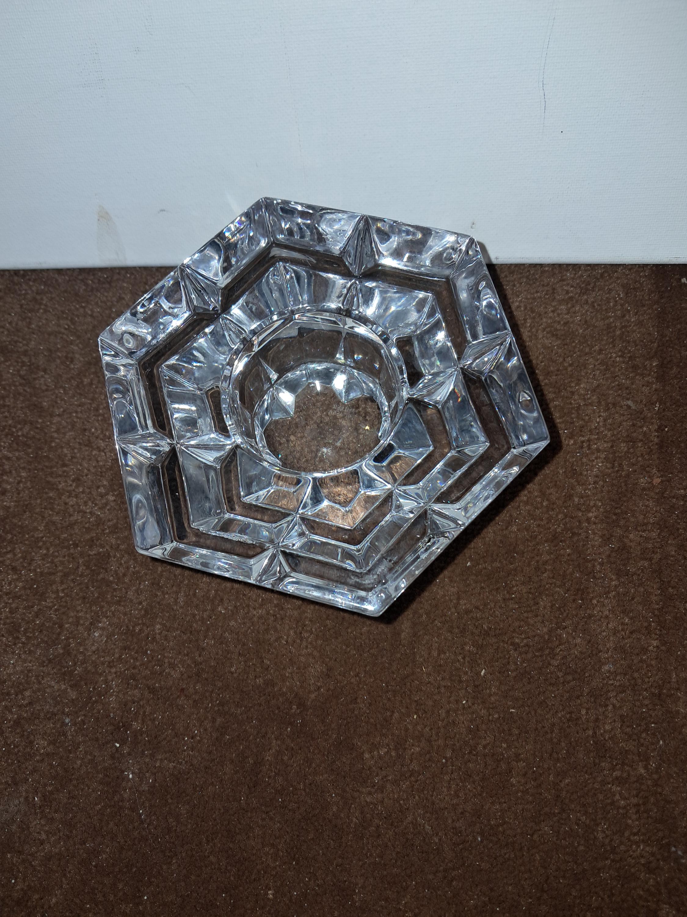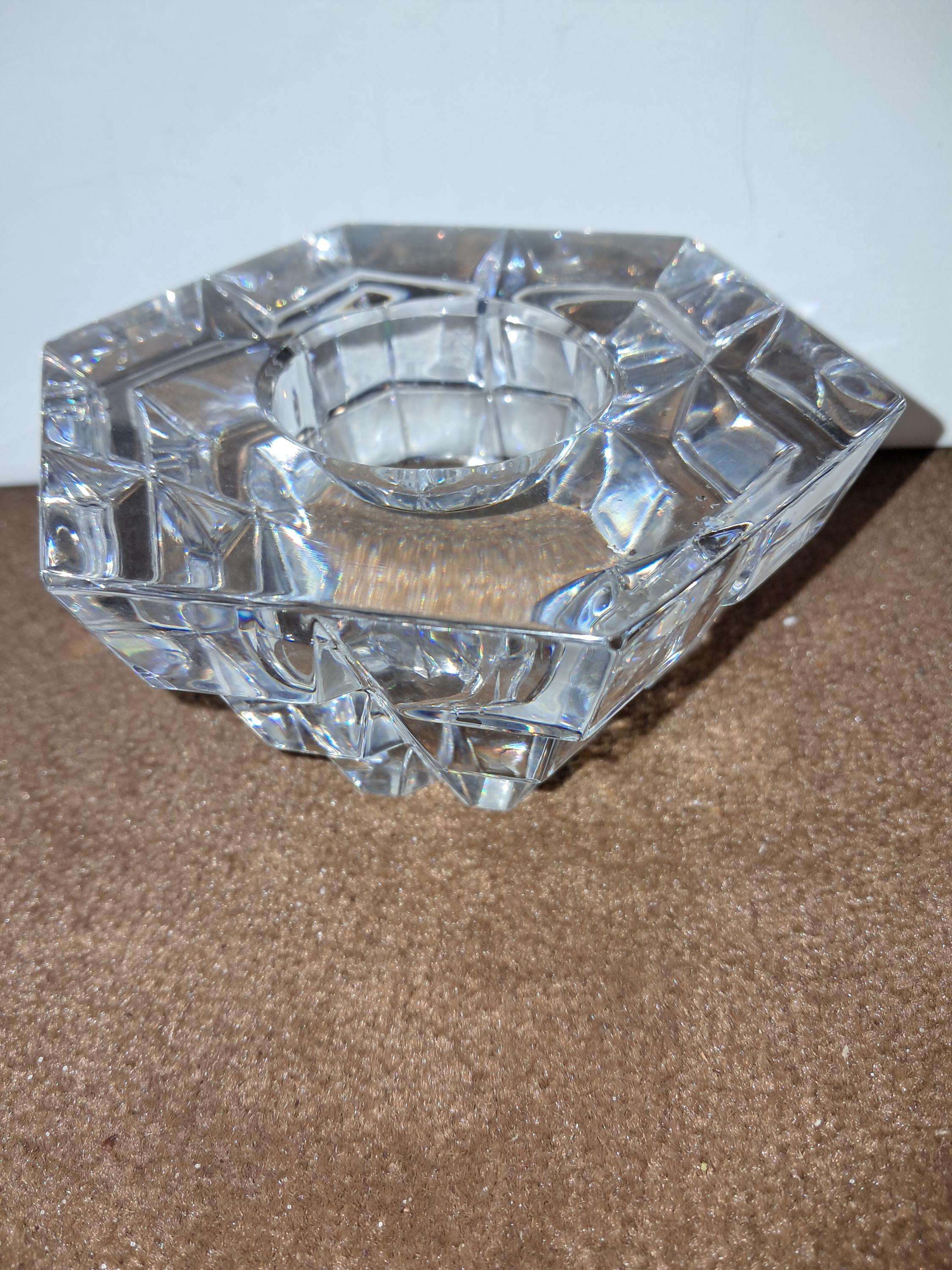 Miller Rogaska Crystal Candle Holder HexagonGorgeous Crystal Miller Rogaska from Slovenia. Beautiful Tiered Hexagon. Approximately 2 3/4 inches high and 4 3/4 inches across the top. Excellent Condition.