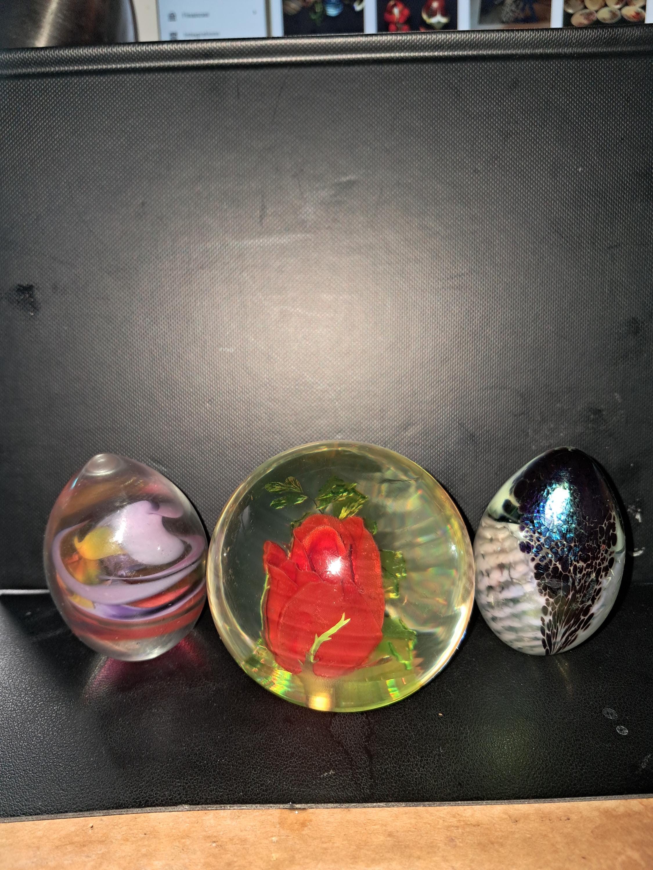 2) GES 93 Creative egg shaped Art Glass in clear, white and brown