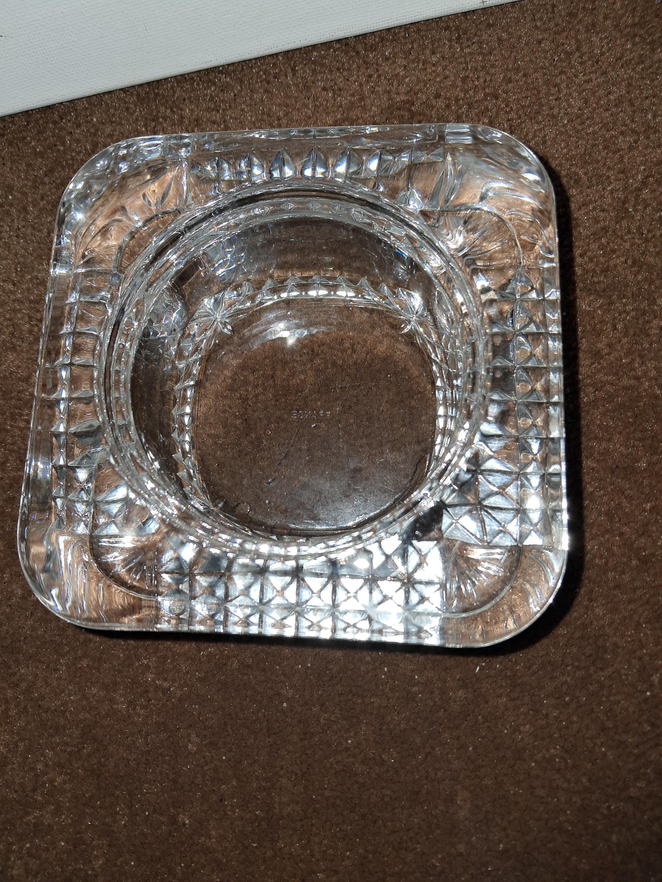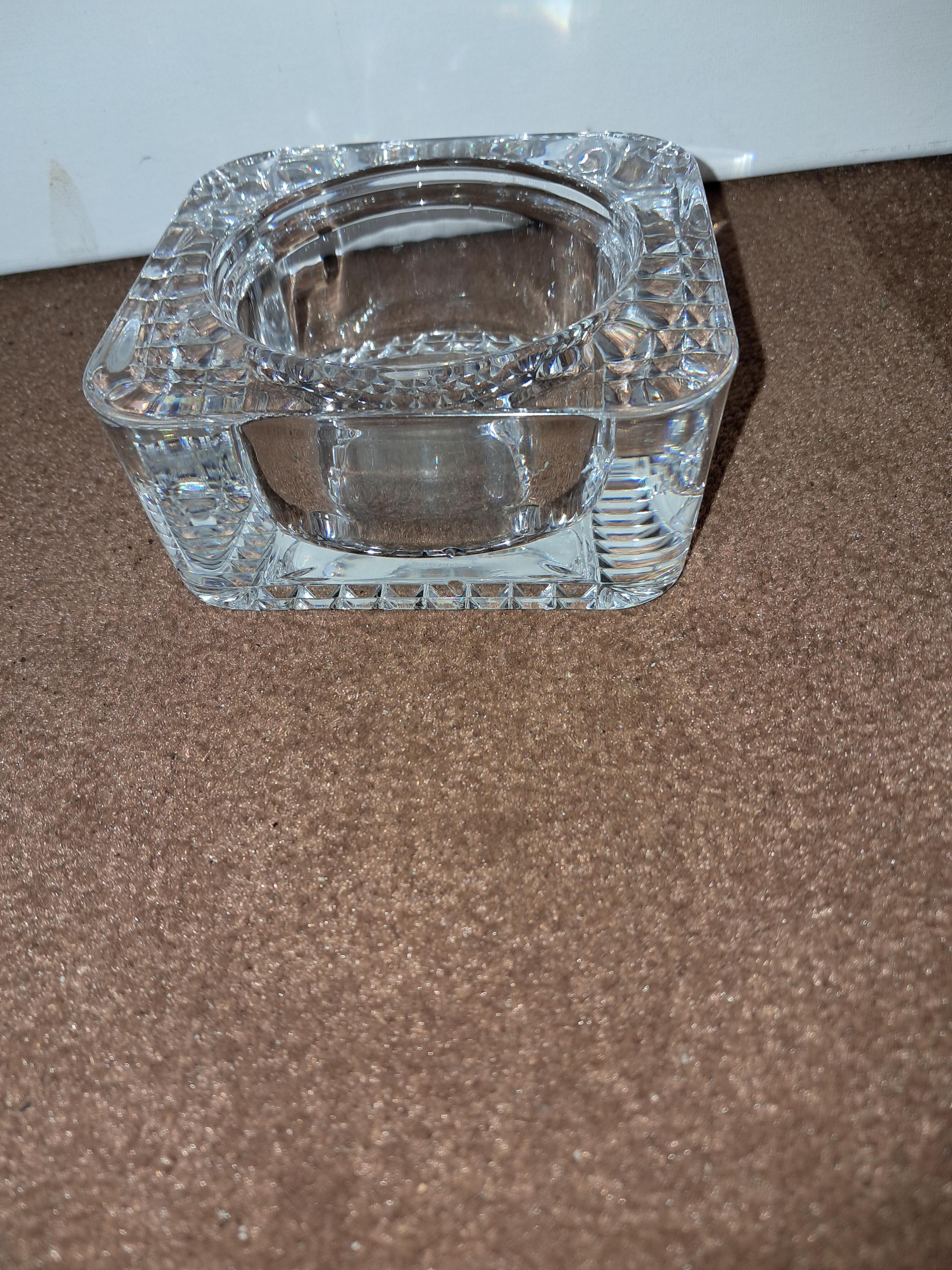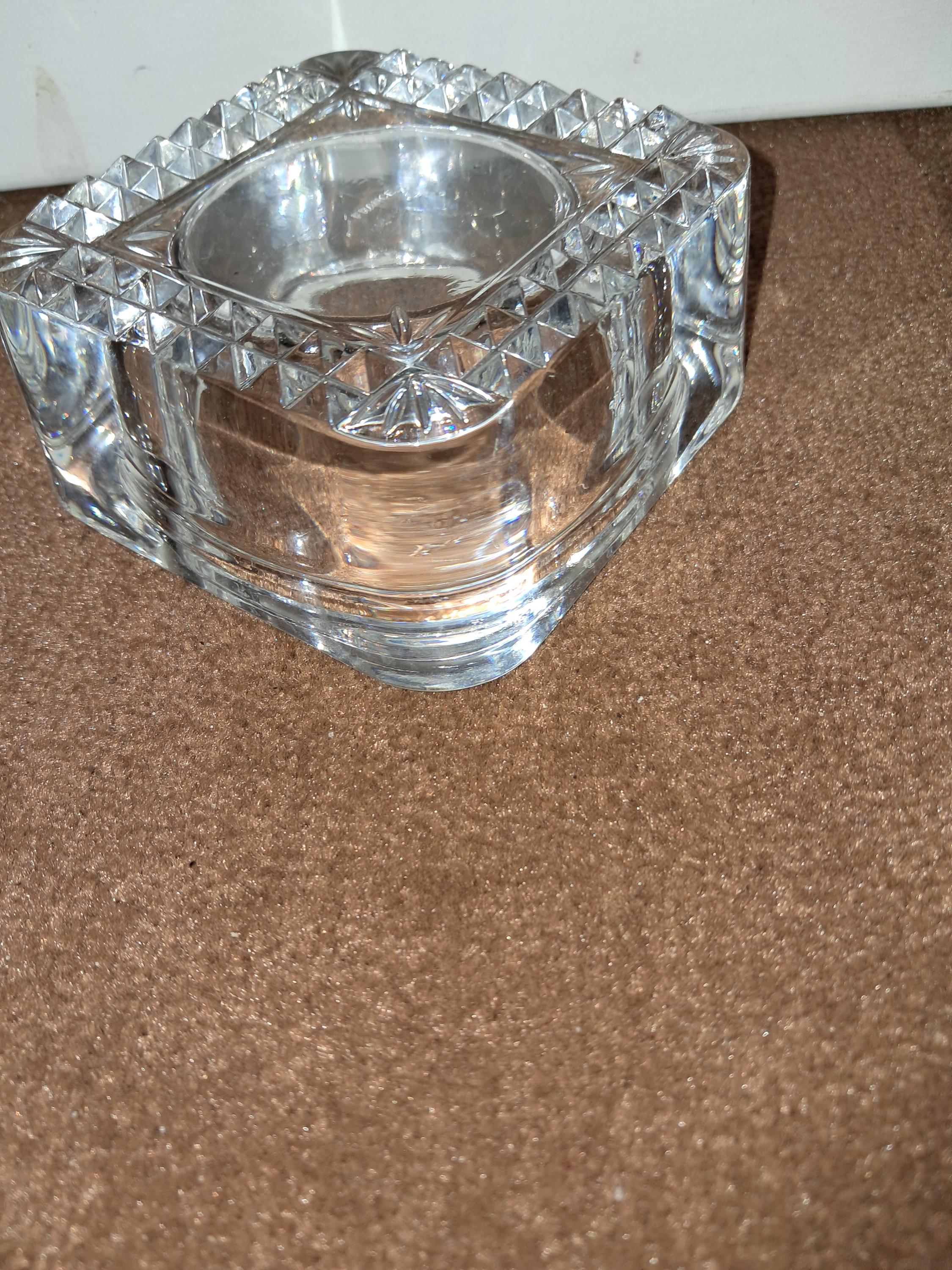 VTG Cristal Argnes France Heavy Lead Square Candle Holder Votive trinket Dish