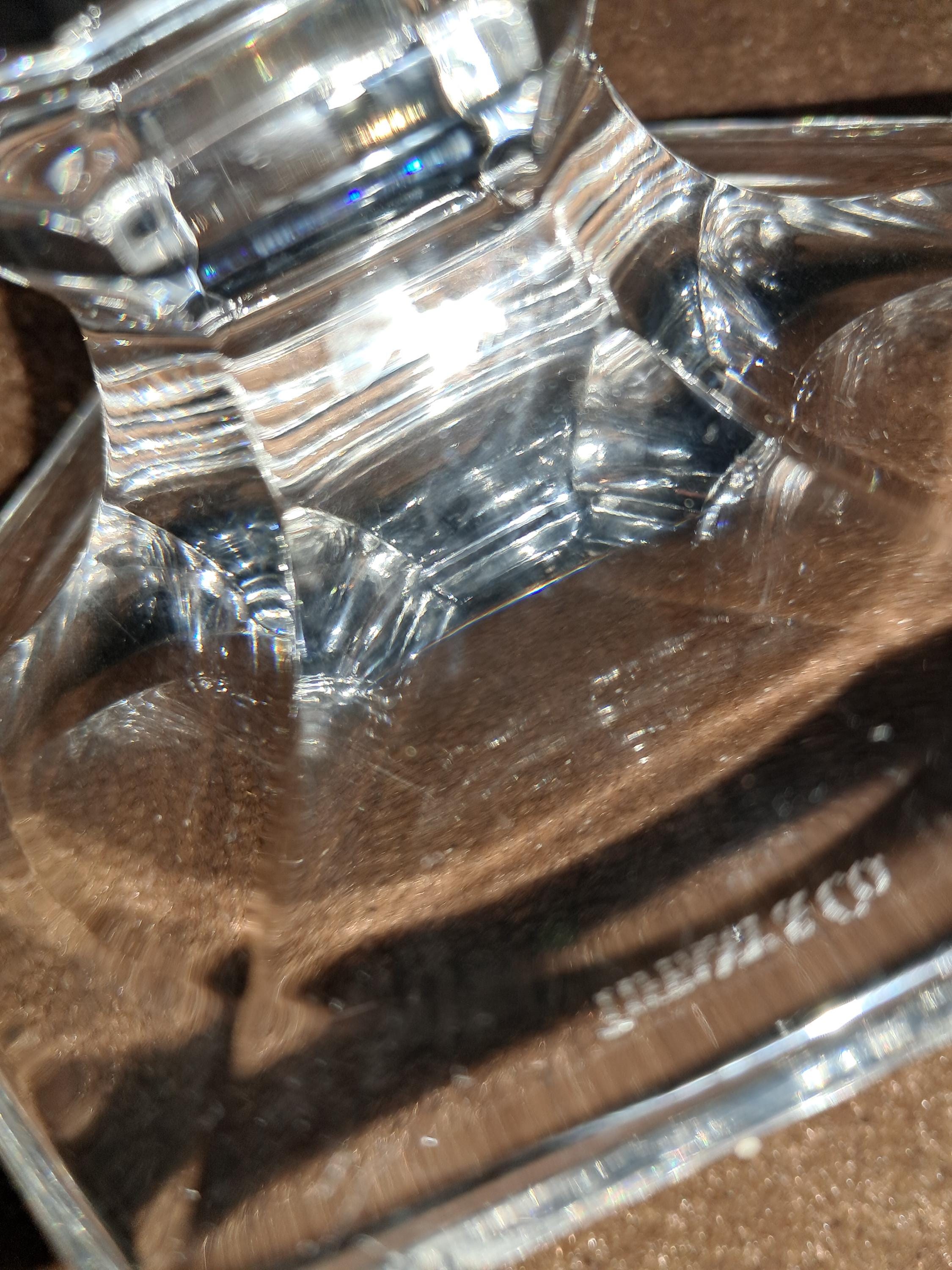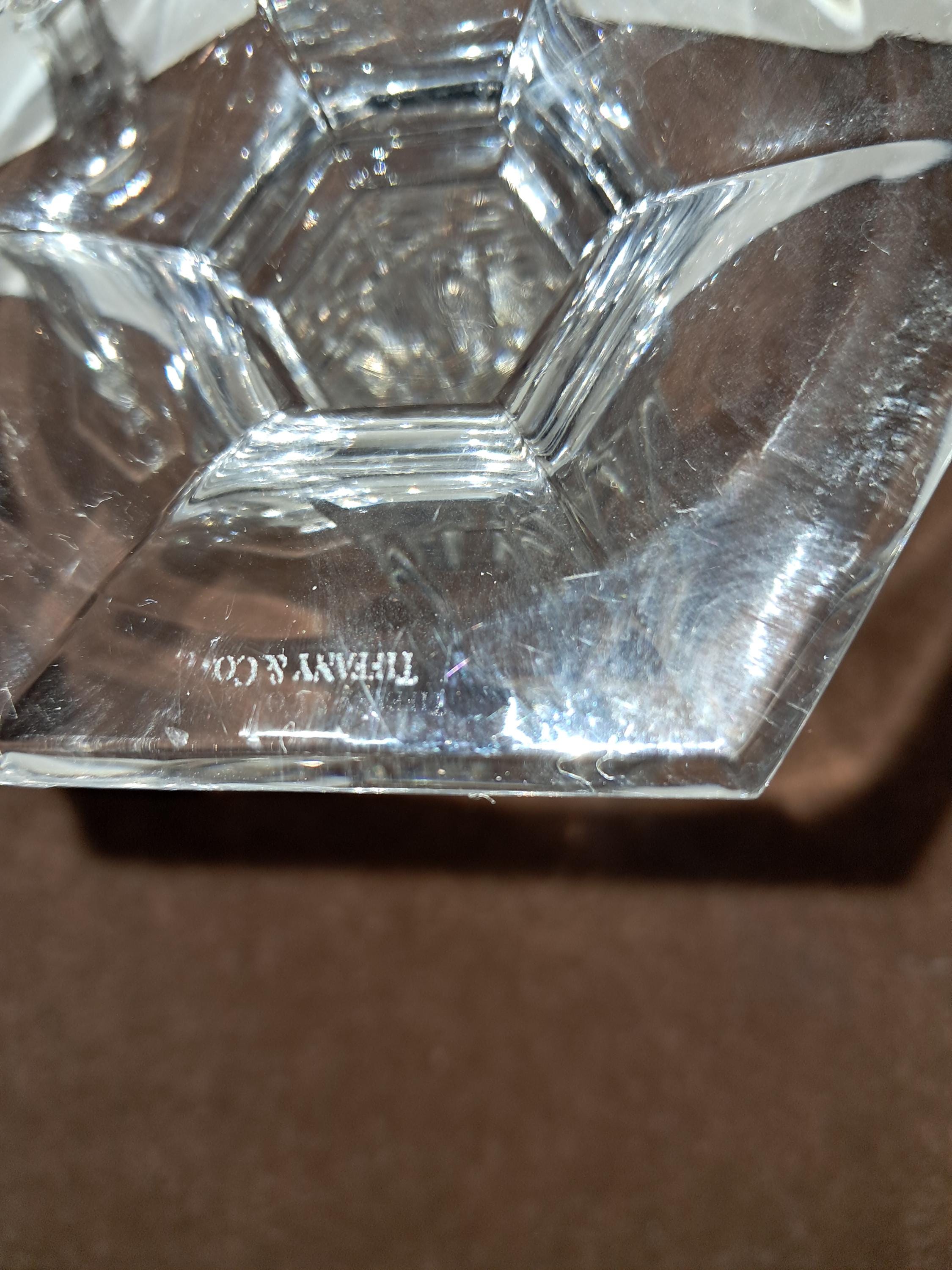 Made of crystal from Tiffany & Co. Etching at bottom