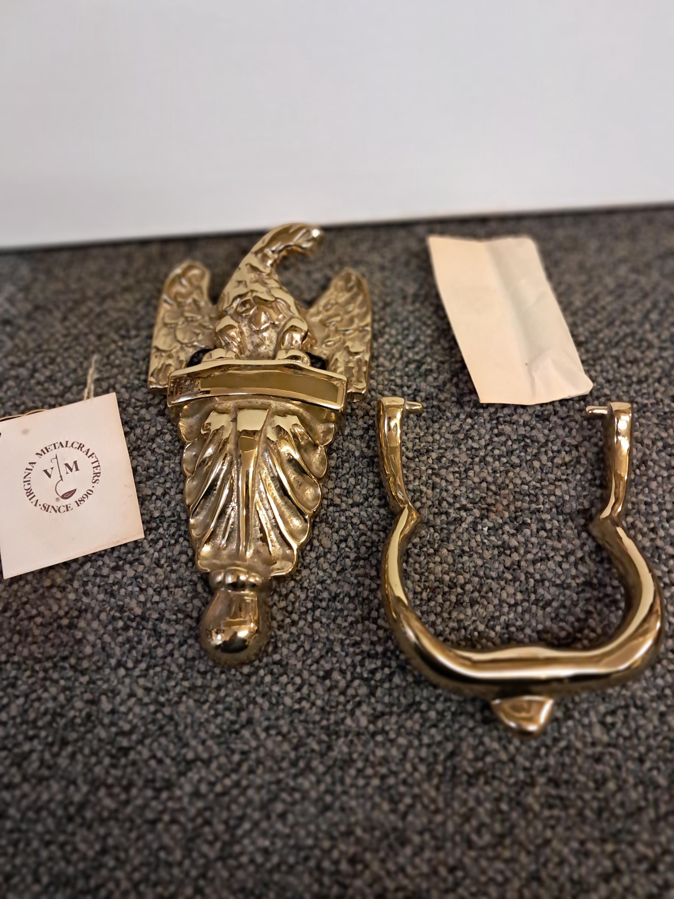 Virginia Metalcrafteers Vintage Large Heavyweight Solid Brass Patriotic American Bald Eagle Door Knocker