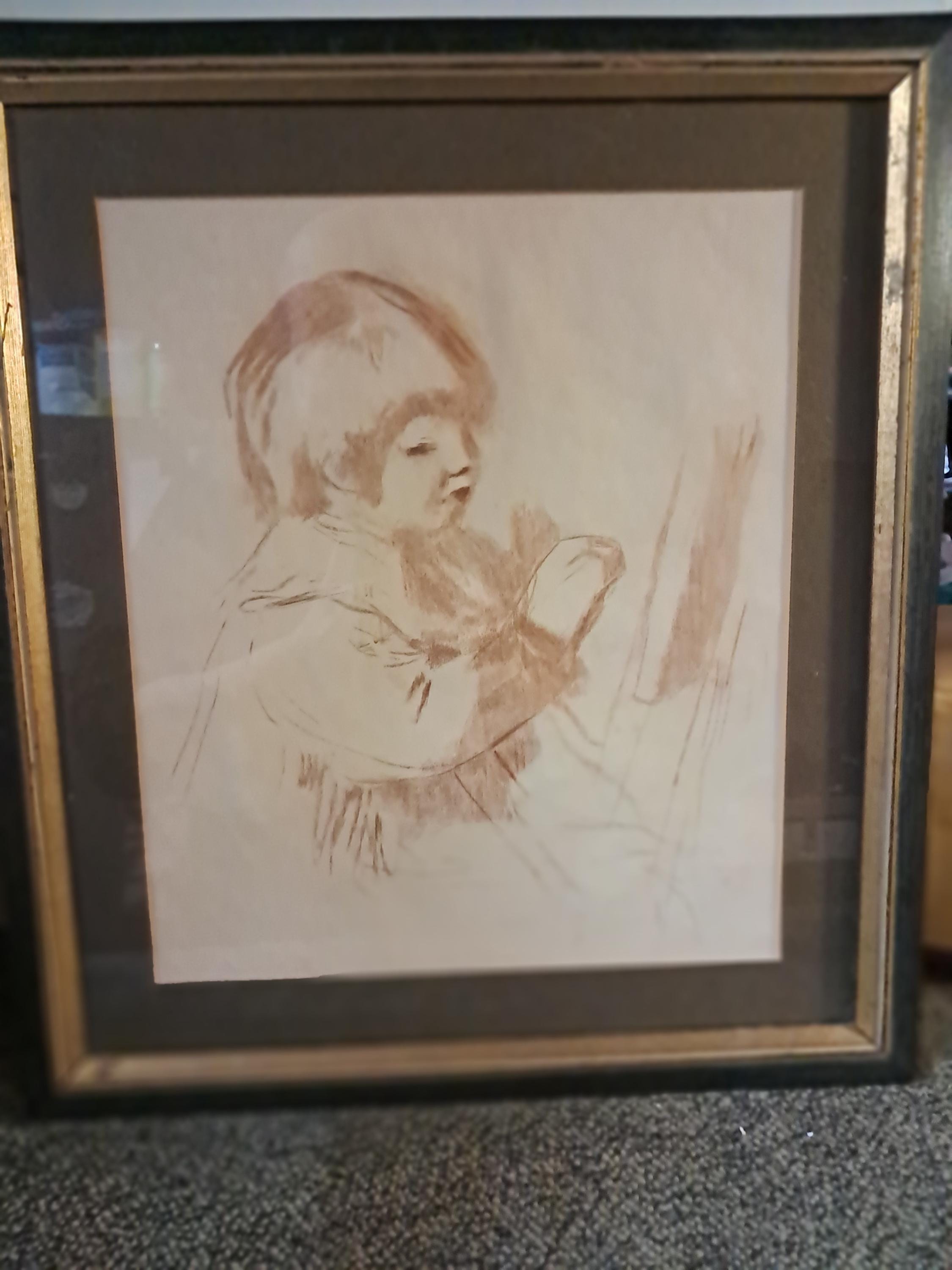 Antique Framed Early Pierre August Renoir "The Small Painter" Framed Print ~ Arthur Rothman. Framed under glass. Framed Size : 18" tall x 16" wide x .50 " deepImage Size: 13 x 11 Condition is very good